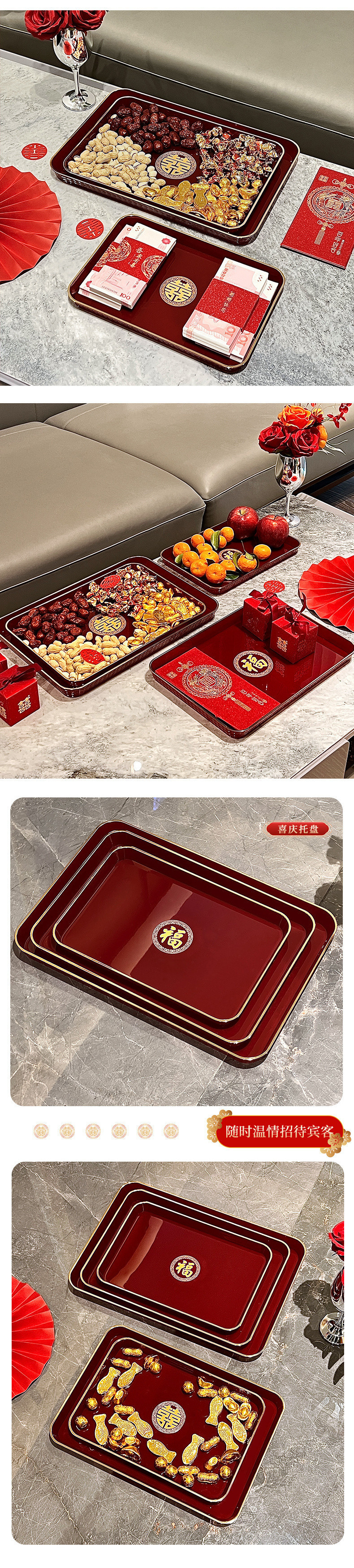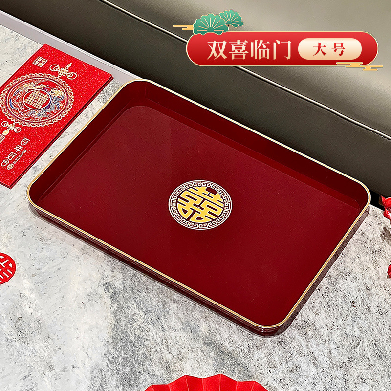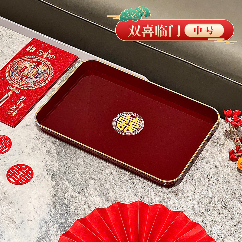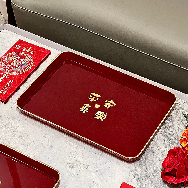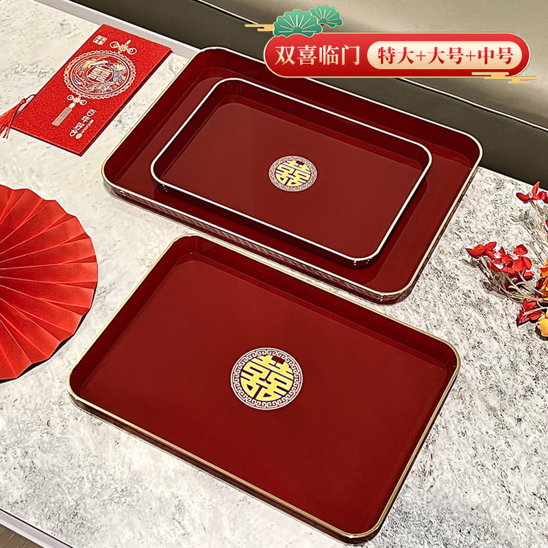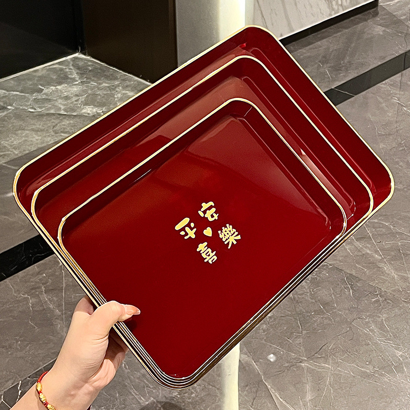 가정용 거실을위한 빨간색 직사각형 트레이 차 컵과 물 컵 플라스틱 트레이 새로운 중국 스타일의 웨딩 캔디 과일 트레이