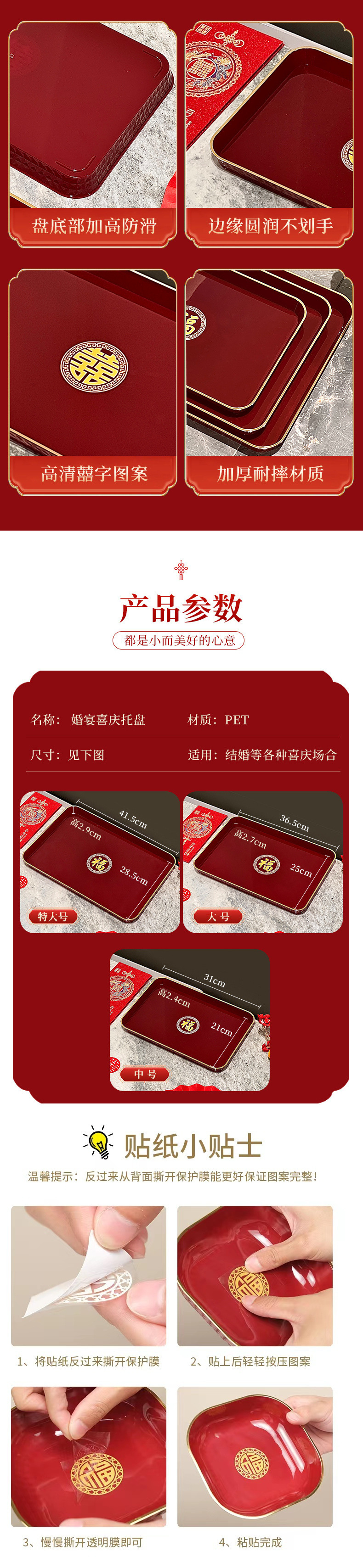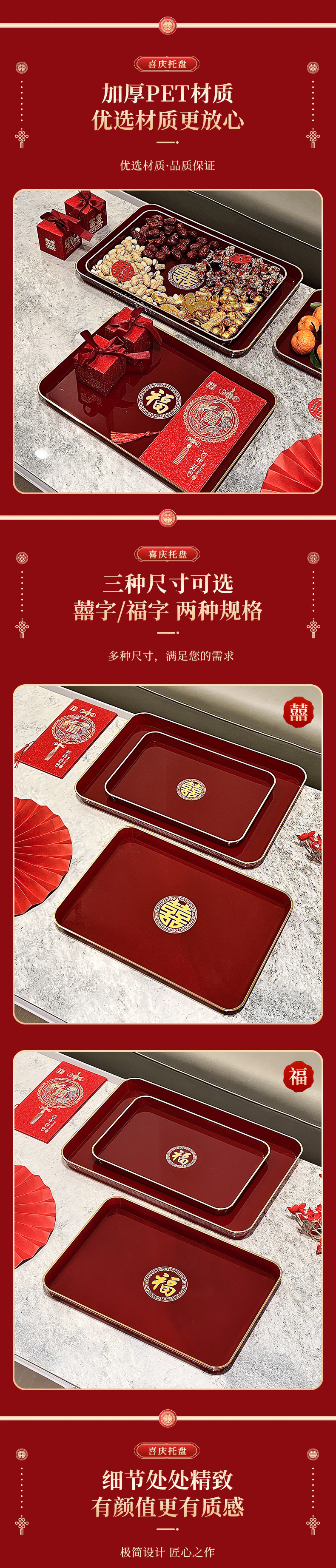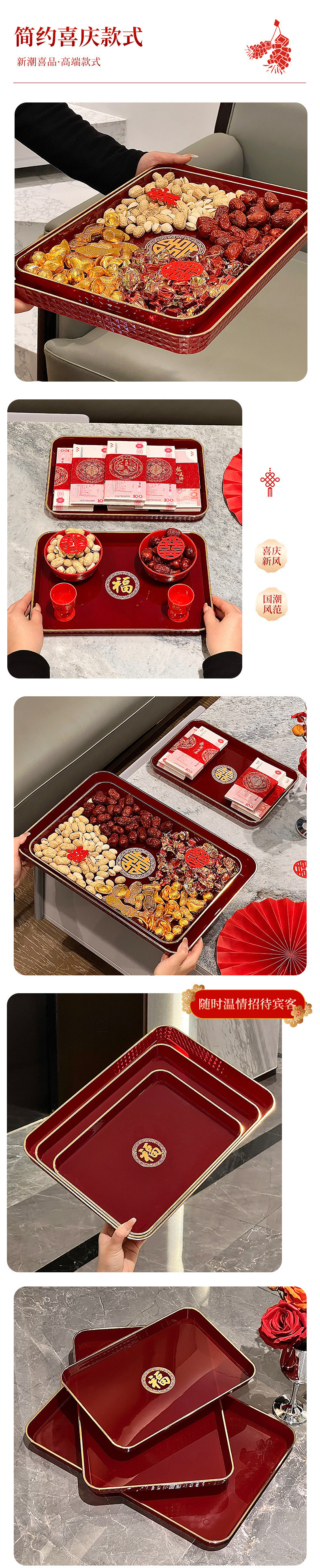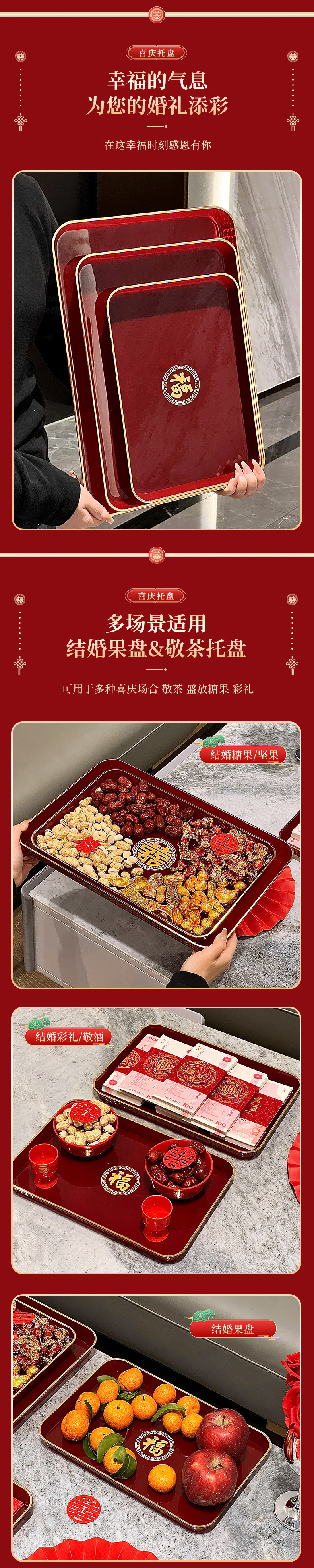 가정용 거실을위한 빨간색 직사각형 트레이 차 컵과 물 컵 플라스틱 트레이 새로운 중국 스타일의 웨딩 캔디 과일 트레이