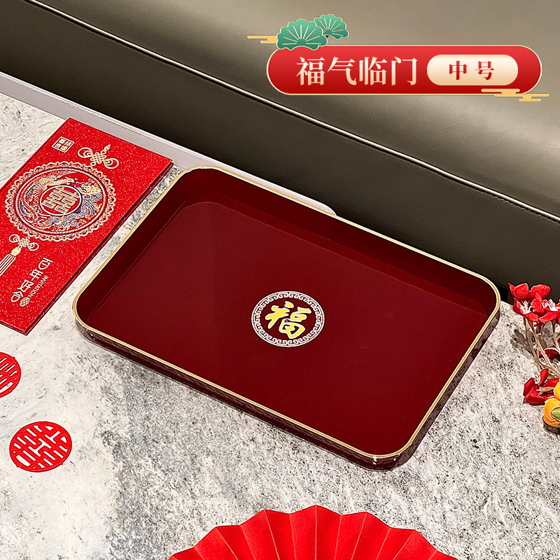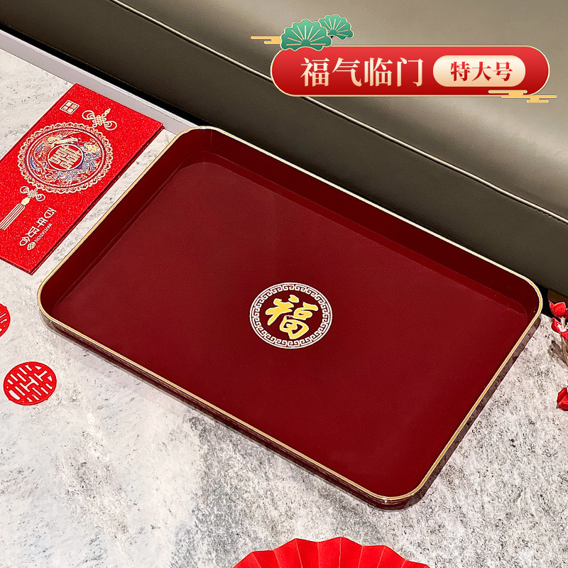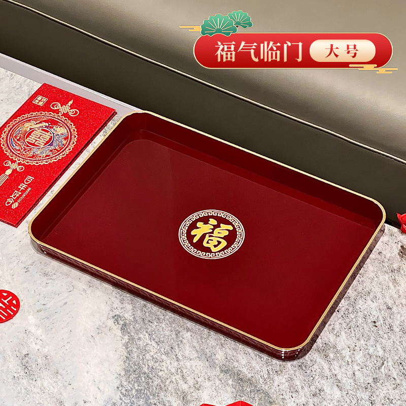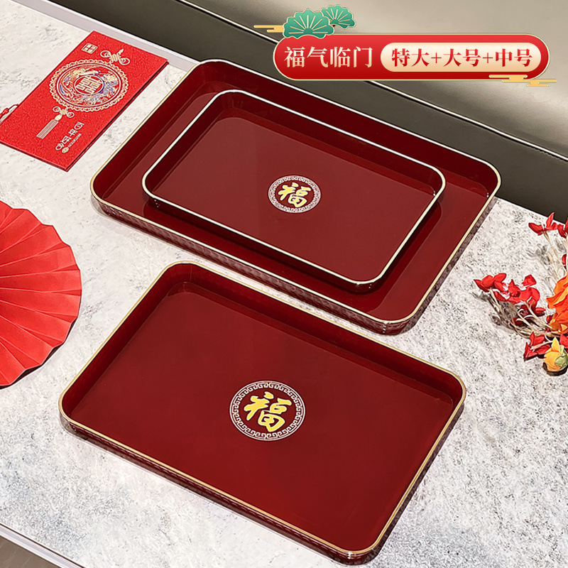 가정용 거실을위한 빨간색 직사각형 트레이 차 컵과 물 컵 플라스틱 트레이 새로운 중국 스타일의 웨딩 캔디 과일 트레이스토어 가기