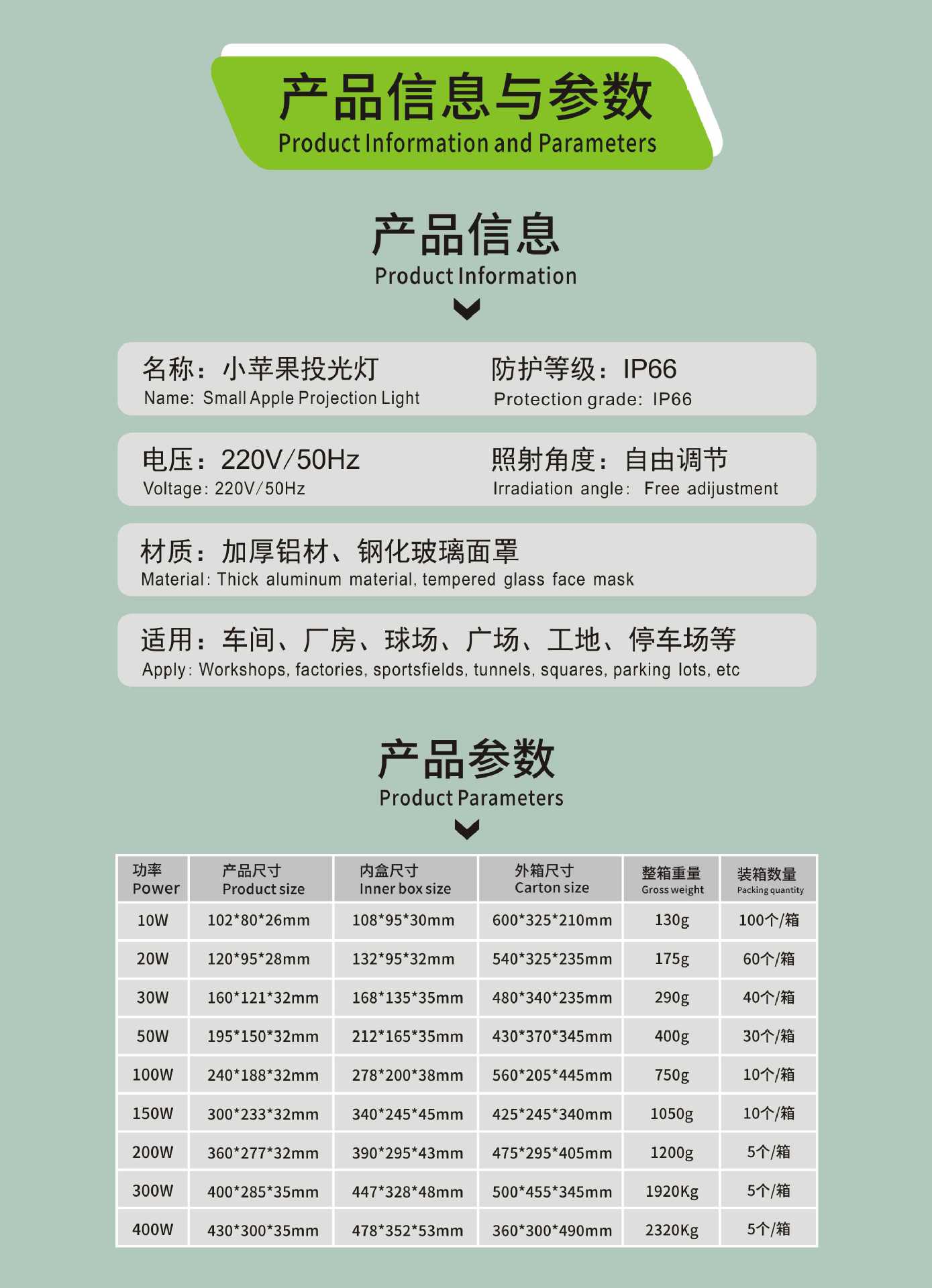 국경 간 공급 야외 방수 투광 등 50W100W200W 두꺼운 소재 발 타일 슈퍼 밝은 작은 사과 투광 등