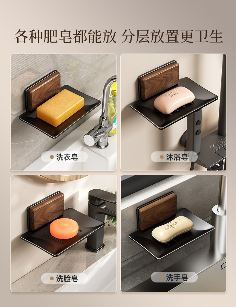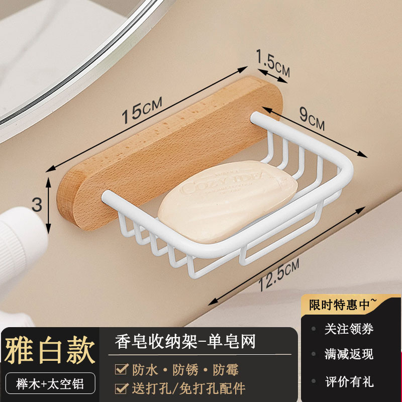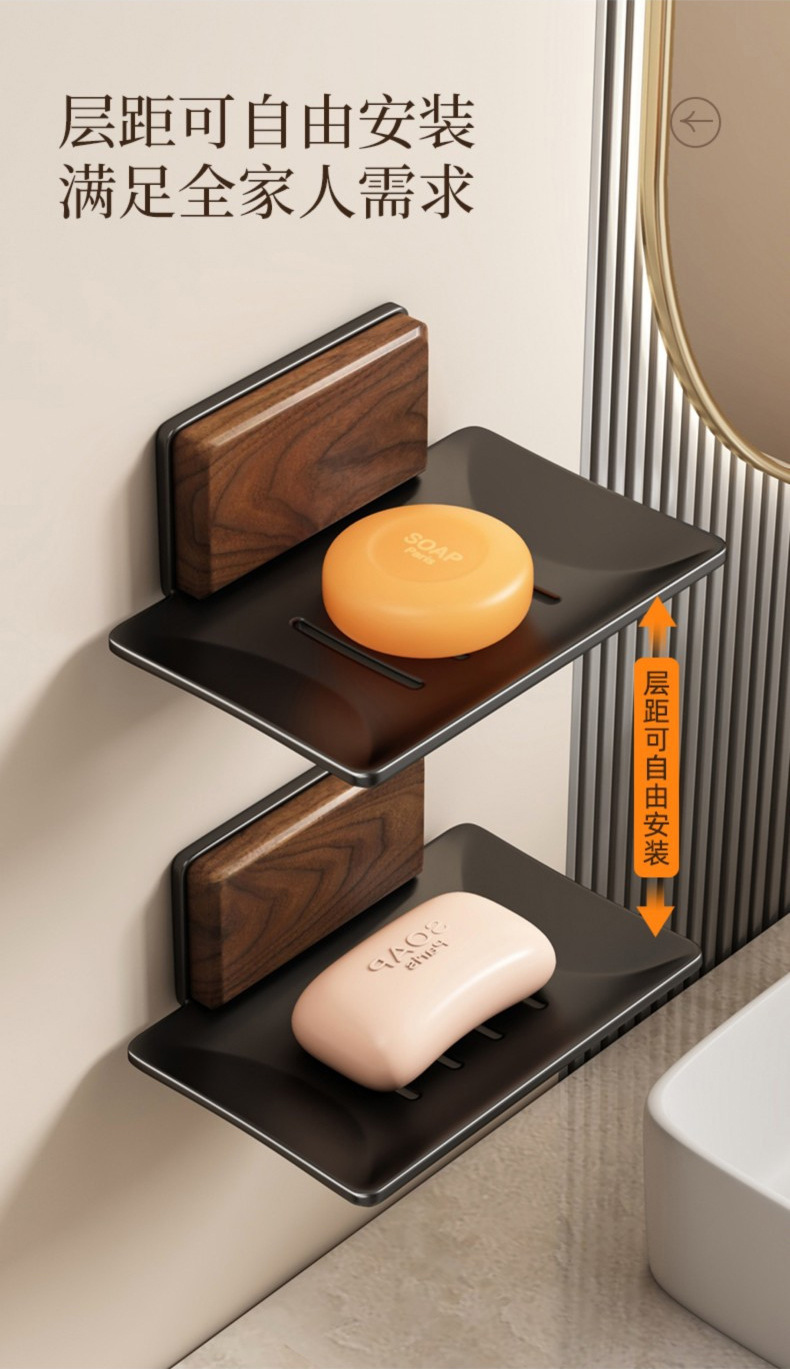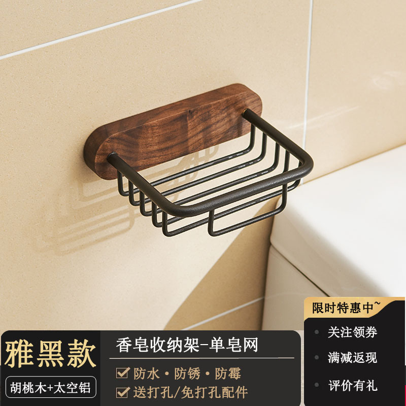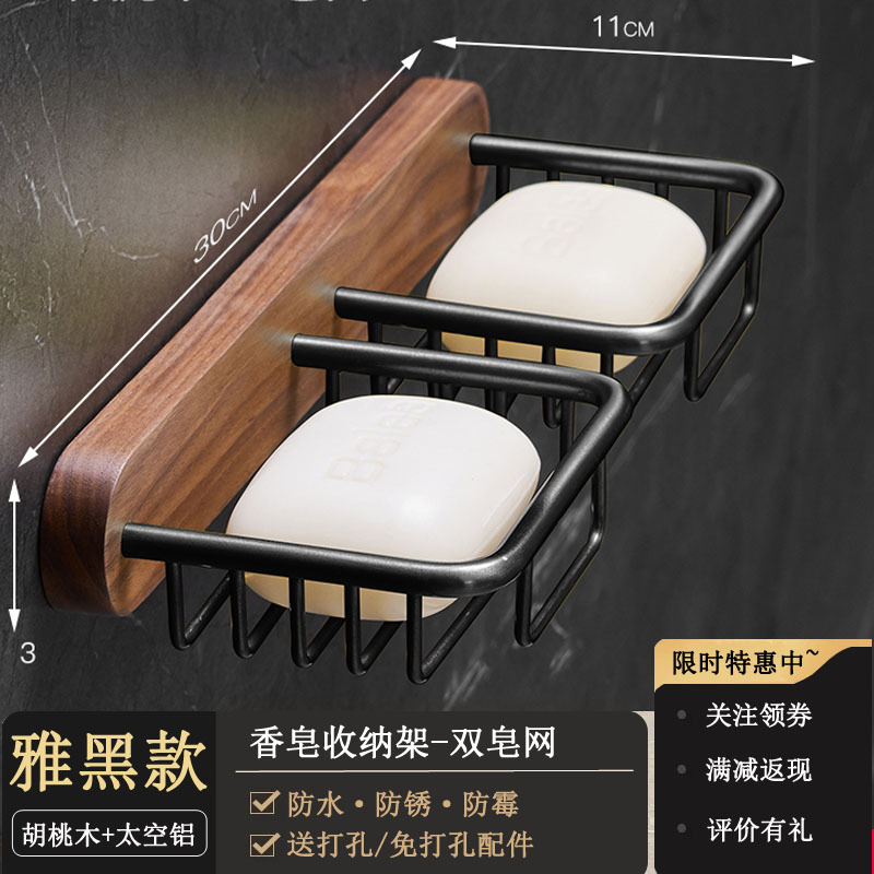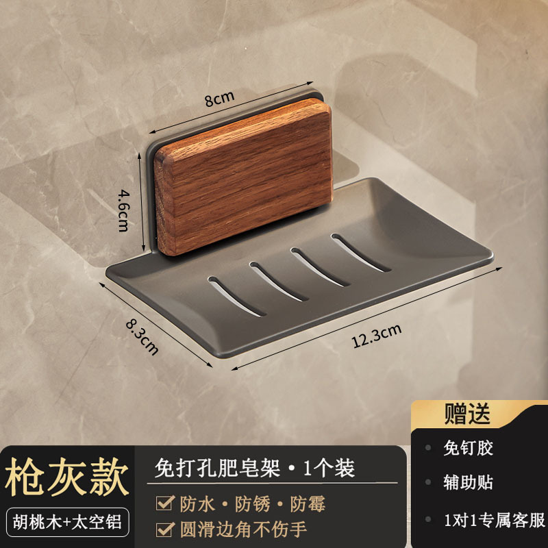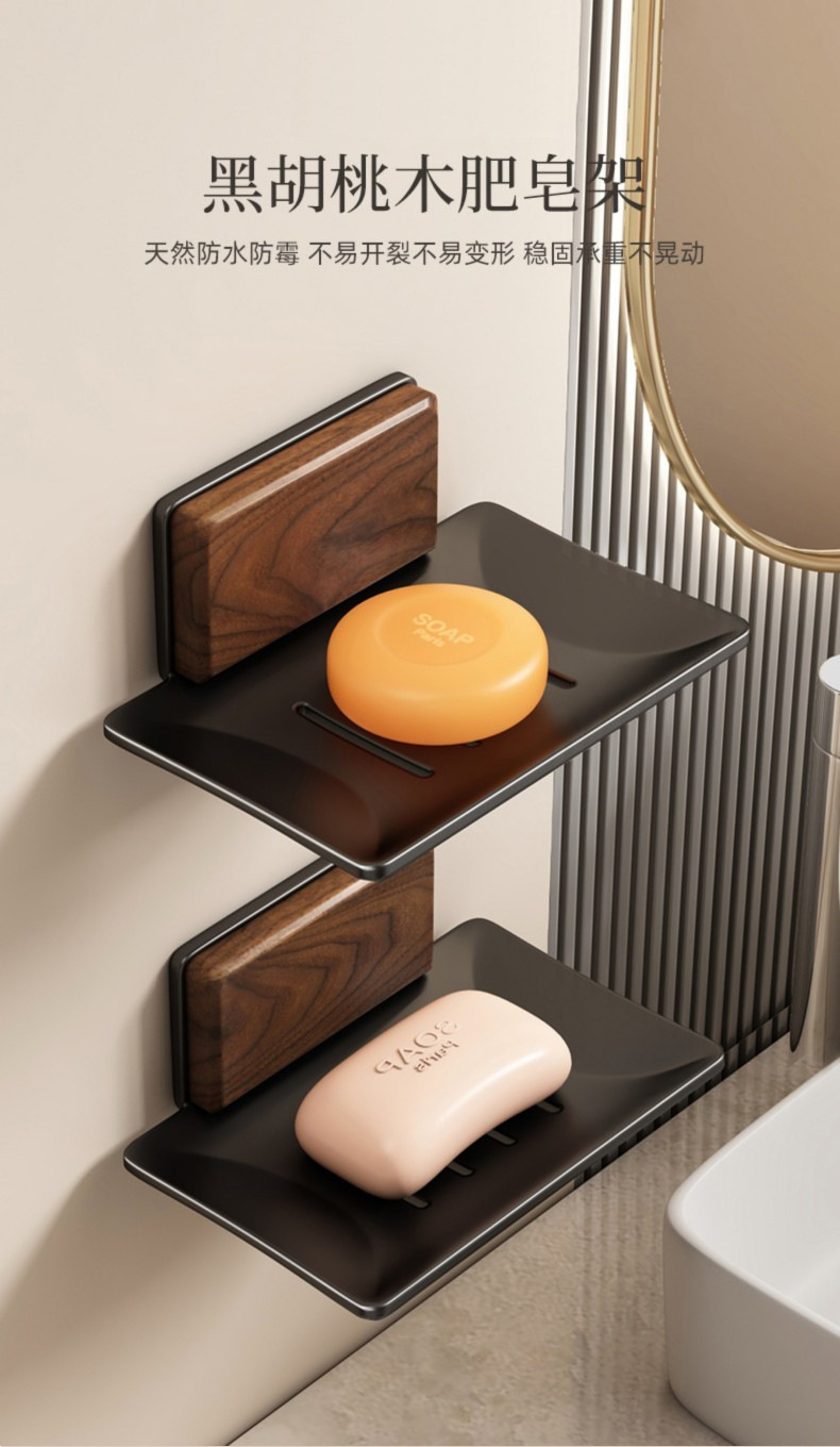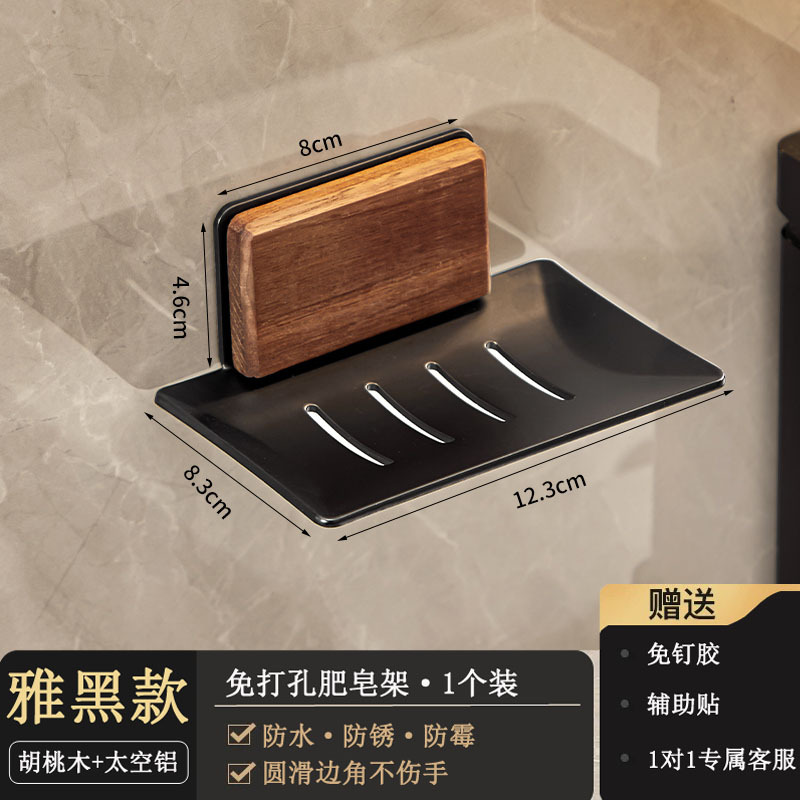 호두 욕실 비누 상자 벽에 매달린 드레인 펀치 프리 화장실 솔리드 우드 비누 접시 화장실 보관 랙