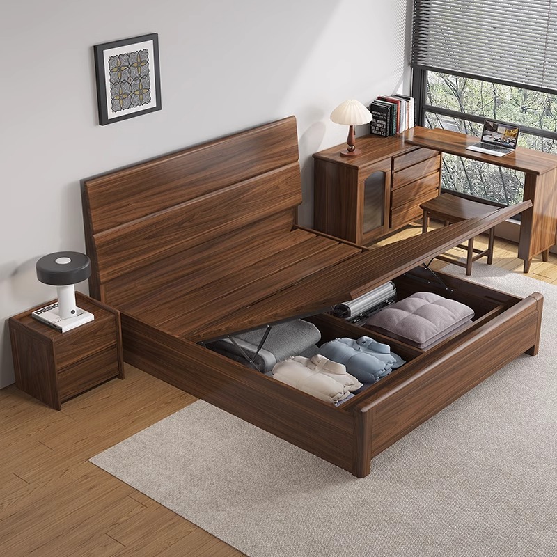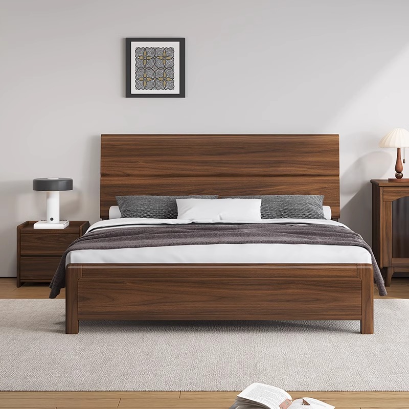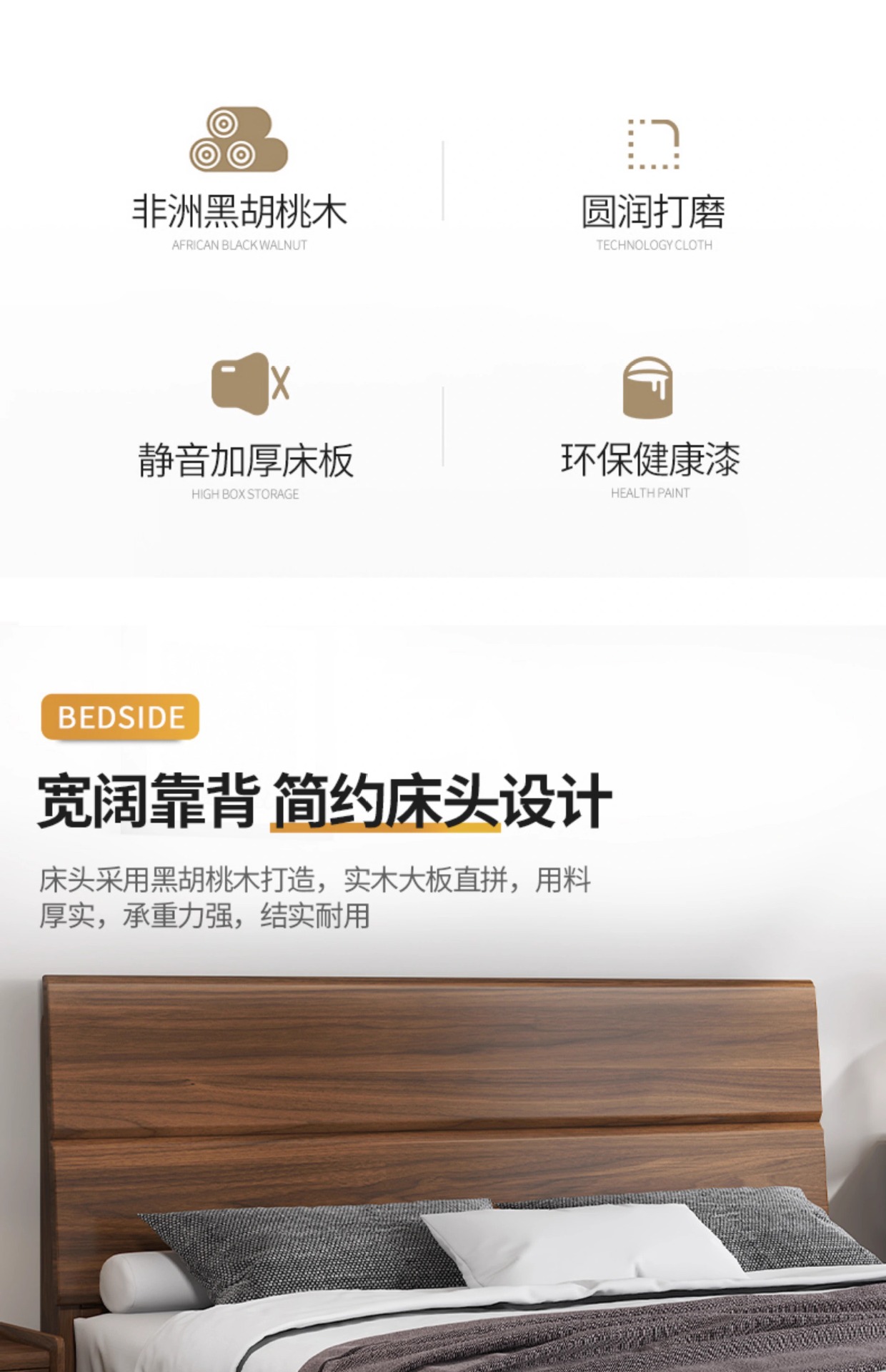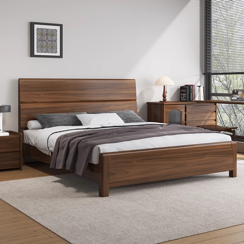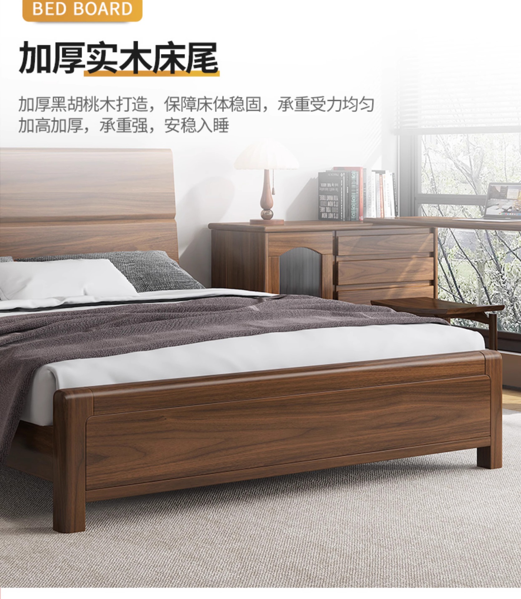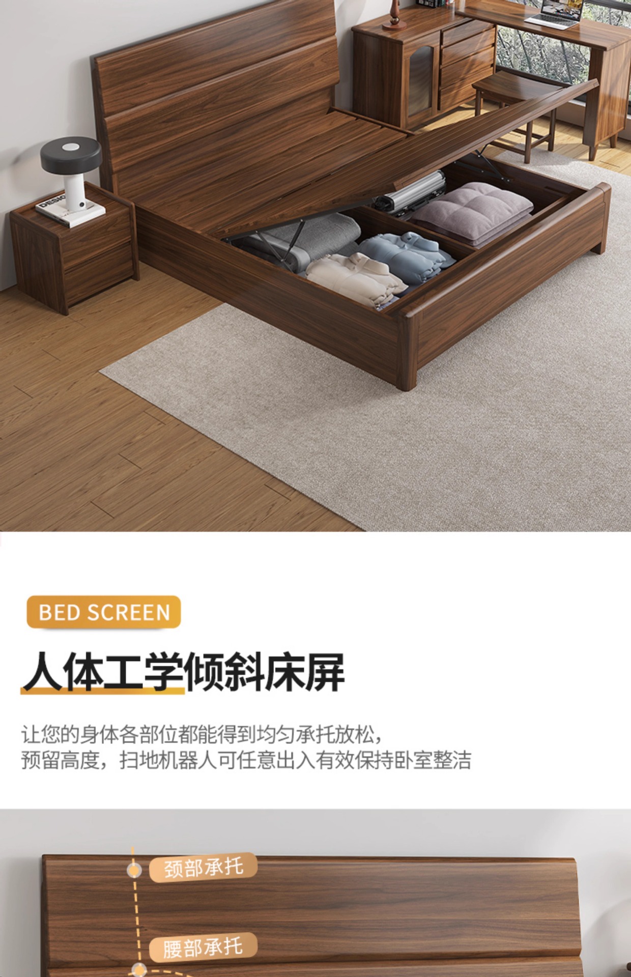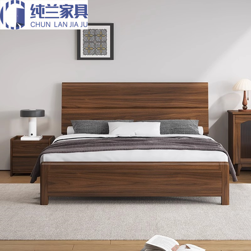 검은 호두 나무 단단한 나무 침대 1.8 미터 중국 대형 보드 더블 침대 스트레이트 1.5 높은 상자 저장 침실 가구스토어 가기