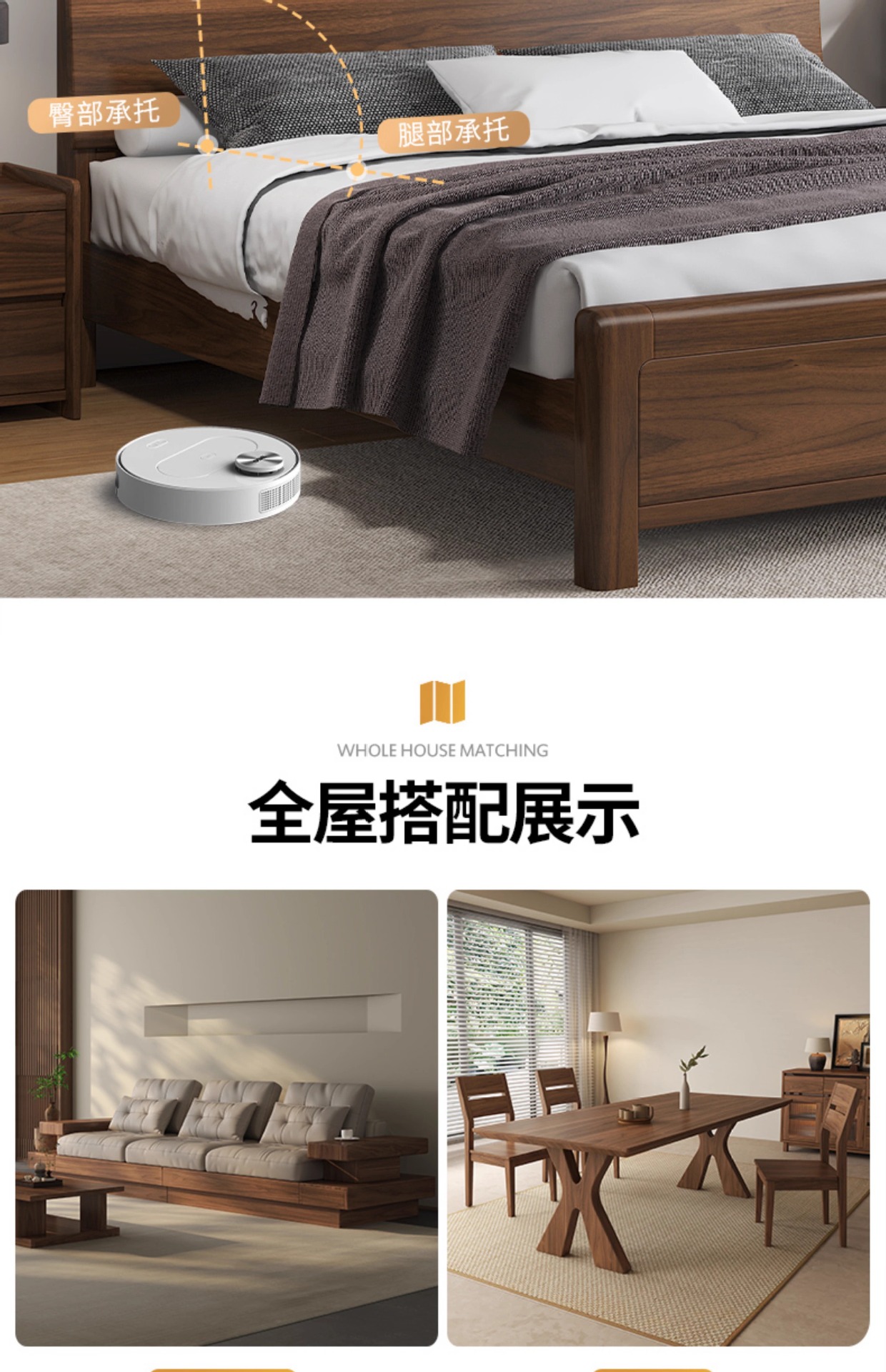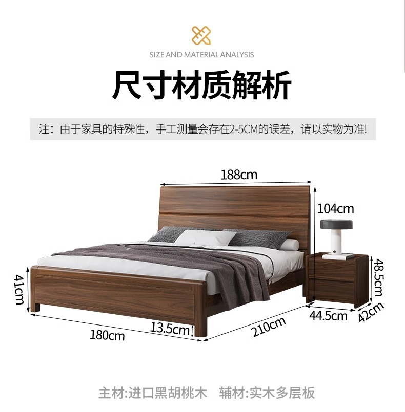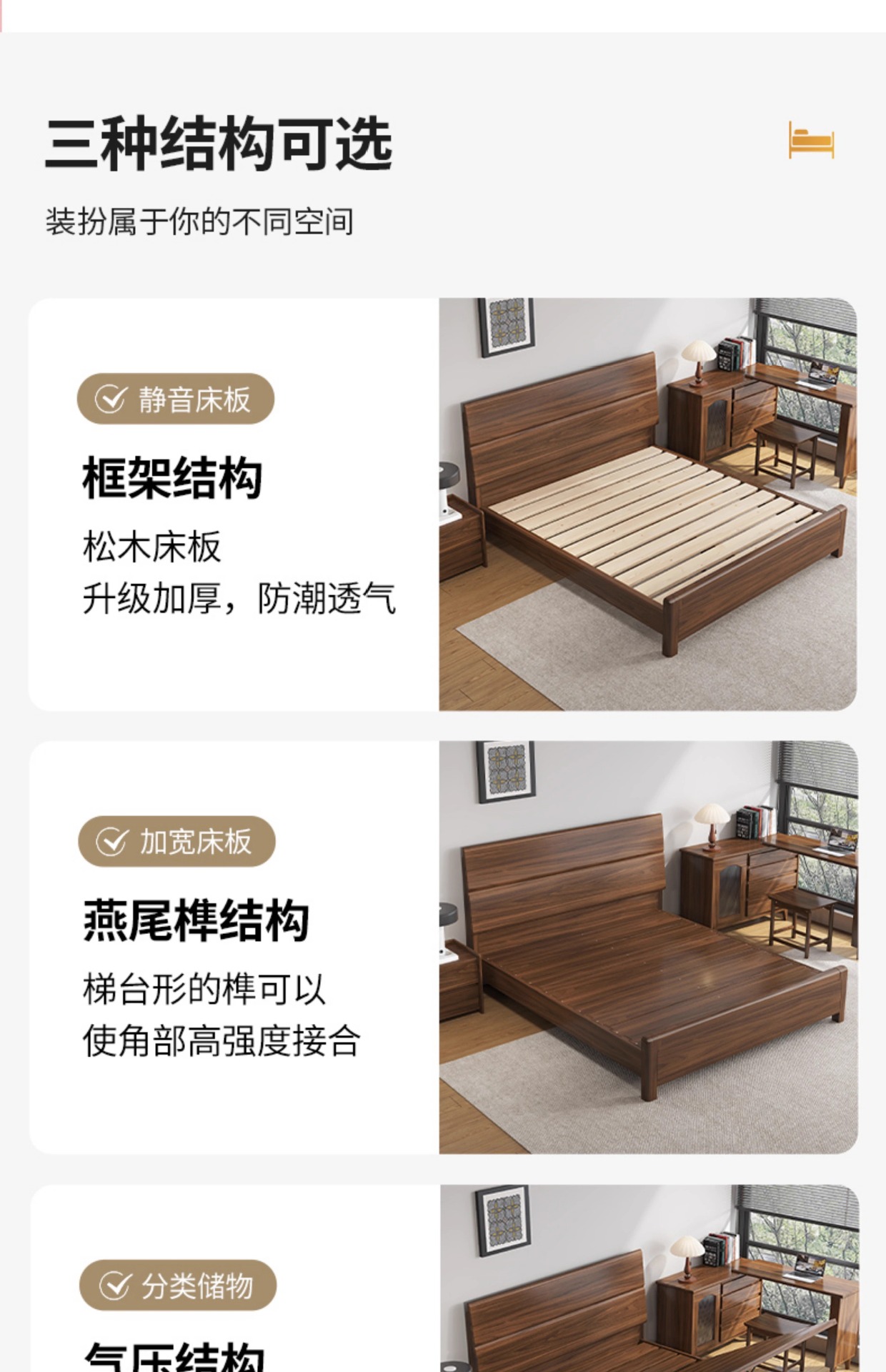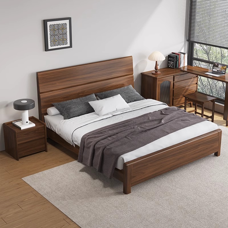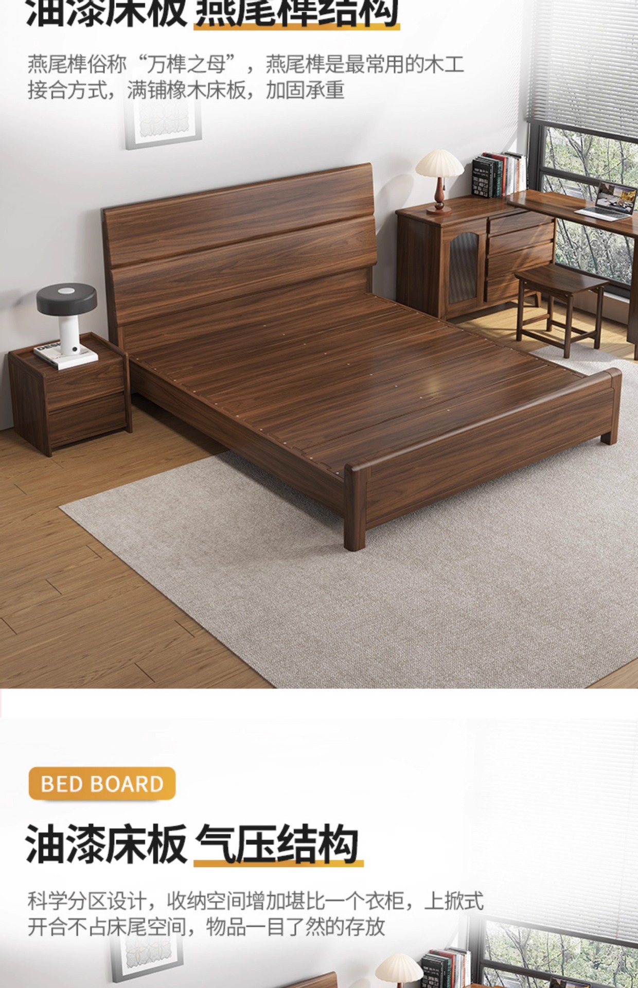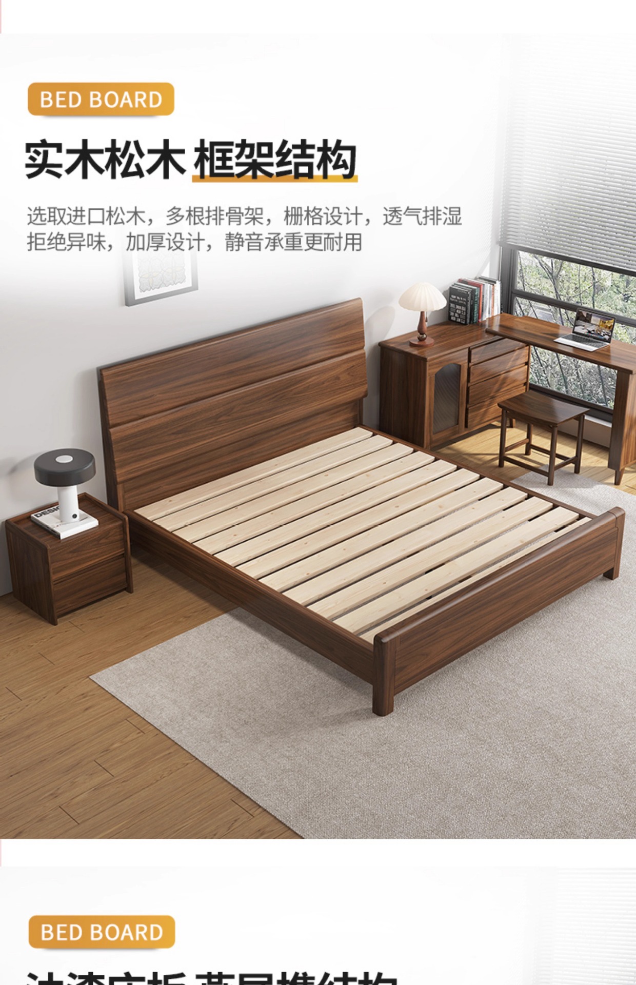 검은 호두 나무 단단한 나무 침대 1.8 미터 중국 대형 보드 더블 침대 스트레이트 1.5 높은 상자 저장 침실 가구스토어 가기