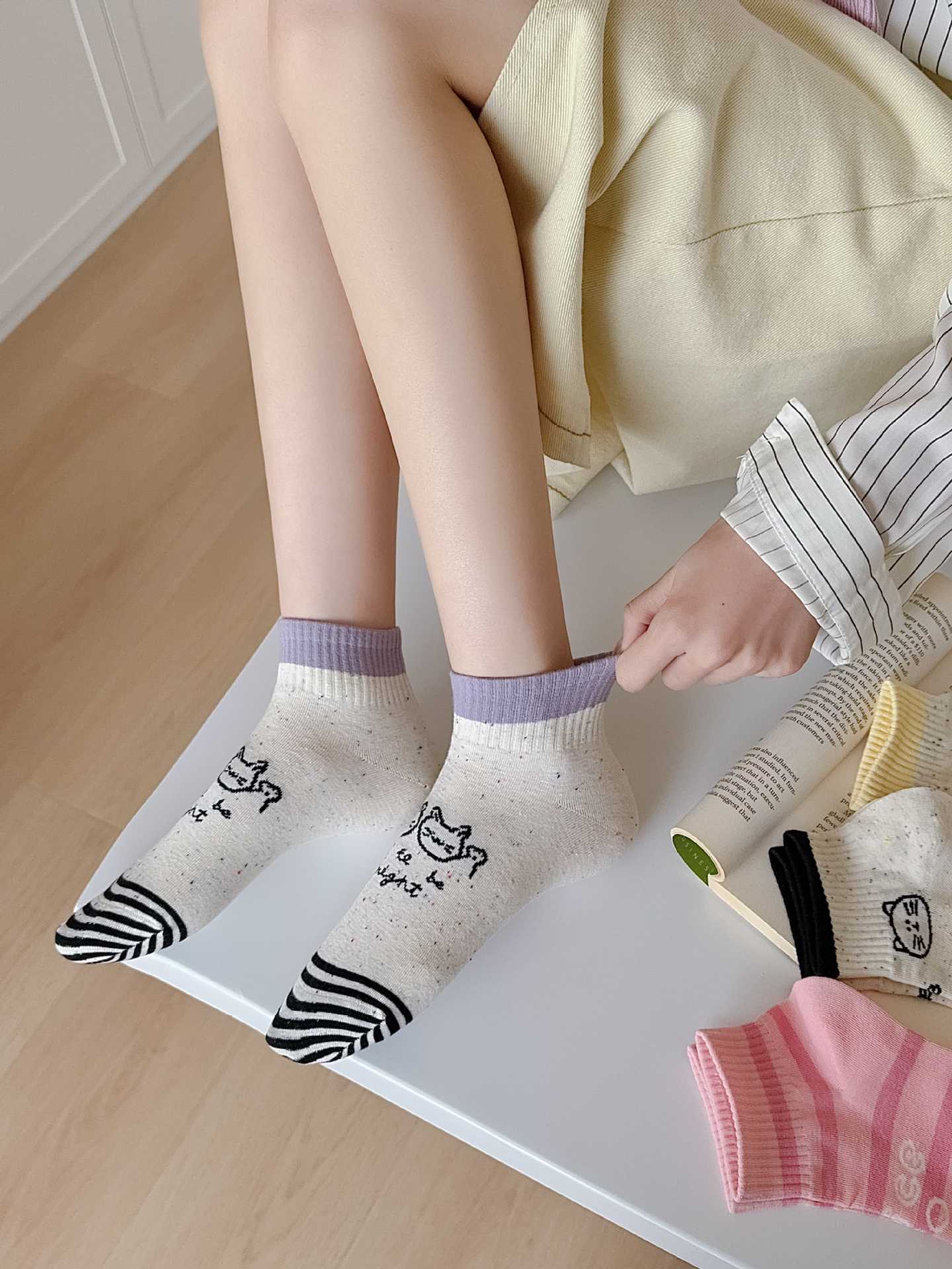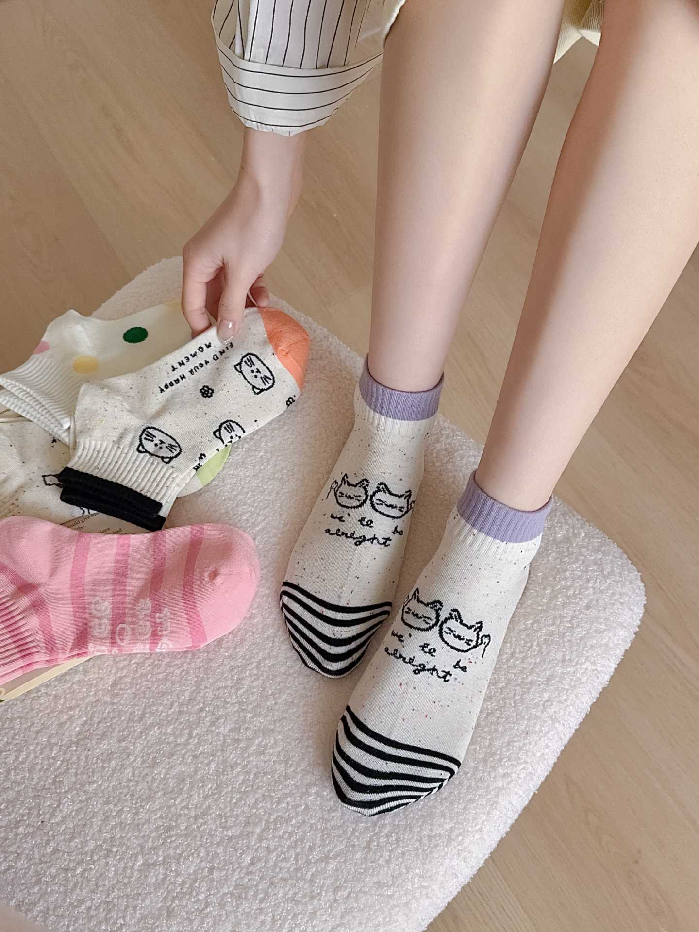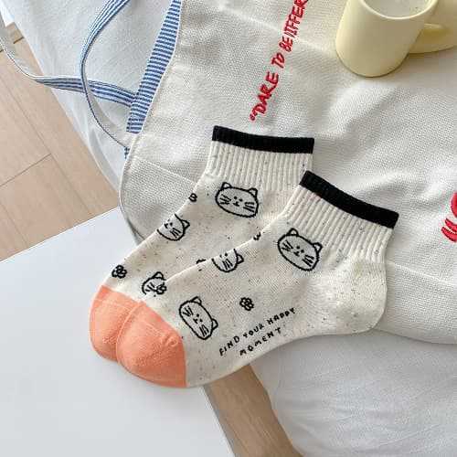 봄과 여름 새로운 컬러 폴카 도트 귀여운 고양이 짧은 튜브 얇은 포인트 원사 보트 양말 여성의 통기성 만화 여성 양말스토어 가기