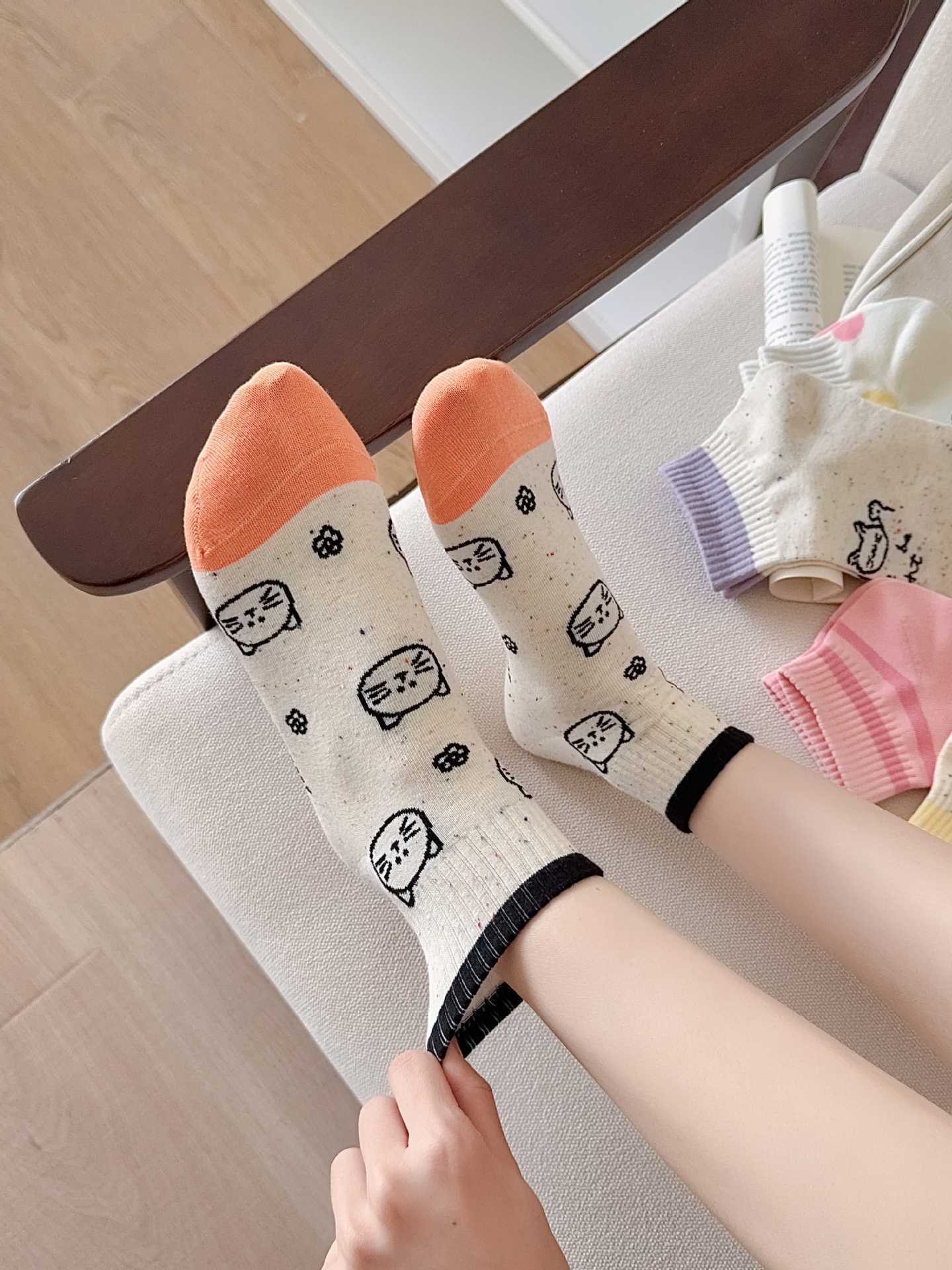 봄과 여름 새로운 컬러 폴카 도트 귀여운 고양이 짧은 튜브 얇은 포인트 원사 보트 양말 여성의 통기성 만화 여성 양말