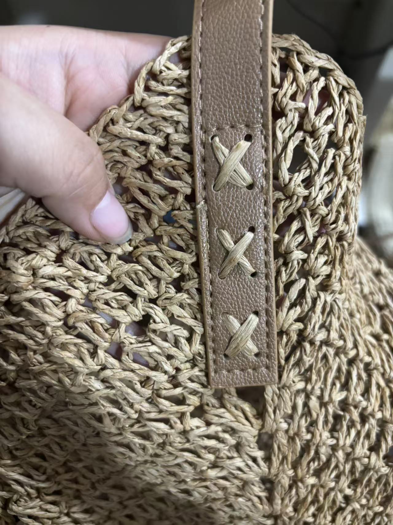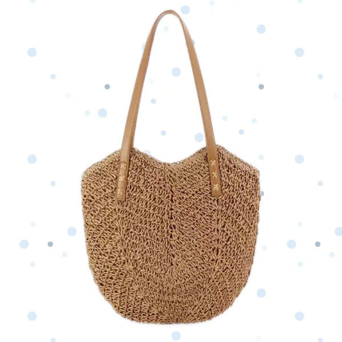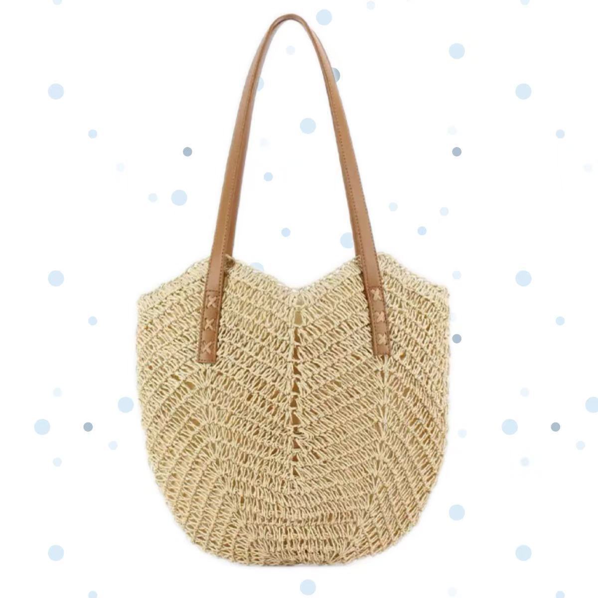 손으로 짠 어깨 겨드랑이 피닉스 꽃 휴대용 토트 종이 로프 밀짚 대용량 휴가 해변 가방