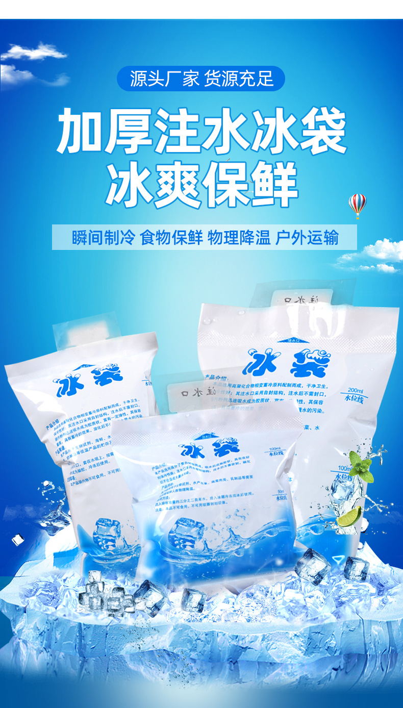 도매 100ml 물 주입 익스프레스 아이스 백 제조 업체 해산물 수산물 운송 및 냉동 신선한 아이스 백 물 주입 아이스 백