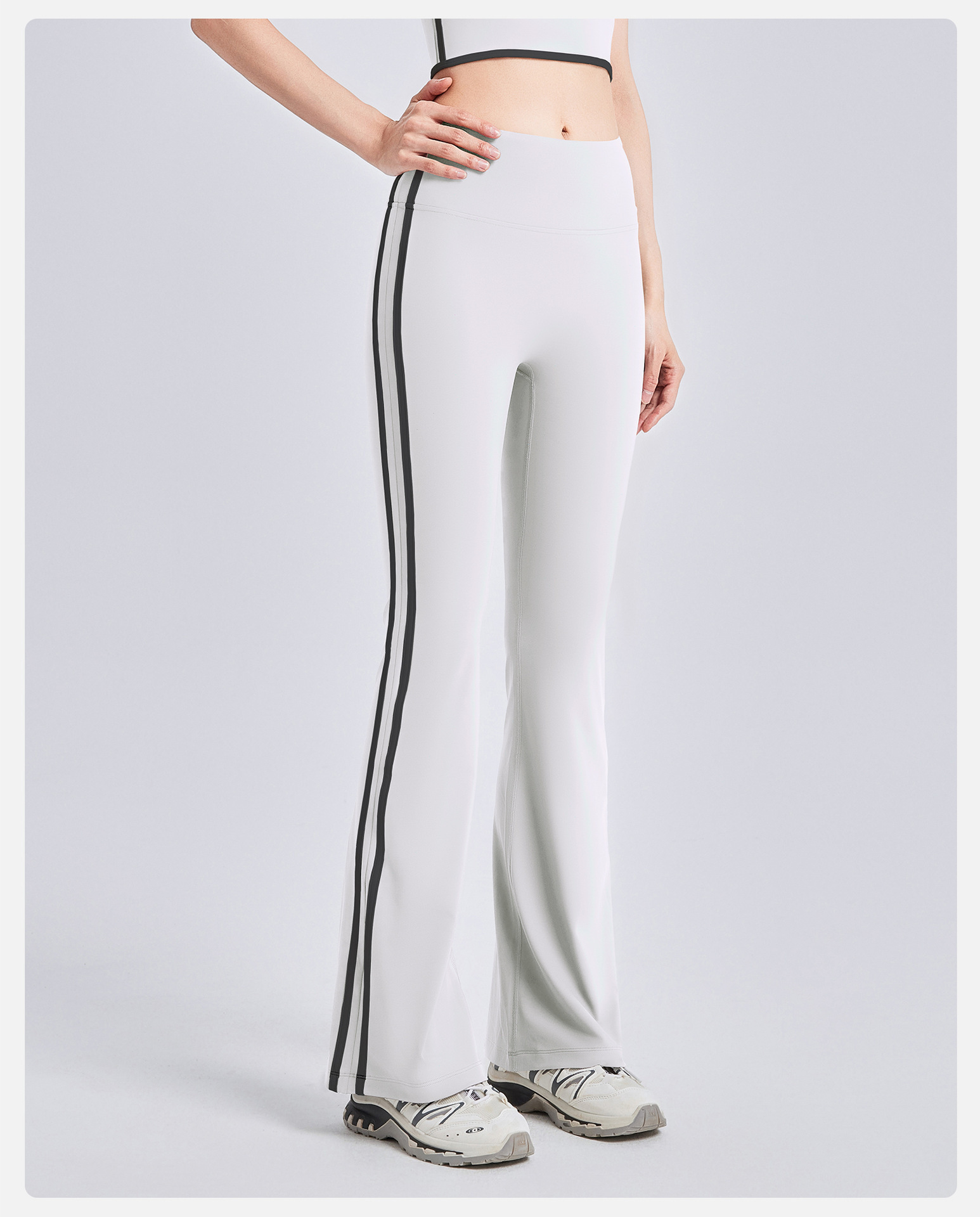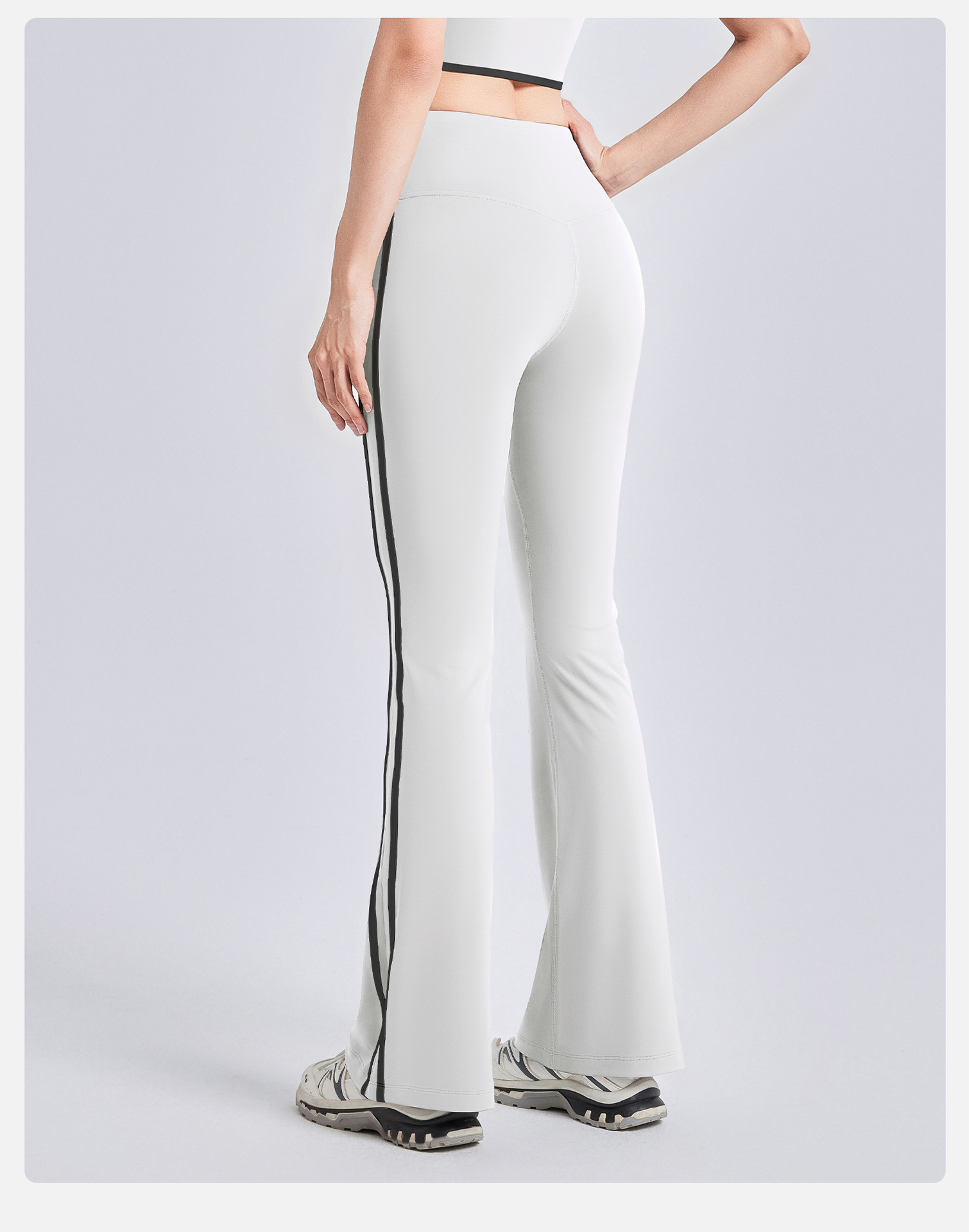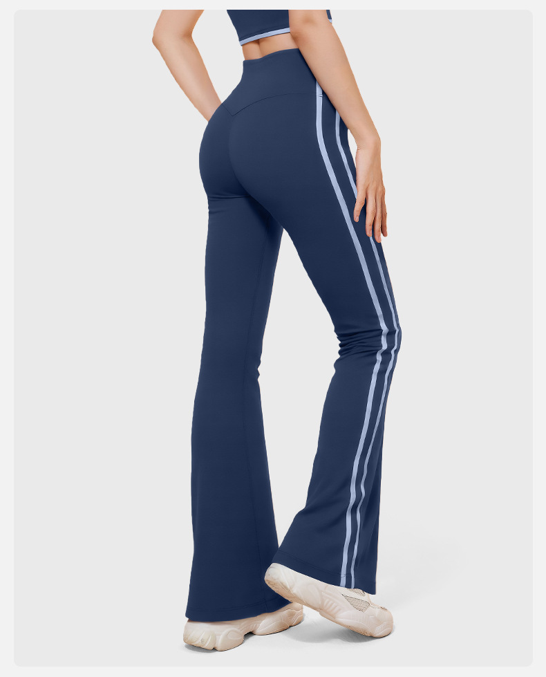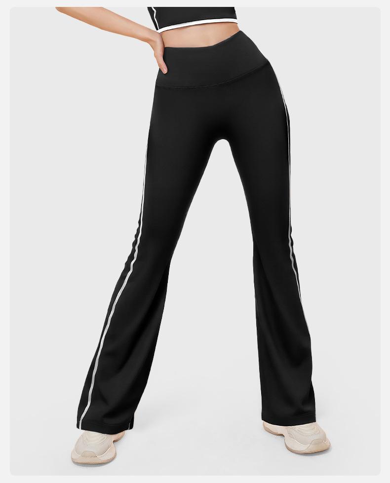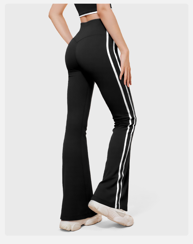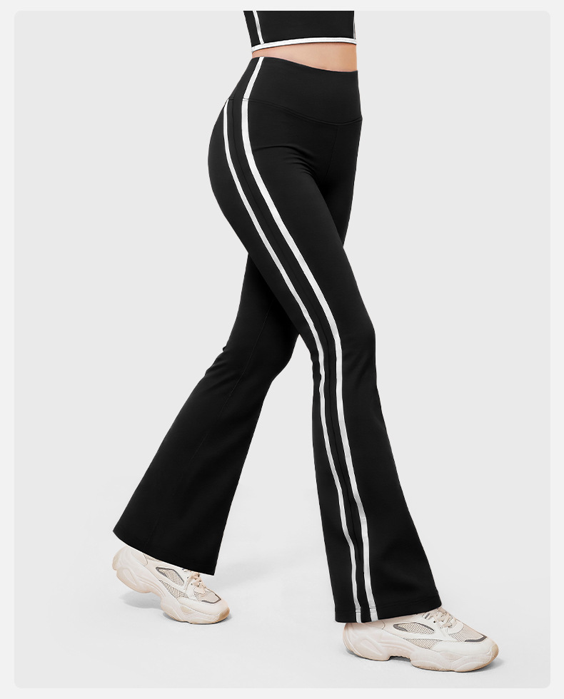 새로운 스트라이프 블랙 마이크로 혼 요가 바지 여성의 높은 허리 복숭아 엉덩이 피트니스 바지 캐주얼 스포츠 바지 머리카락 세대스토어 가기