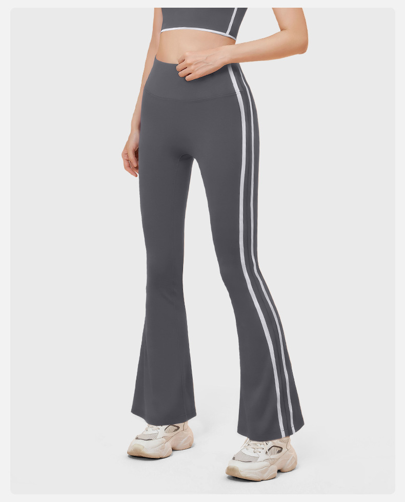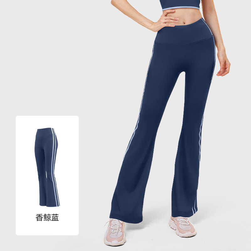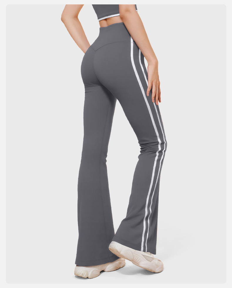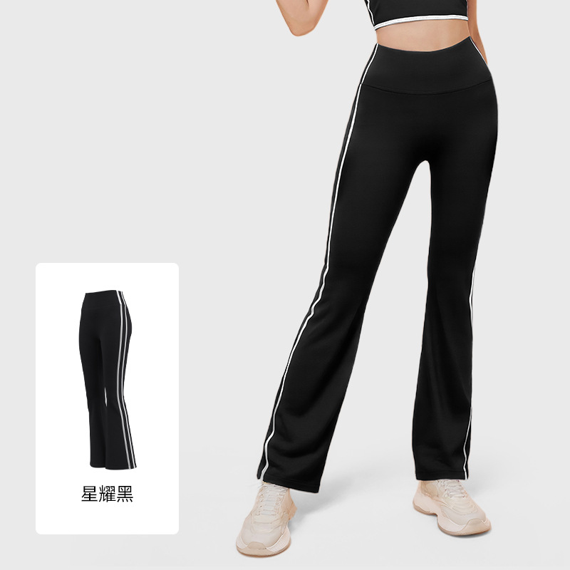 새로운 스트라이프 블랙 마이크로 혼 요가 바지 여성의 높은 허리 복숭아 엉덩이 피트니스 바지 캐주얼 스포츠 바지 머리카락 세대