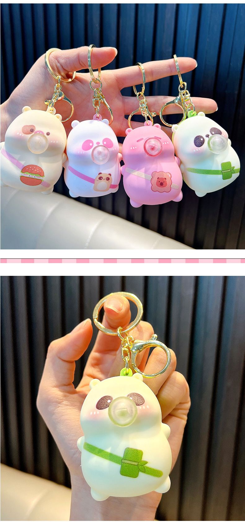 팬더 부는 퍼프 버블 핀치 음악 키 체인 여성 경화 퍼프 버블 감압 장난감 Schoolbag 펜던트 작은 선물스토어 가기