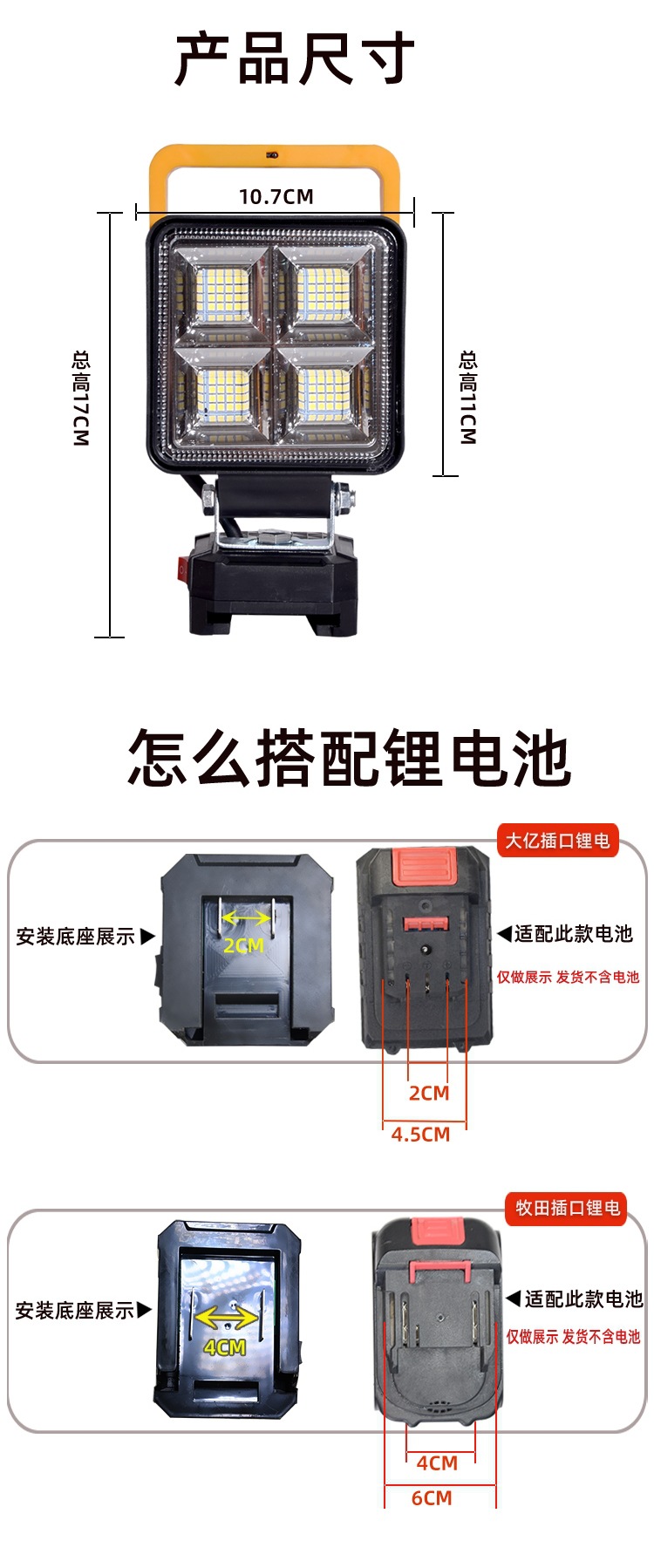 • 6홀 48개 램프 비드 [마키타 카드 슬롯] 배터리 없음