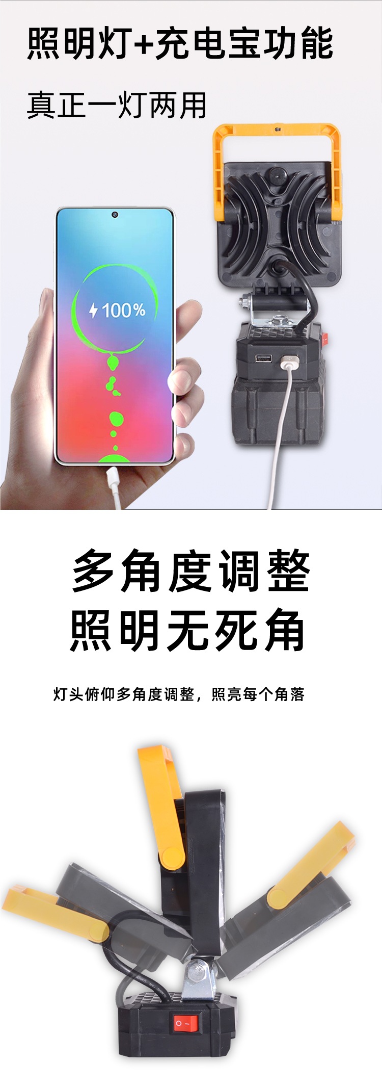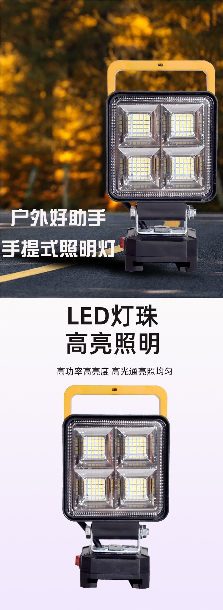 휴대용 조명 큰 목가적 인 필드 리튬 배터리 LED 작업 조명 전원 도구 DIY 자동 수리 조명 낚시 캠핑 조명