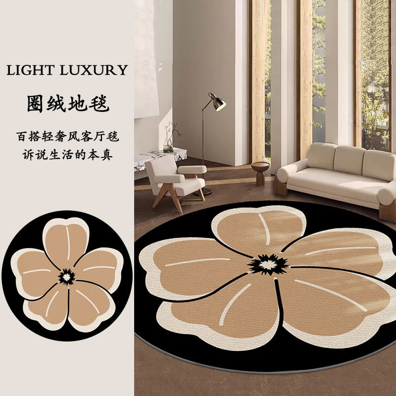 프랑스 특별한 모양의 꽃 서클 벨벳 카펫 홈 장식 거실 쉬운 관리 미끄럼 방지 커피 테이블 담요 침실 침대 옆 담요스토어 가기