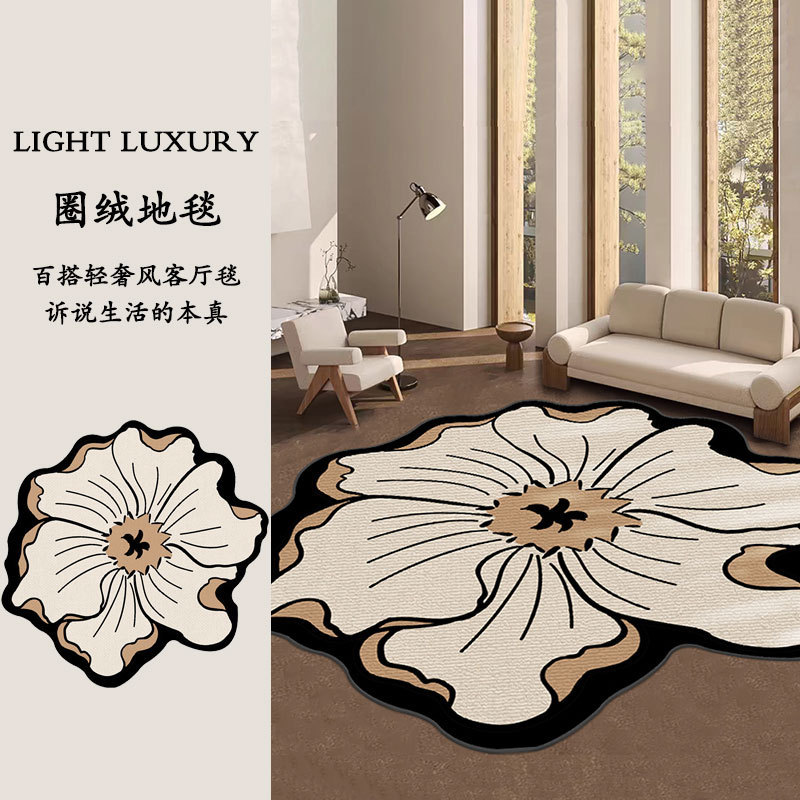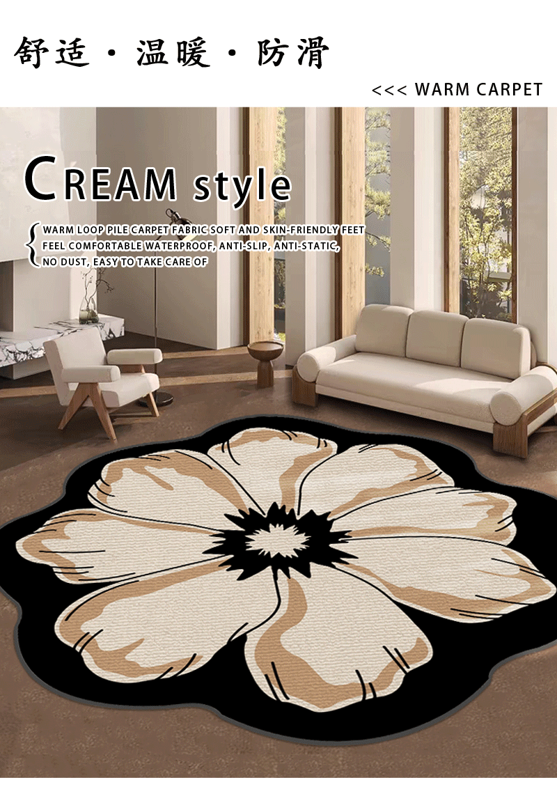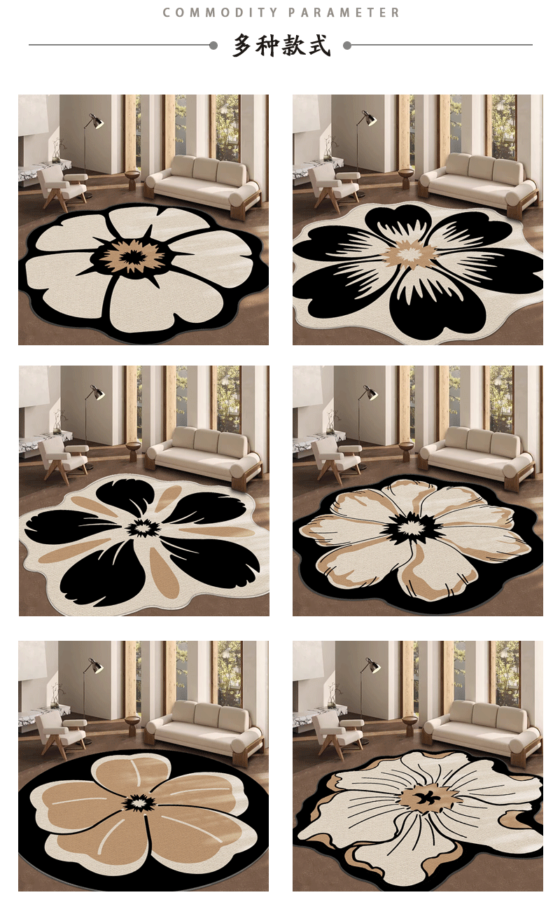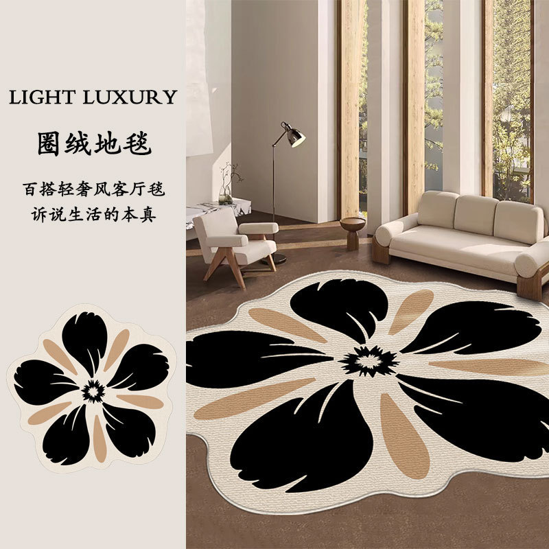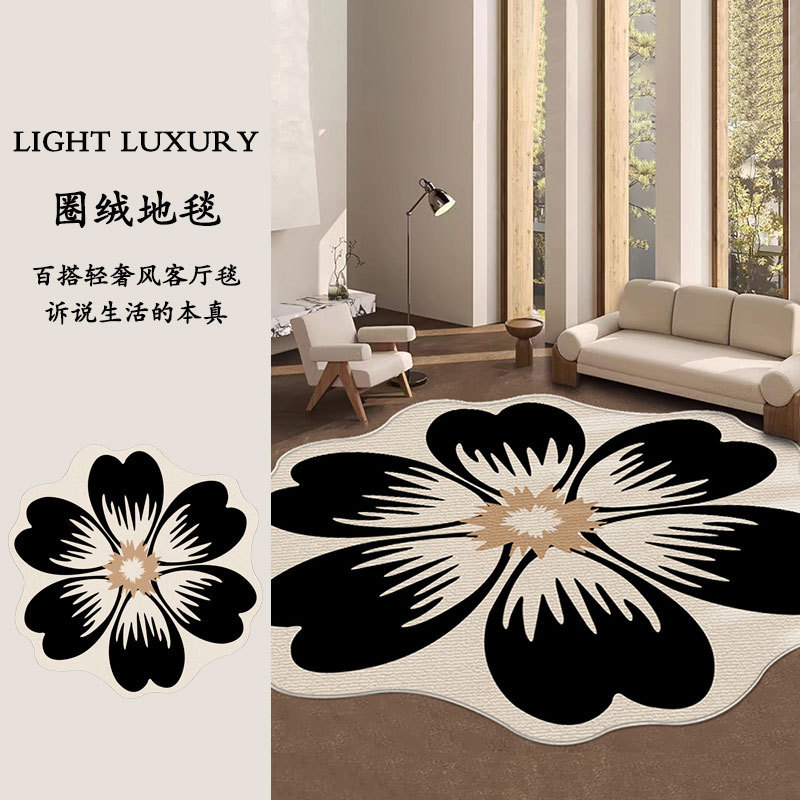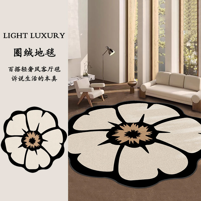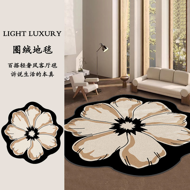 프랑스 특별한 모양의 꽃 서클 벨벳 카펫 홈 장식 거실 쉬운 관리 미끄럼 방지 커피 테이블 담요 침실 침대 옆 담요
