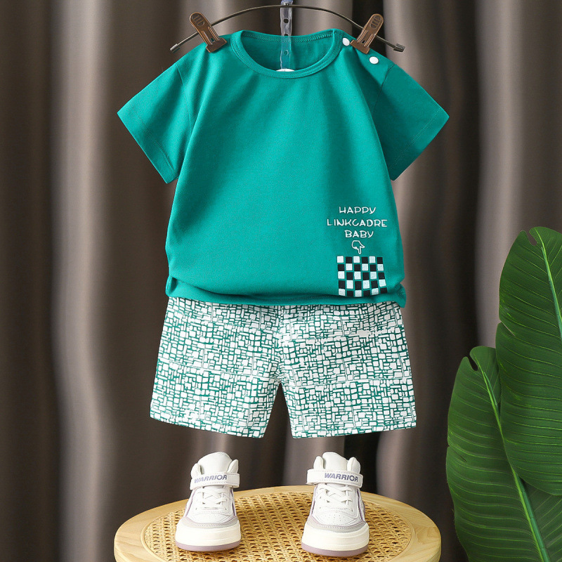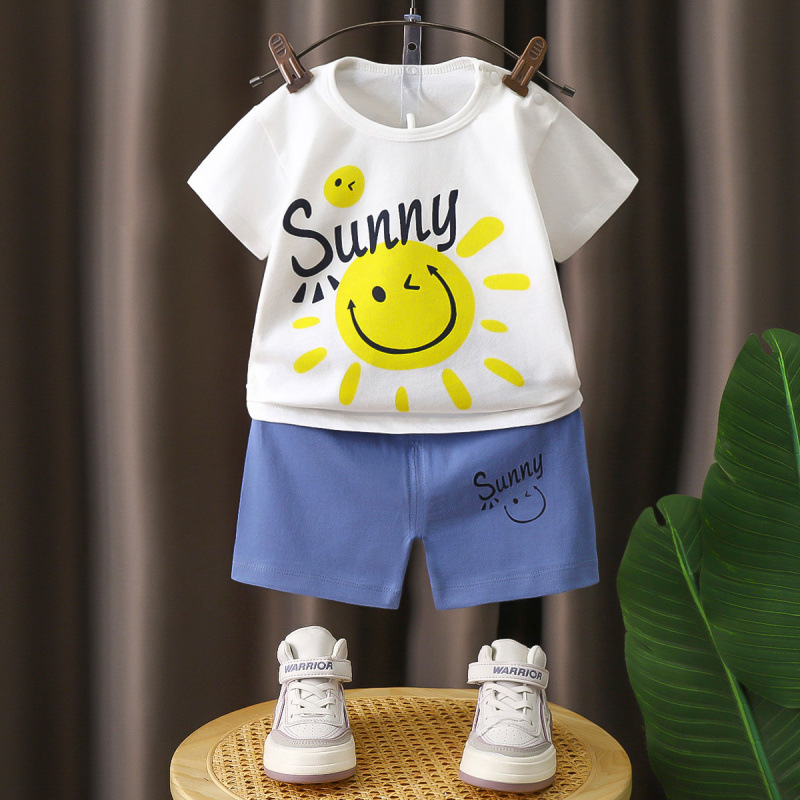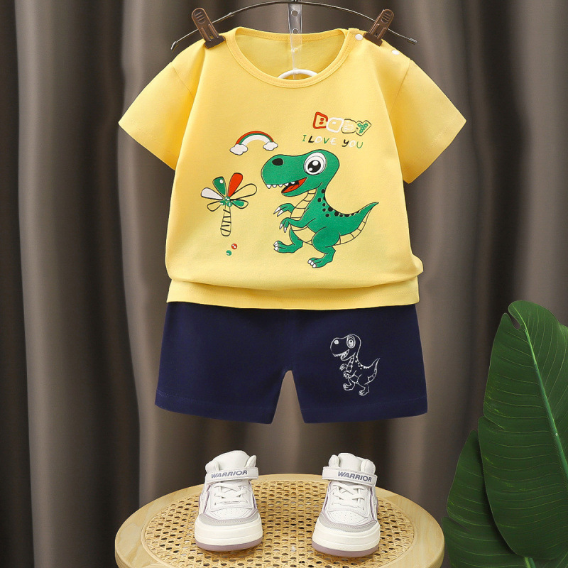 어린이 면 반팔 반바지 세트 소년 투피스 아기 여름 홈 옷 티셔츠 여아 의류 아동복스토어 가기