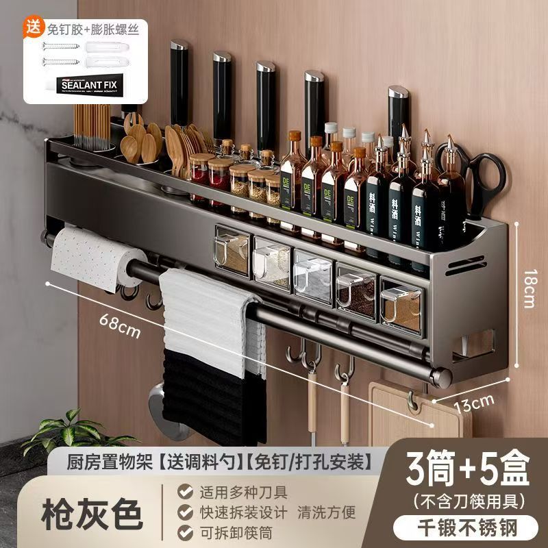 다기능 주방 보관 랙 벽걸이 스테인레스 스틸 조리대 조미료 젓가락 튜브 나이프 홀더 통합 스토리지 랙