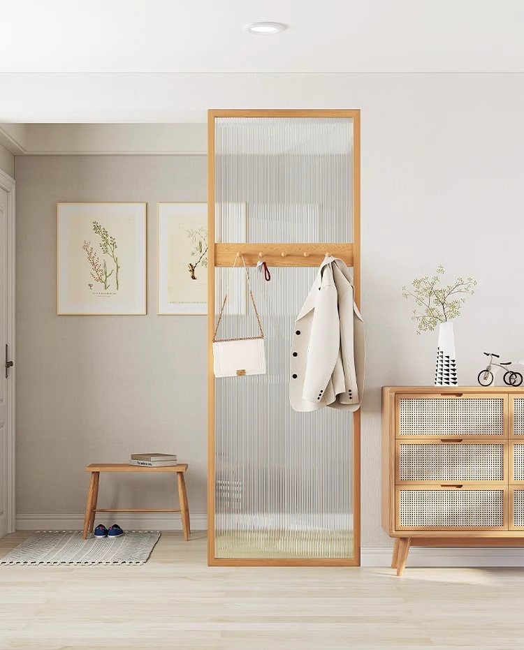 단단한 나무 홈 스크린 거실 입구 옷걸이 차폐 파티션 창홍 유리 아트 북유럽 단순스토어 가기