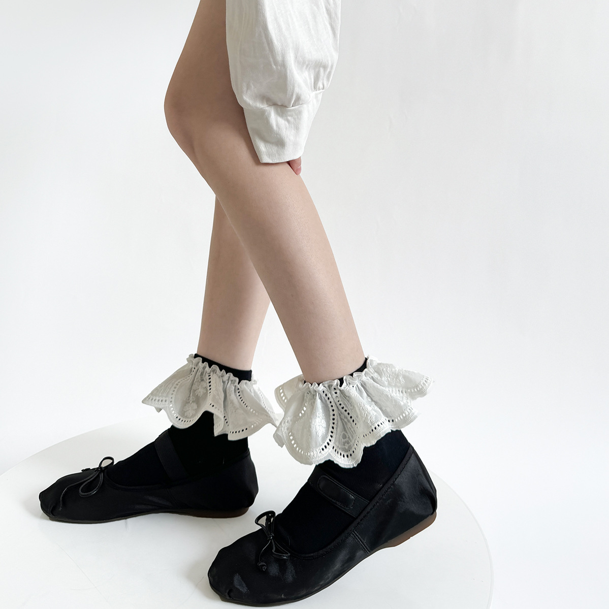 봄과 여름 새로운 공주 스타일 디자인 중공업 레이스 대형 레이스 코튼 양말 화이트 인 레트로 블랙 미드 튜브 양말