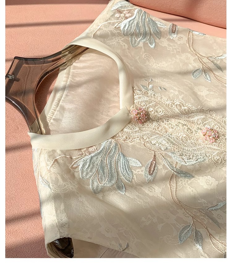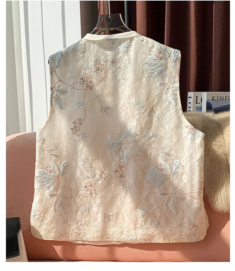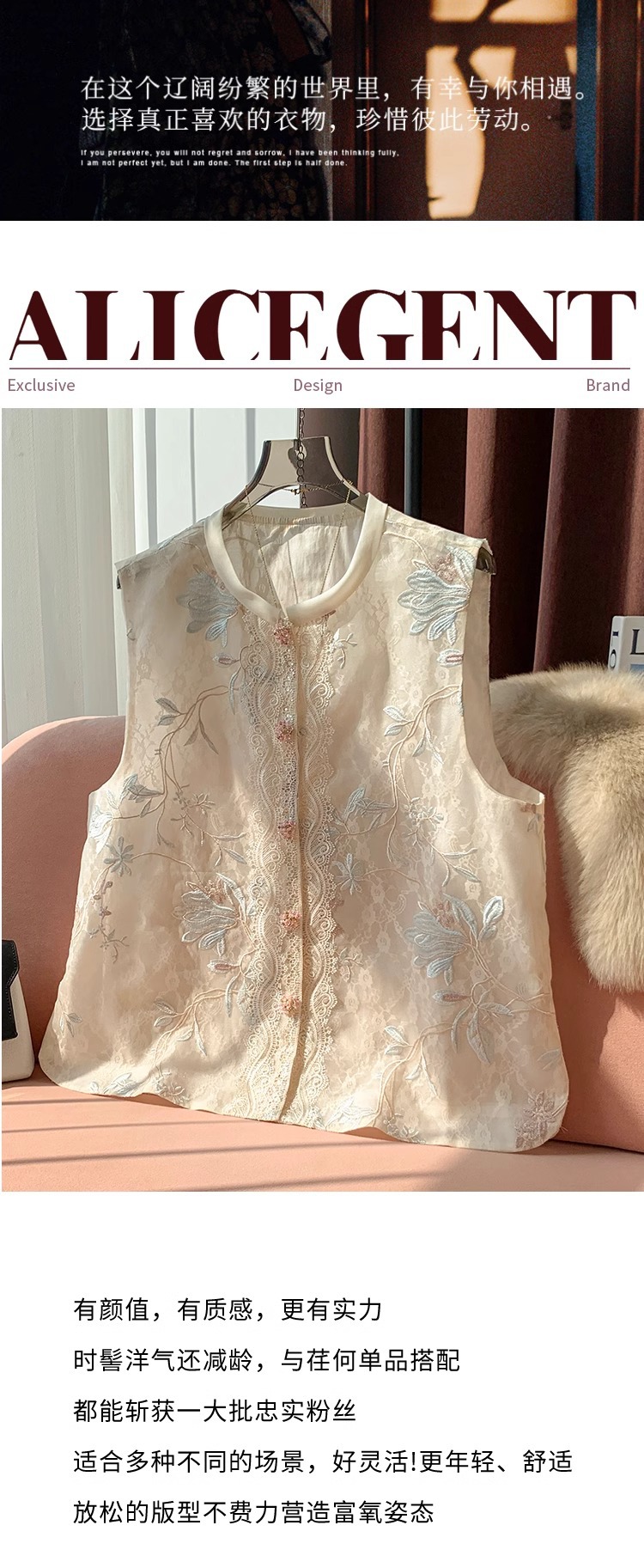 새로운 중국 스타일 민족 스타일 조끼 복고풍 중공업 자수 레이스 오간자 조끼 레이어드 조끼 겉옷 여성 봄