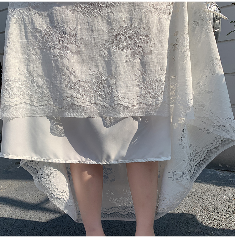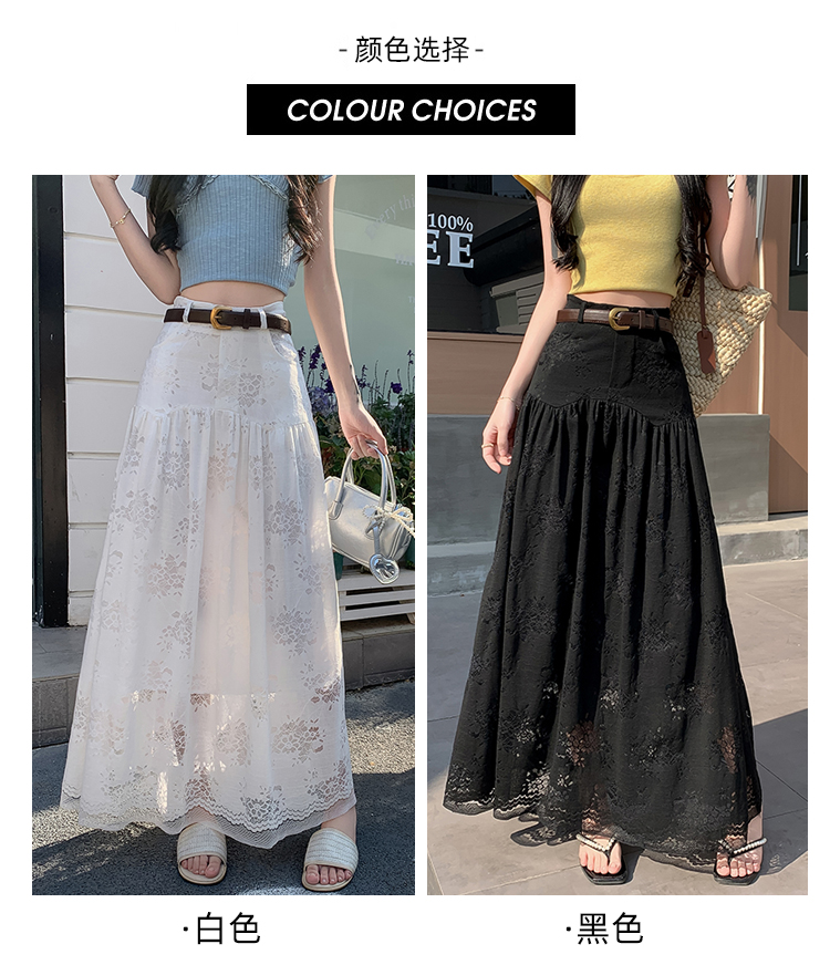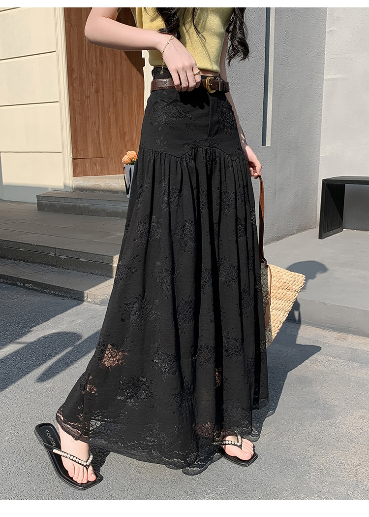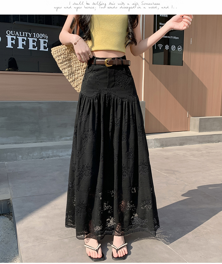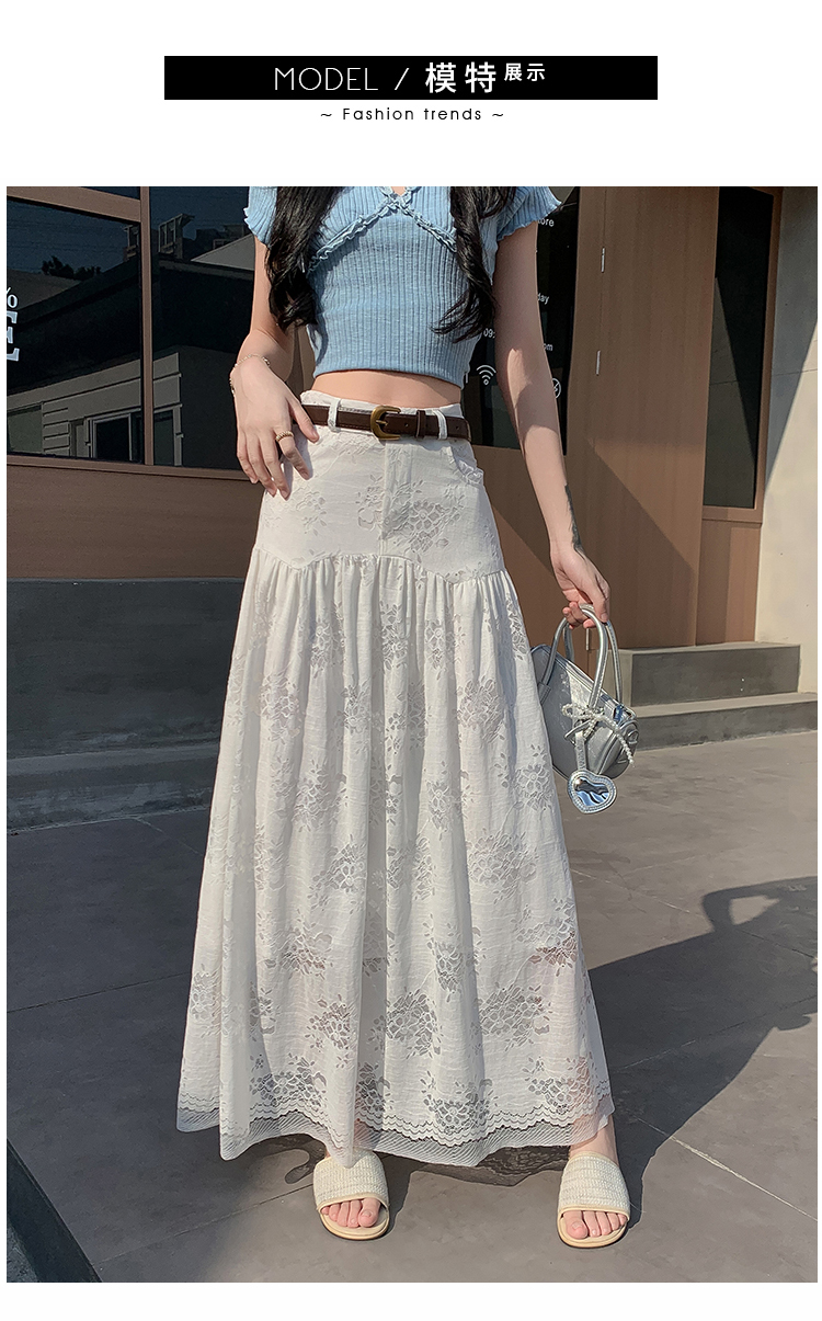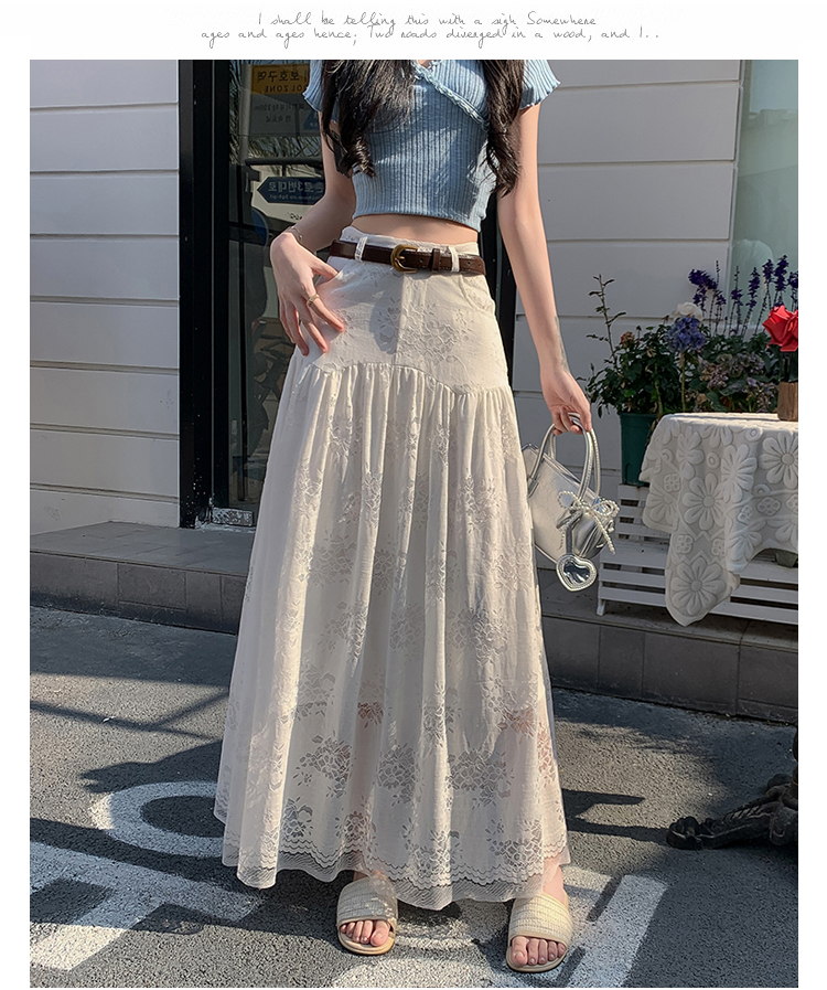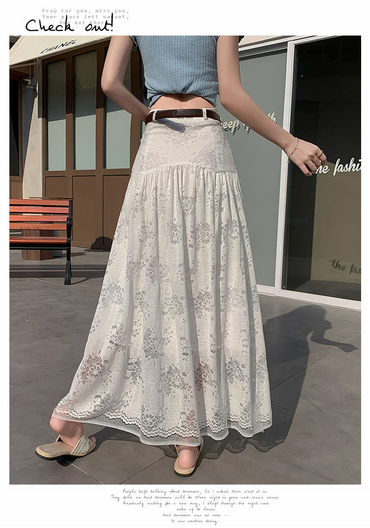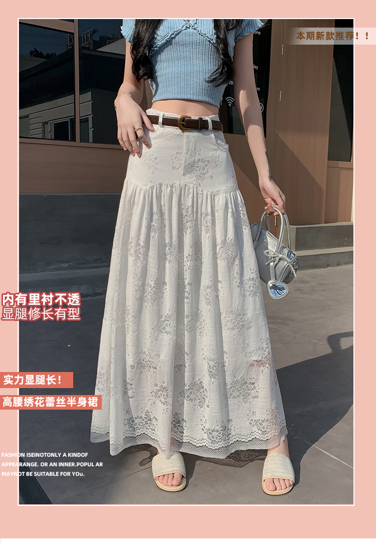 프렌치 스타일 화이트 레이스 하이엔드 스커트 2025 봄 신상 하이웨이스트 슬림 A라인 롱 스커트스토어 가기