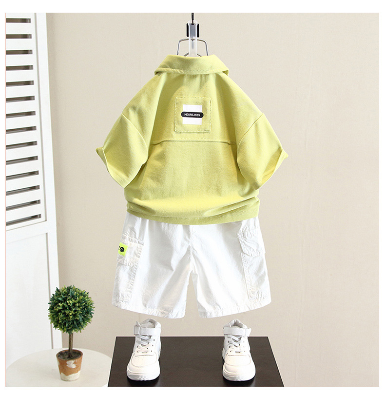 7212 소년 여름 세트 2025 새로운 잘 생긴 얇은 어린이 짧은 소매 폴로 셔츠 아기 외국 스타일의 여름스토어 가기