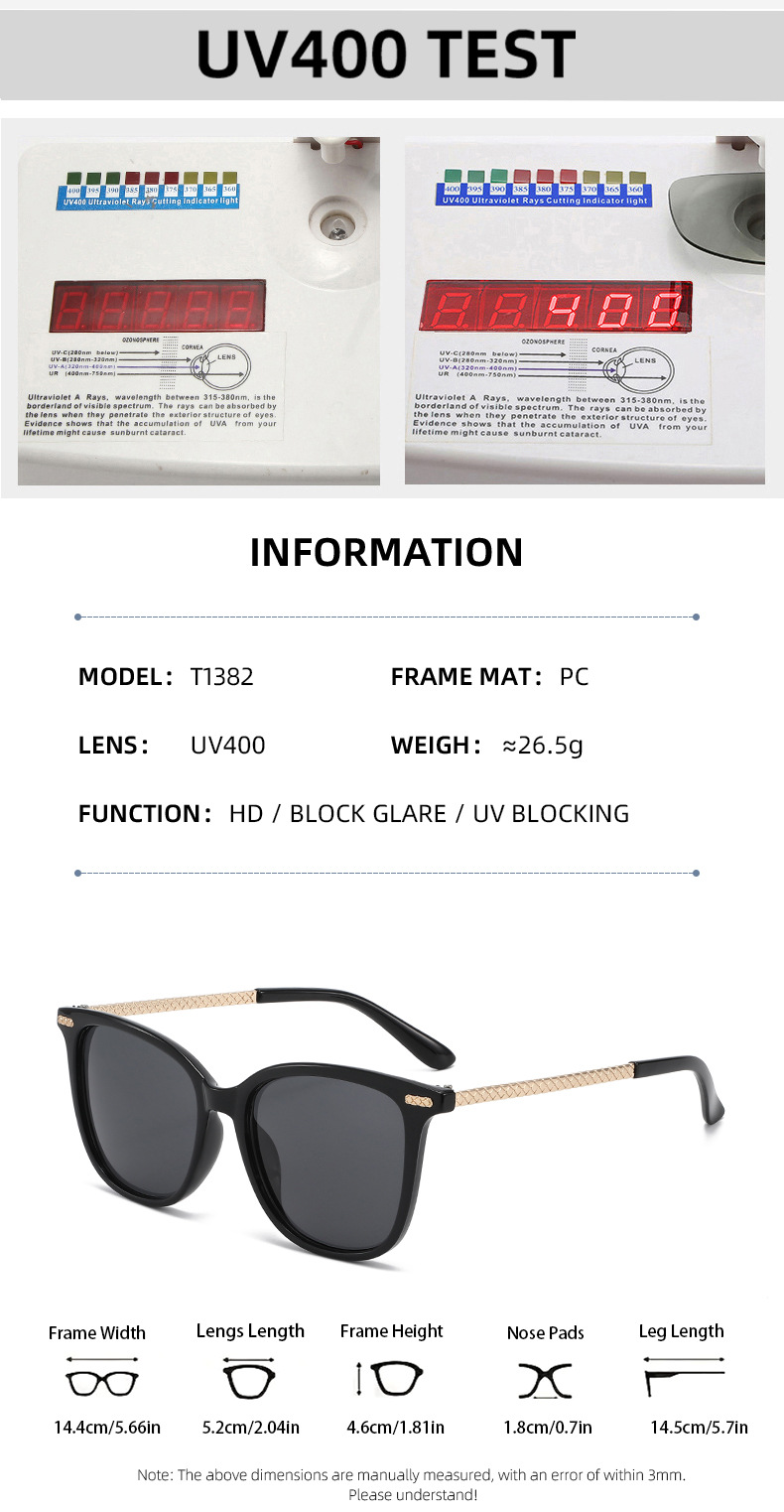 새로운 금속 트위스트 스타일 HD 숙녀 선글라스 야외 여행 거리 촬영 필수 단일 제품 선글라스 T1382