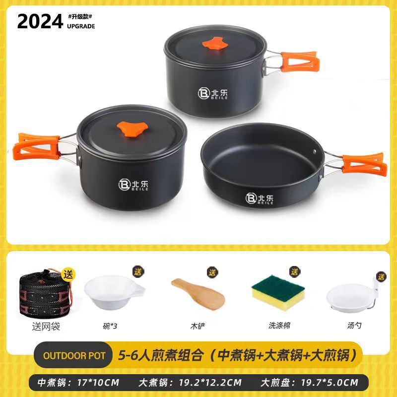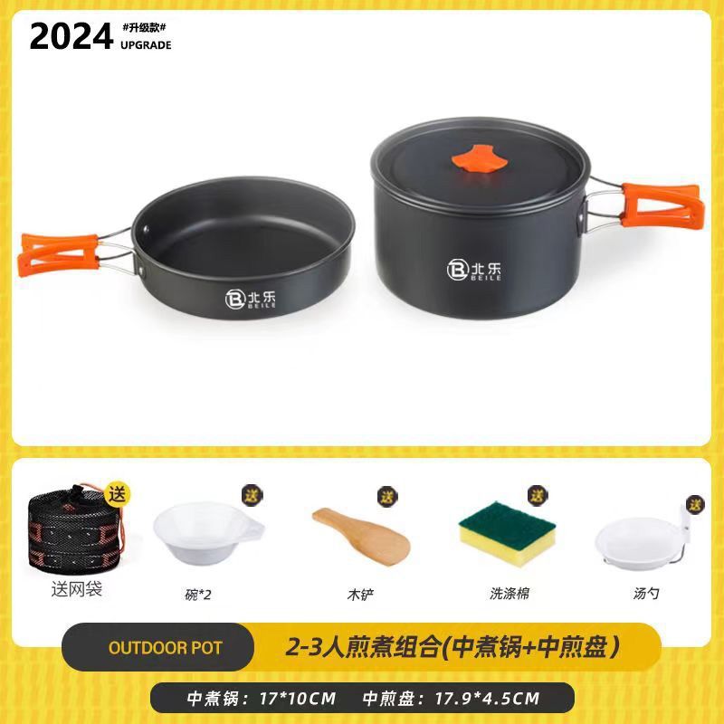 • [대형 냄비 튀김 조합] 끓는 냄비 3리터 + 프라이팬 1.2리터 - 카키색 [스토브 75% off개/휴대용 여행]