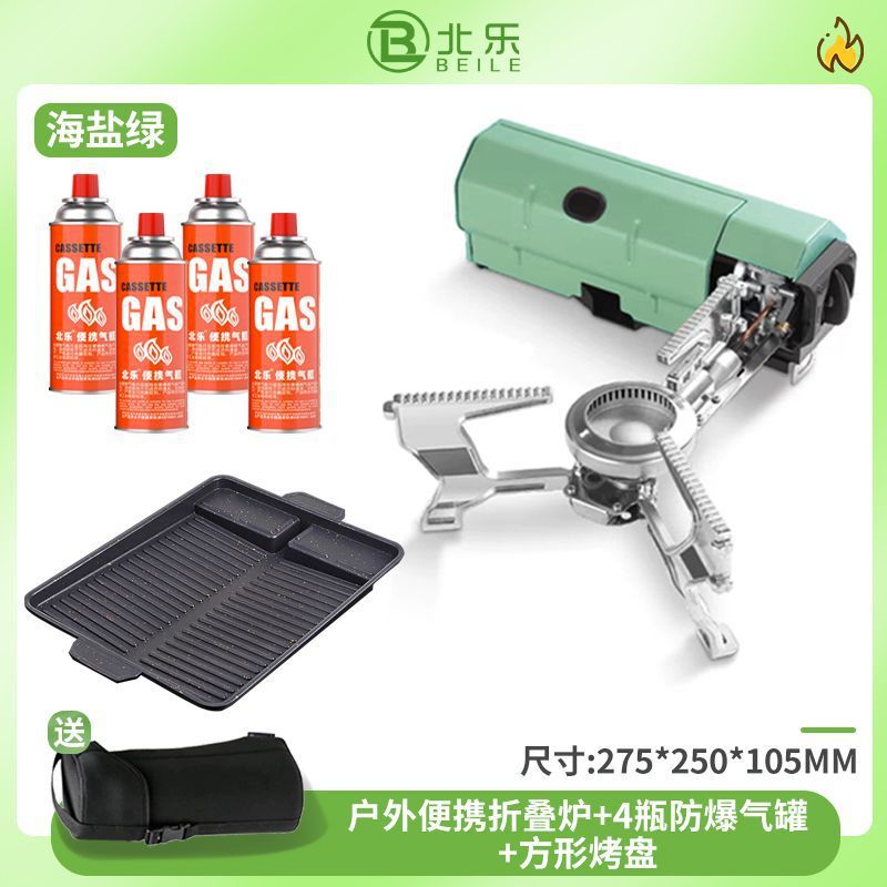 • 접이식 난로 + 방폭가스*4 + 사각 베이킹팬 + 수납가방 - 씨솔트 그린 [ 75% off단 난로 / 수입밸브 ]