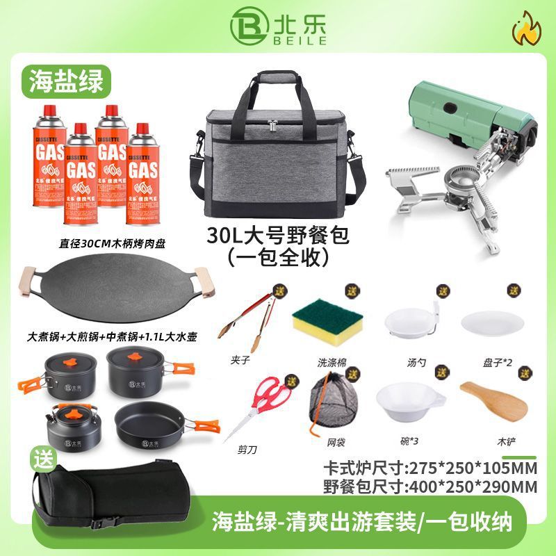 • 접이식난로+방폭가스*4+가정용냄비세트+수납가방 - 씨솔트그린 [ 75% off단난로/수입밸브]