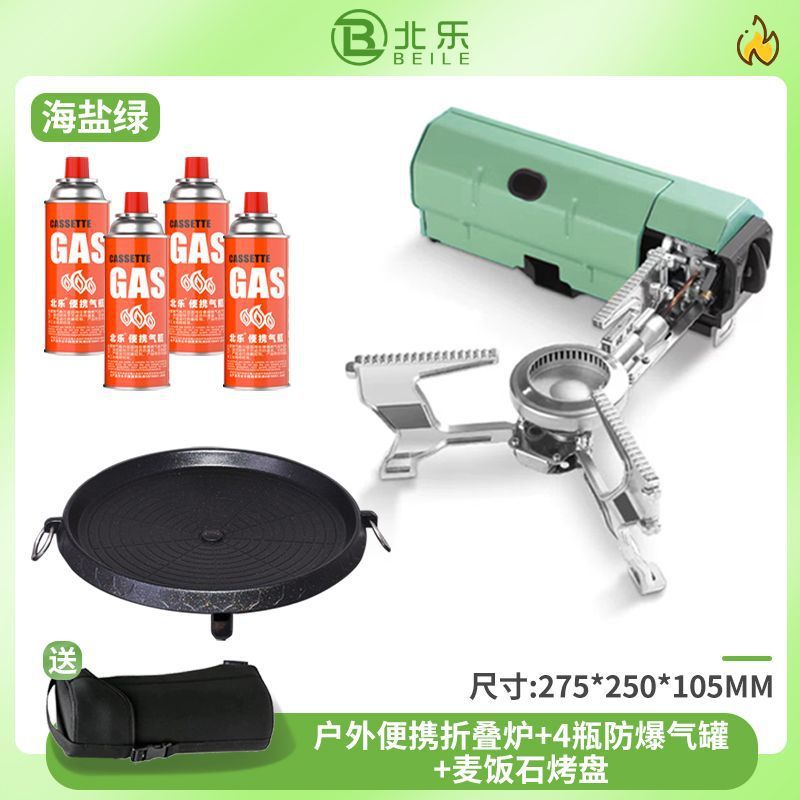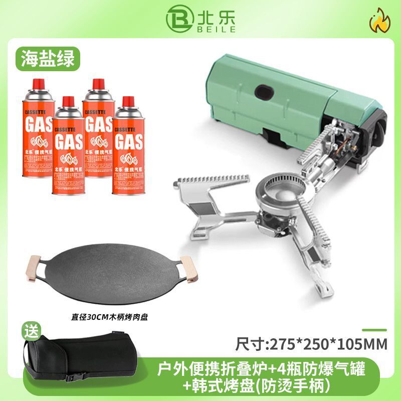 • 접이식 난로 + 방폭가스*4 + 바비큐 접시 + 수납가방 - 씨솔트 그린 [ 75% off단 난로 / 수입밸브 ]