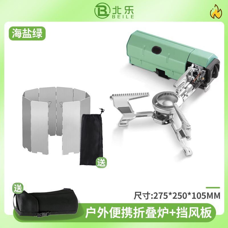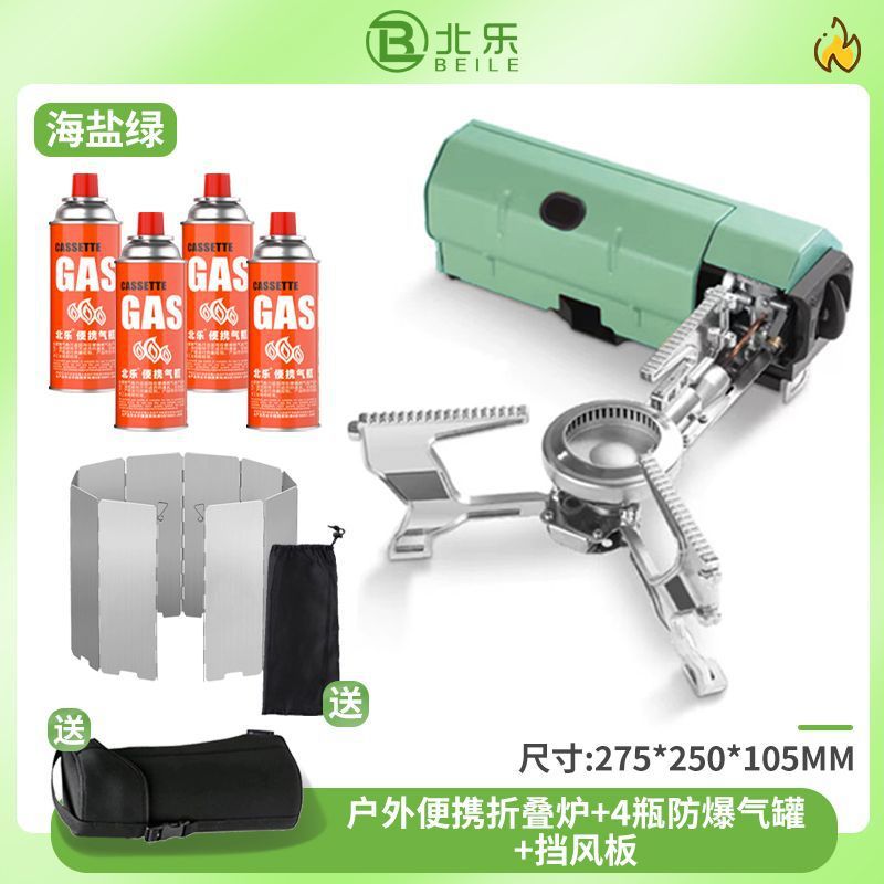• [캠핑여행] 접이식스토브 + 가스4개 + 바비큐접시 + 가방 + 앞유리 - 씨솔트그린 [스태킹스토브1개/수입밸브]