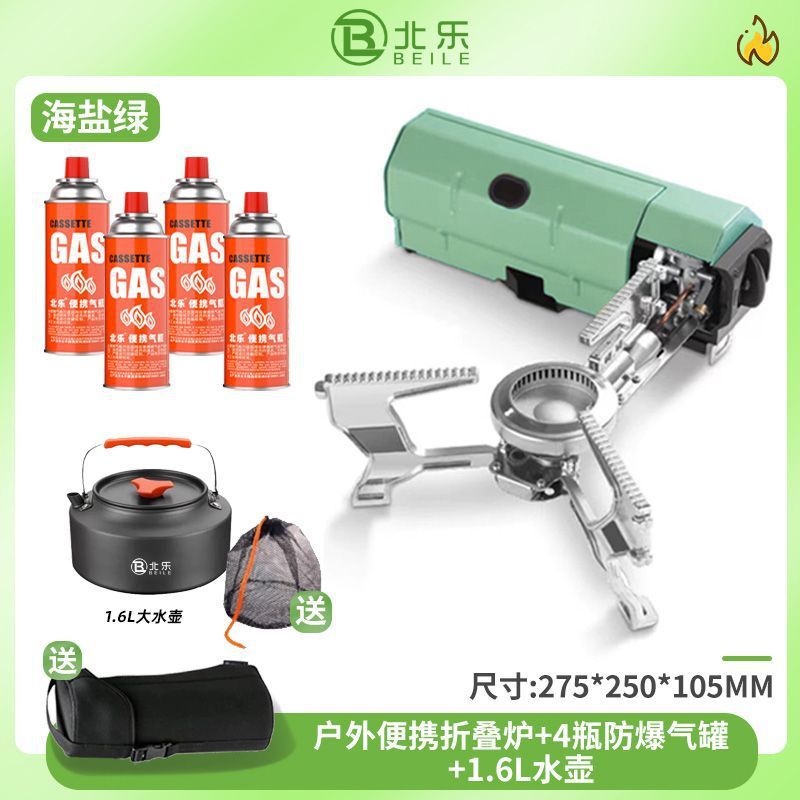 • 접이식 스토브 + 방폭가스*4 + 1.6L 주전자 + 수납가방 - 카키 [ 75% off단 스토브/휴대용 여행]