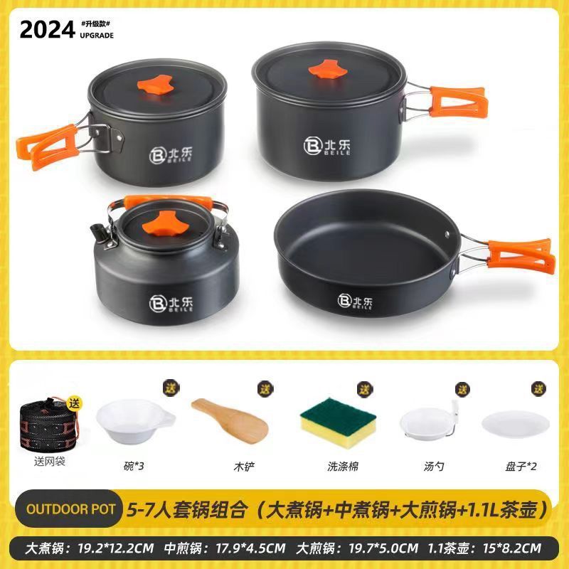 • [대형 4종세트] 중조리+대형조리+대형튀김+1.1냄비 - 카키 [스토브 75% off단/휴대용 여행용]