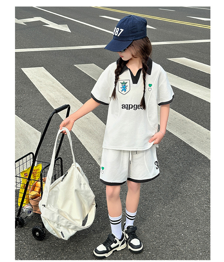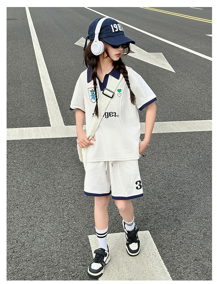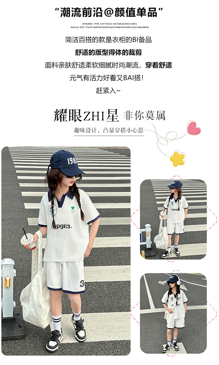 여아 여름 얇은 스웨트 셔츠 세트 어린이 중대형 어린이 2025 여름 반팔 폴로 셔츠 반바지 투피스 세트스토어 가기