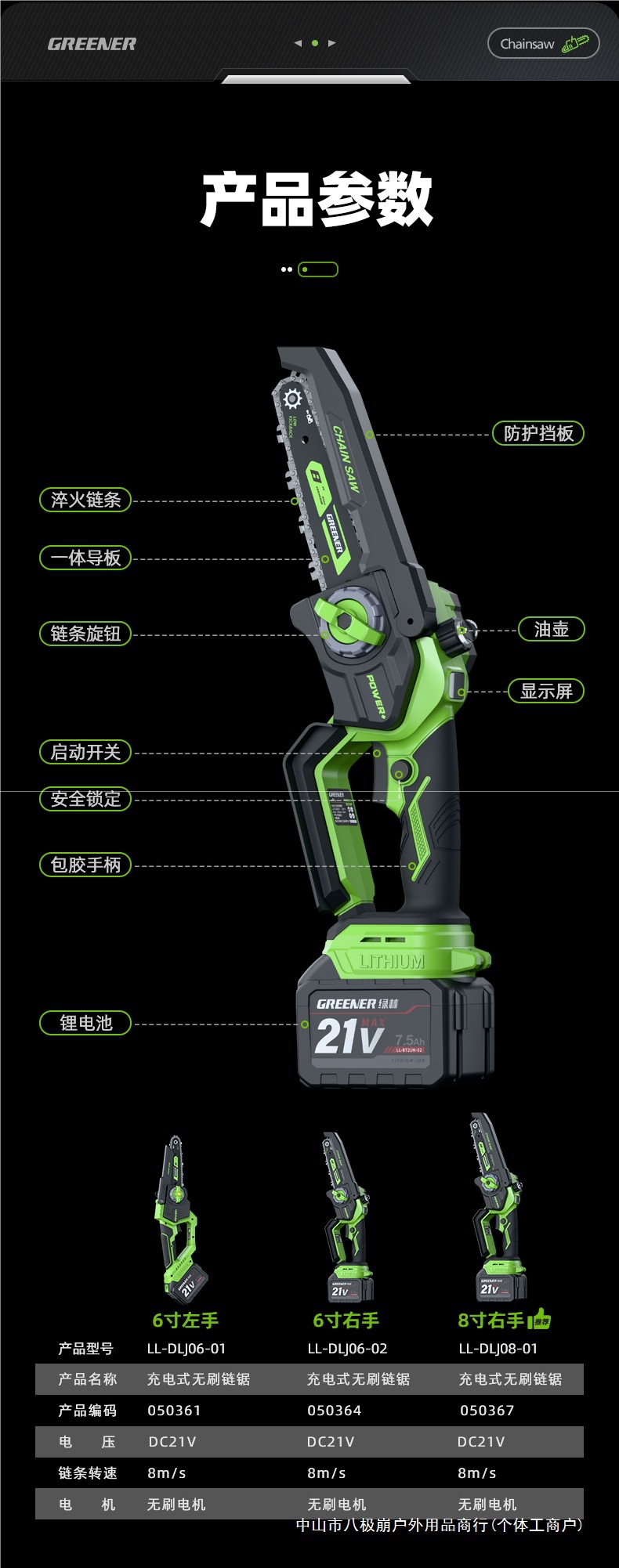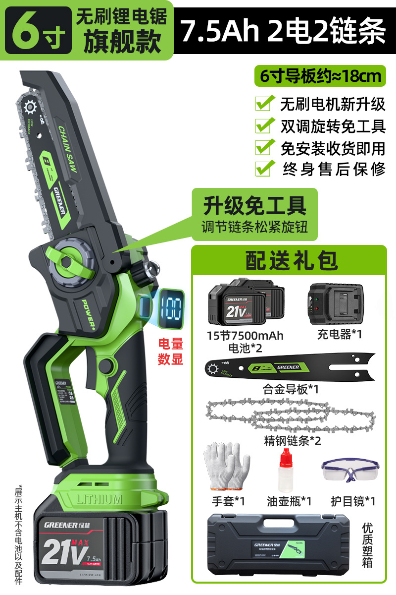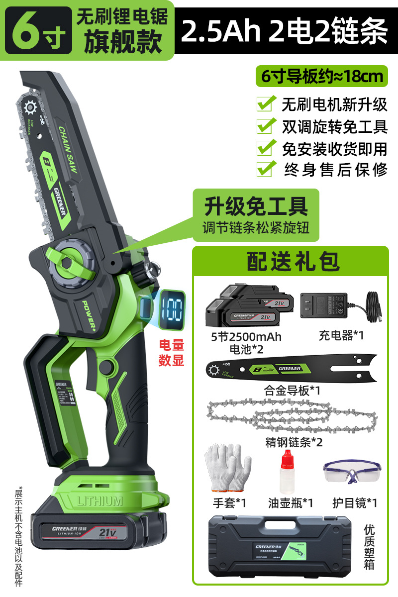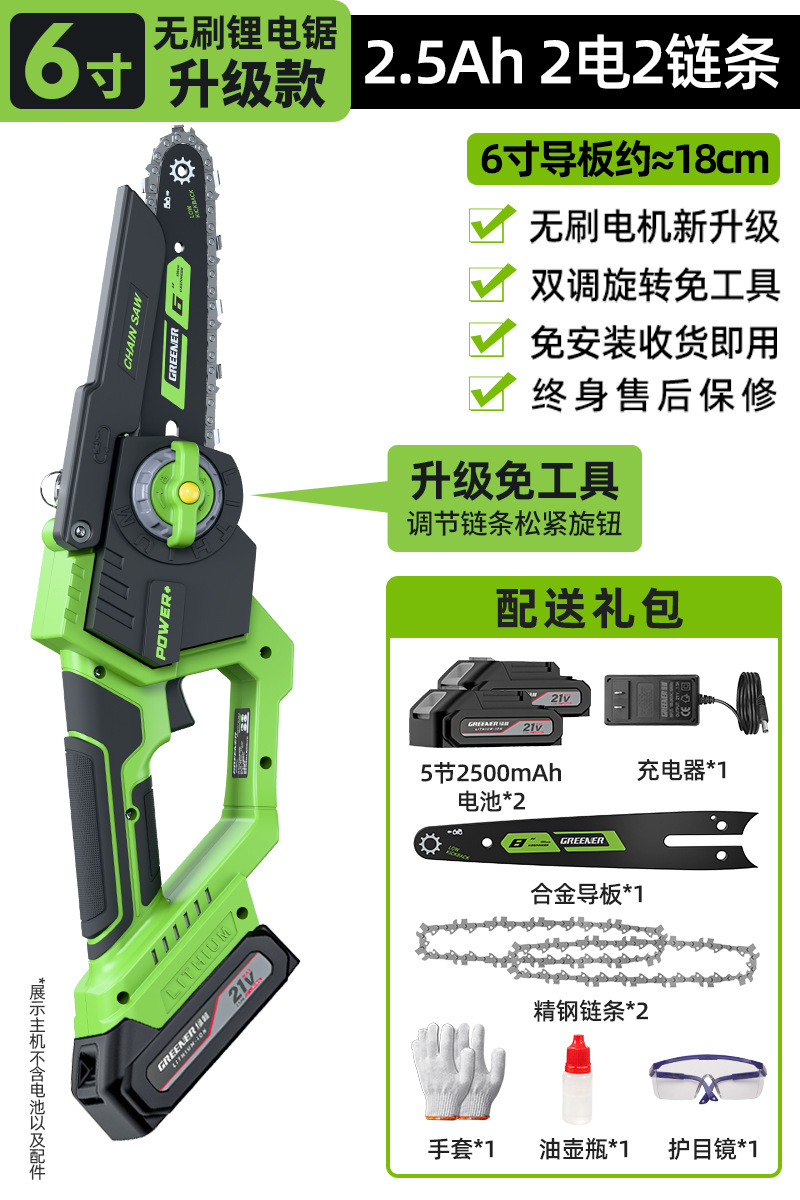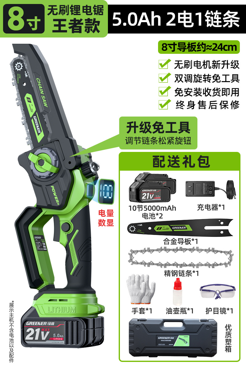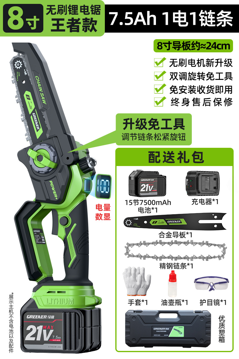 그린 포레스트 리튬 전기 전기 톱 리튬 전기 톱 충전식 전기 톱 가정용 소형 휴대용 전기 톱 한 손으로 전기 톱 가정용 8극