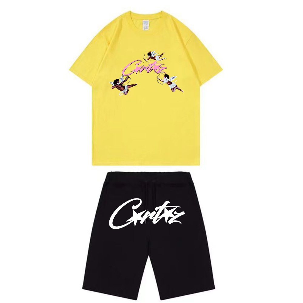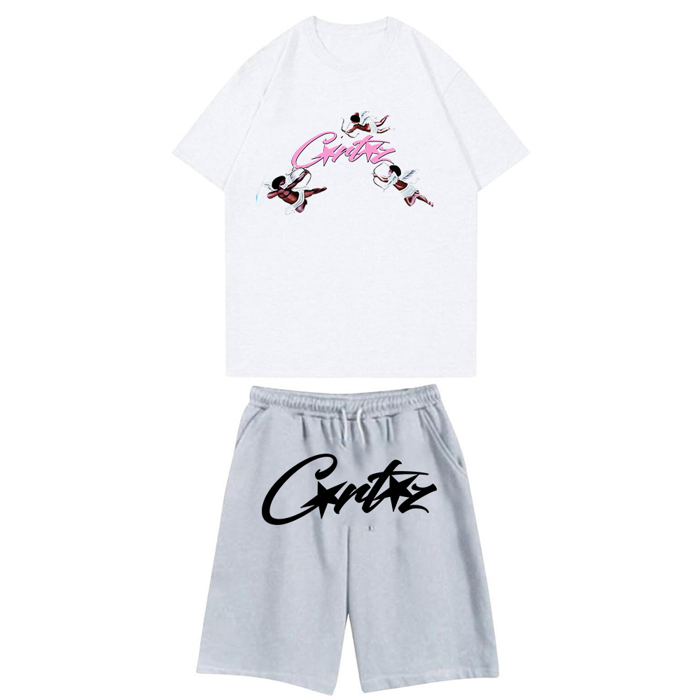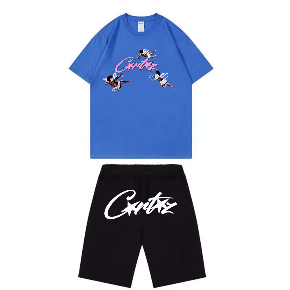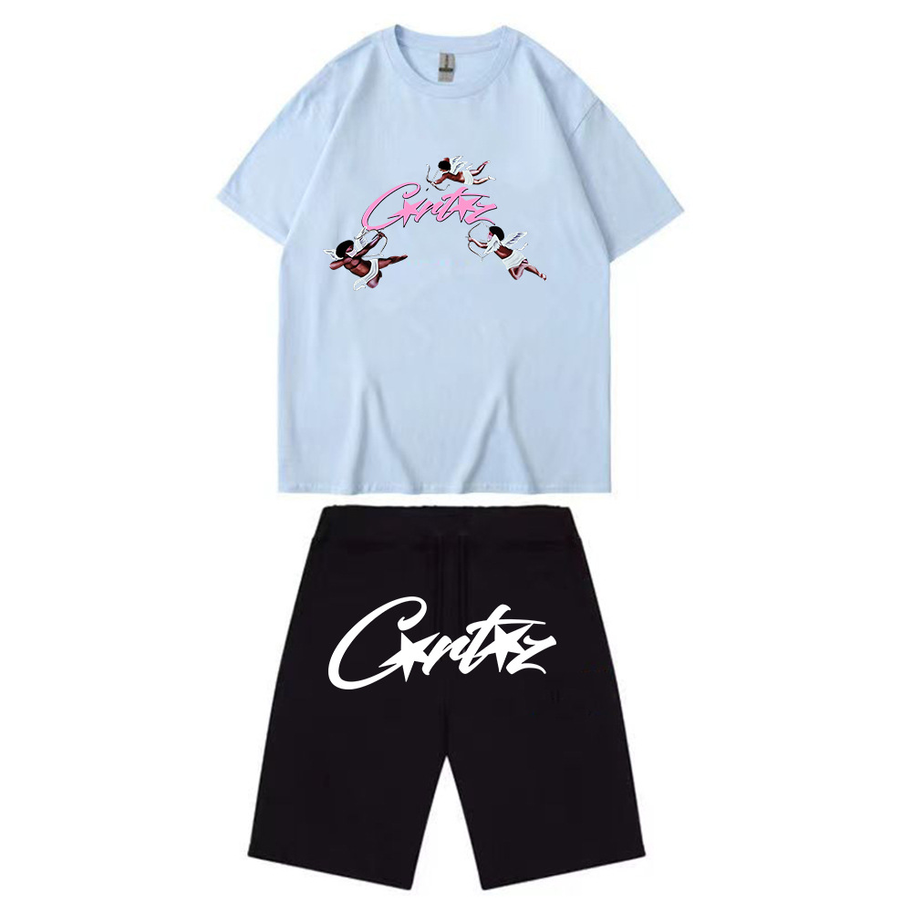 국경 간 Corteiz 트렌디 브랜드 Alcatraz 프린트 여름 신작 남성 및 여성 트렌디 루즈 캐주얼 반팔 티셔츠 슈트