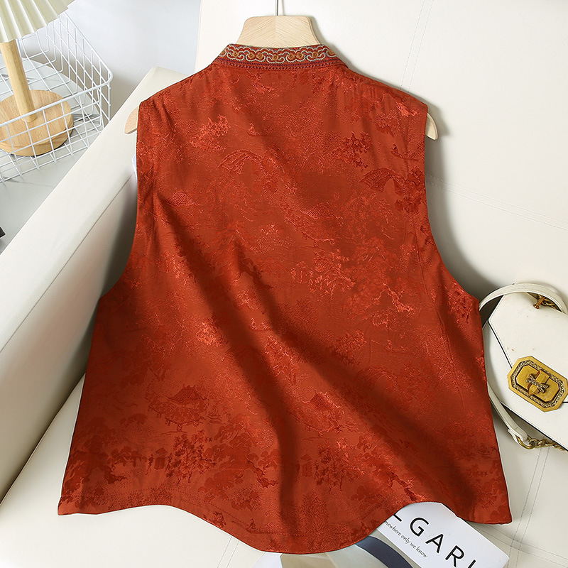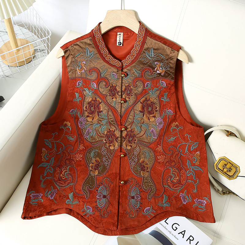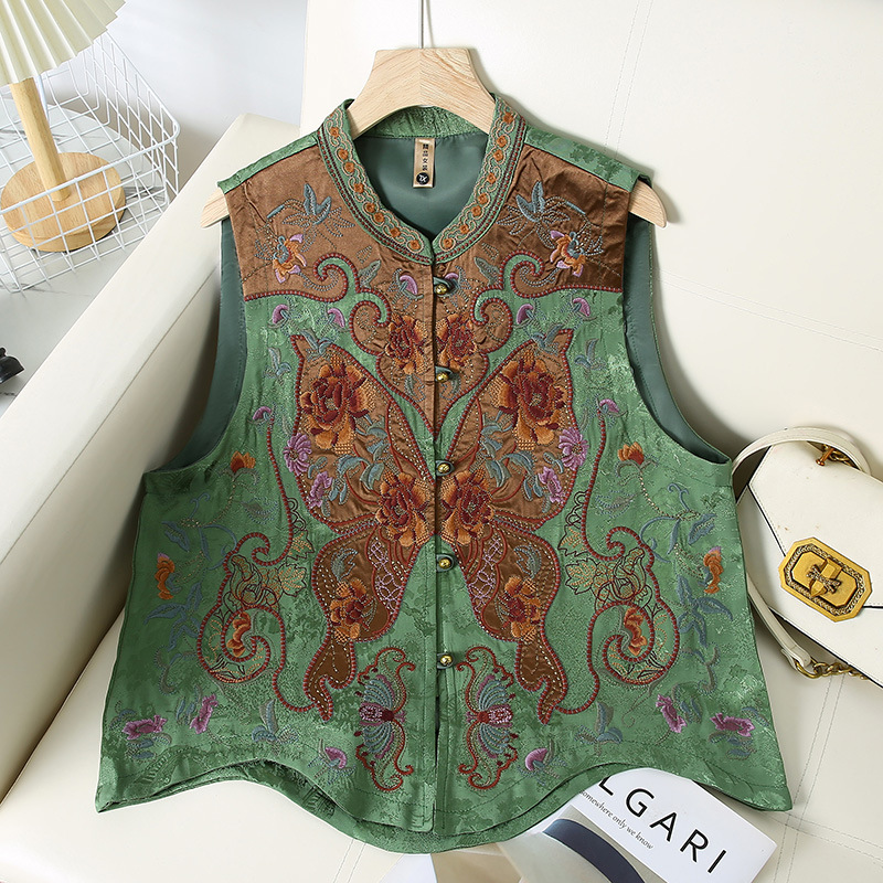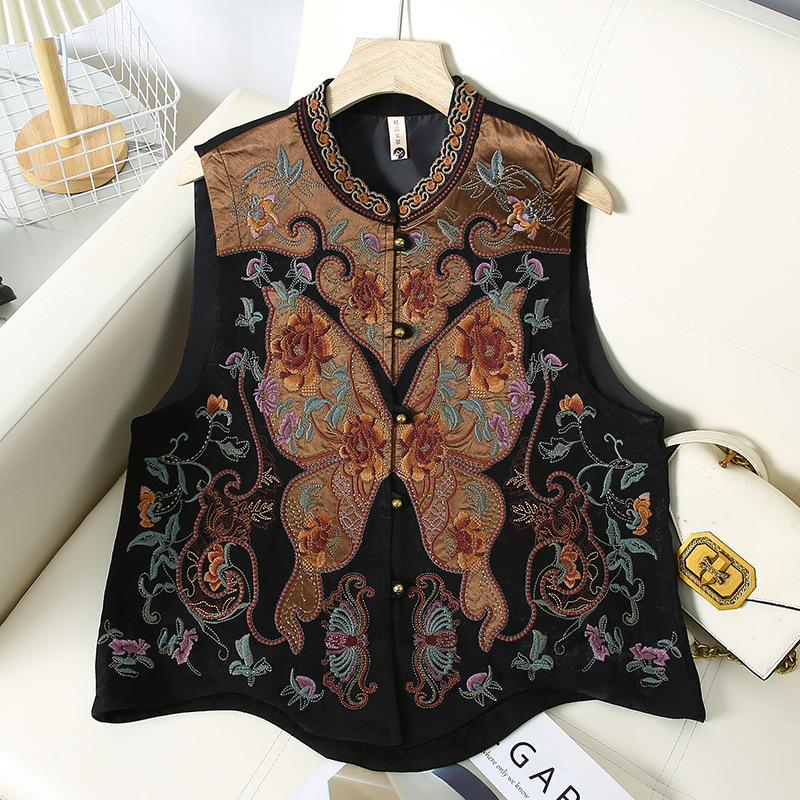 중국 스타일 중공업 나비 자수 여성 조끼 2025 봄과 여름 여성 민족 스타일 조끼 복고풍 민소매 양복 조끼