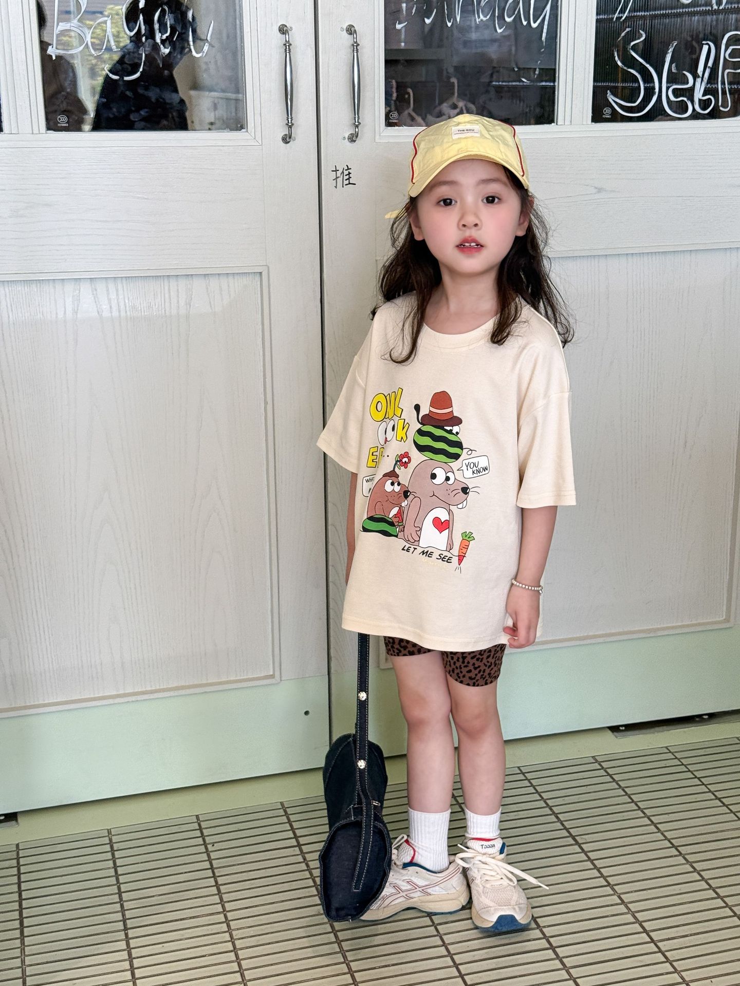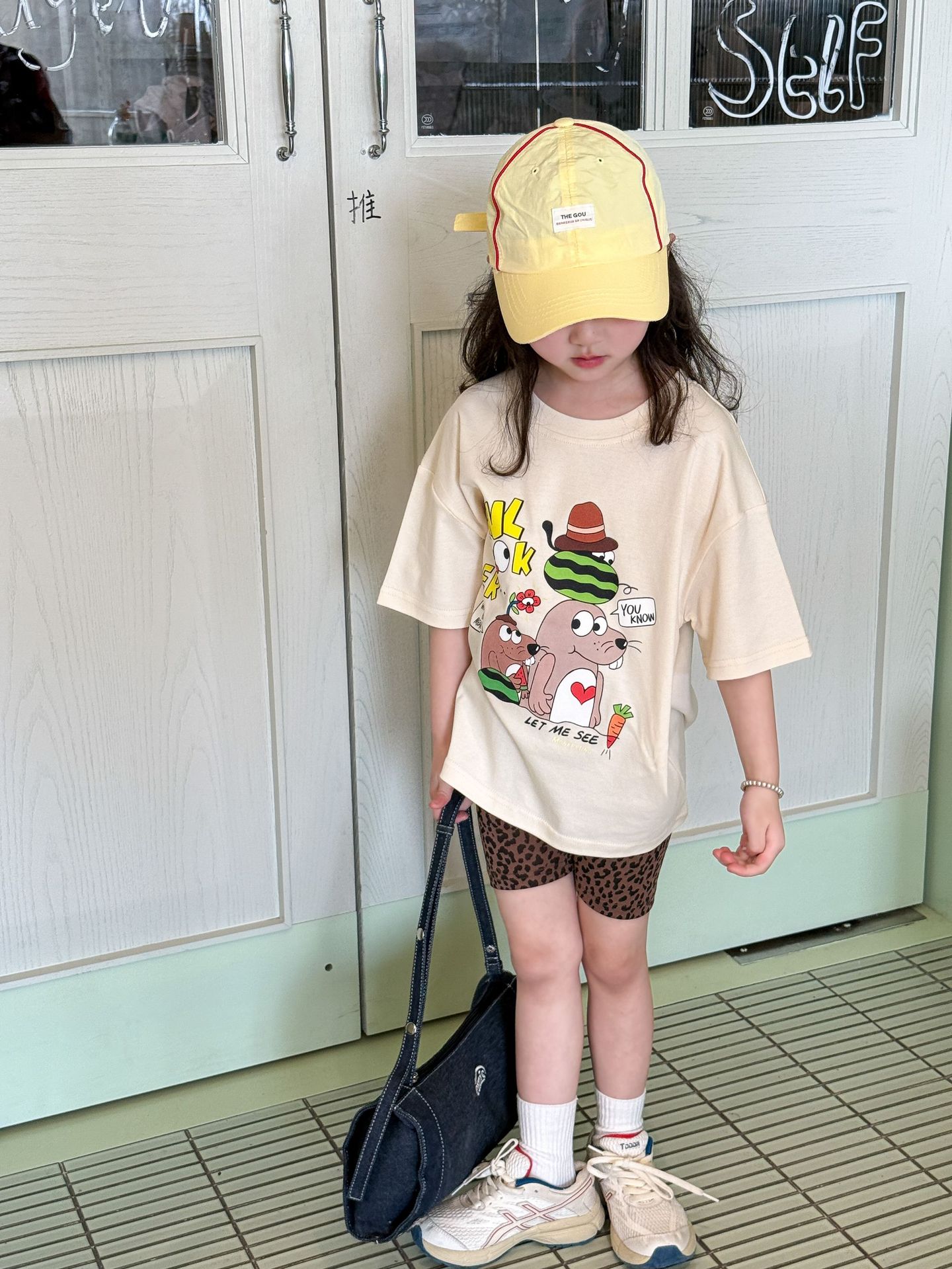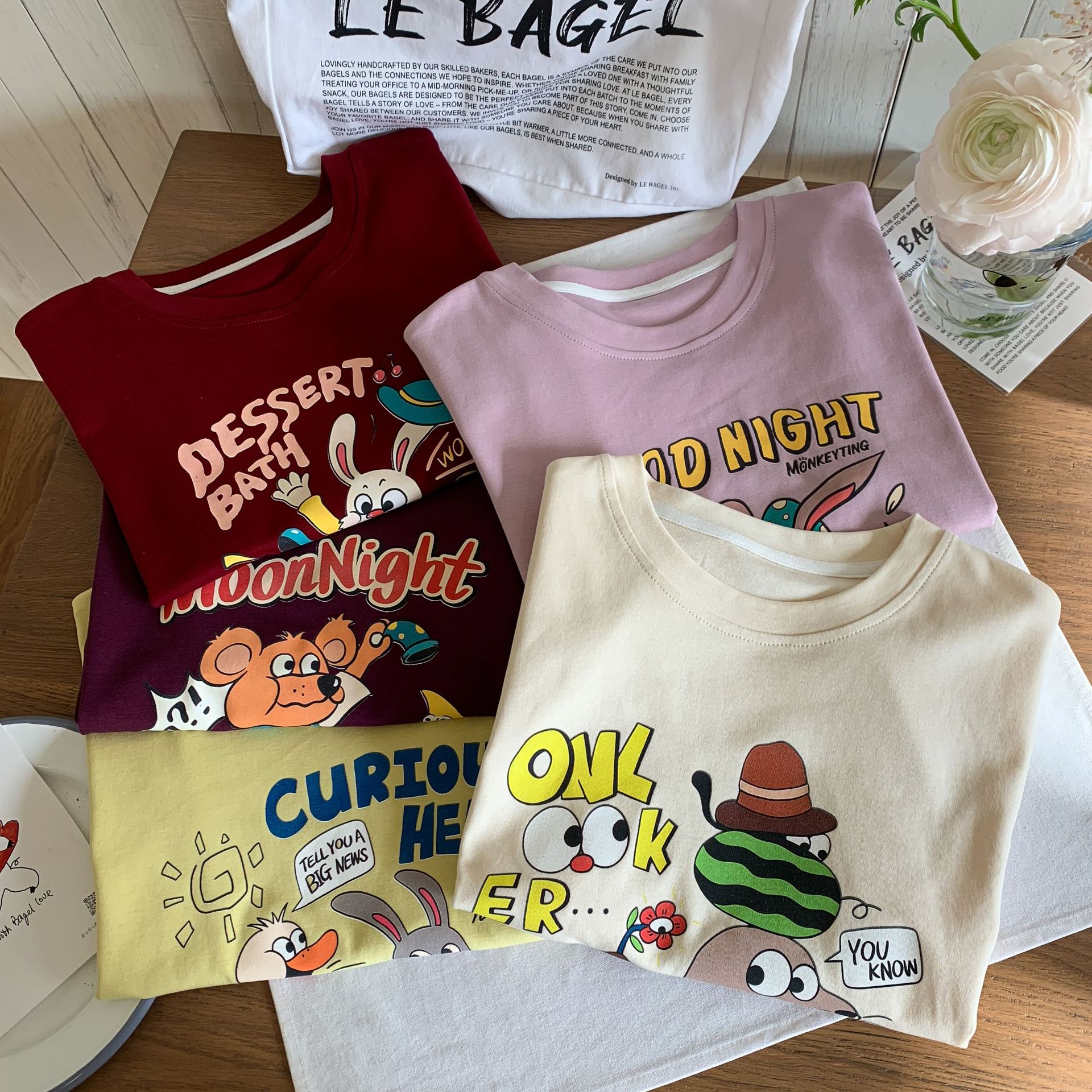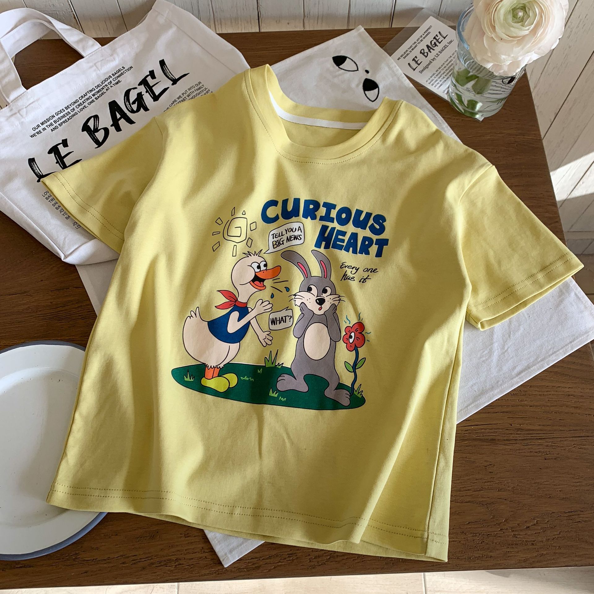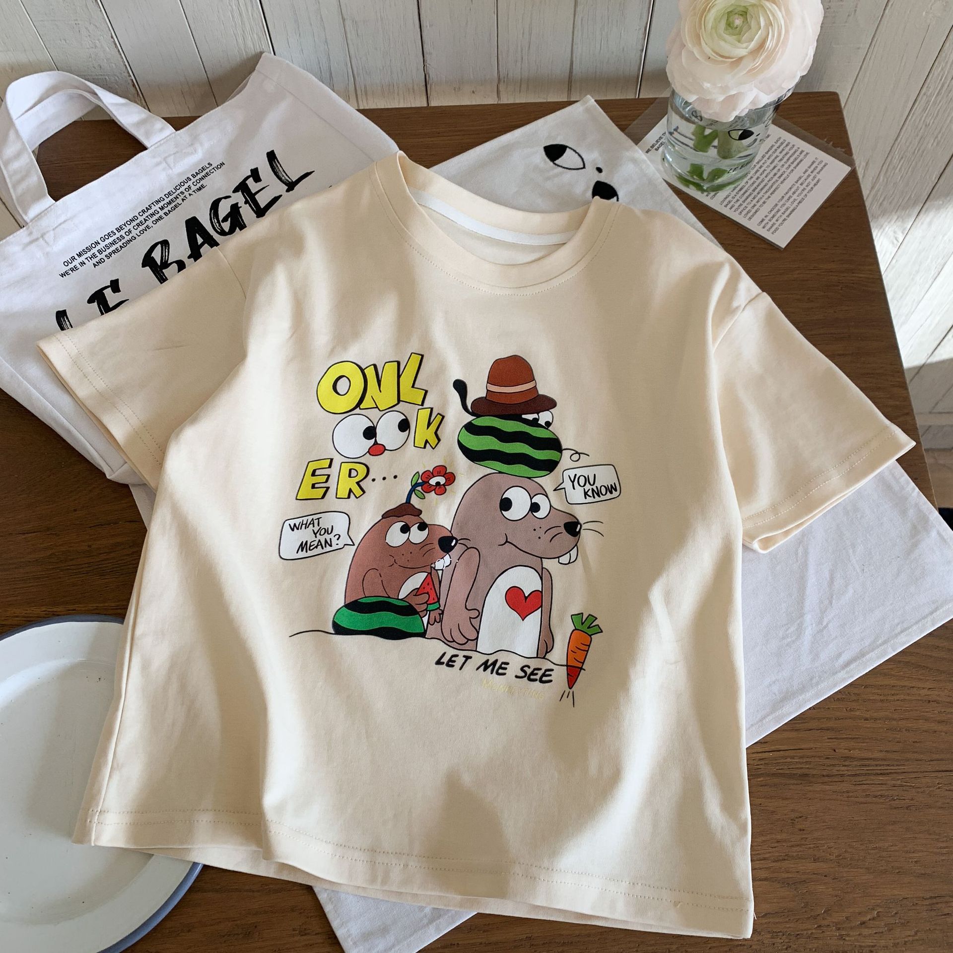 웨이무 아동복 여아 반팔 티셔츠 여름 2026 신상품 아동 한국 스타일 세련된 만화 상의 아기 옷스토어 가기