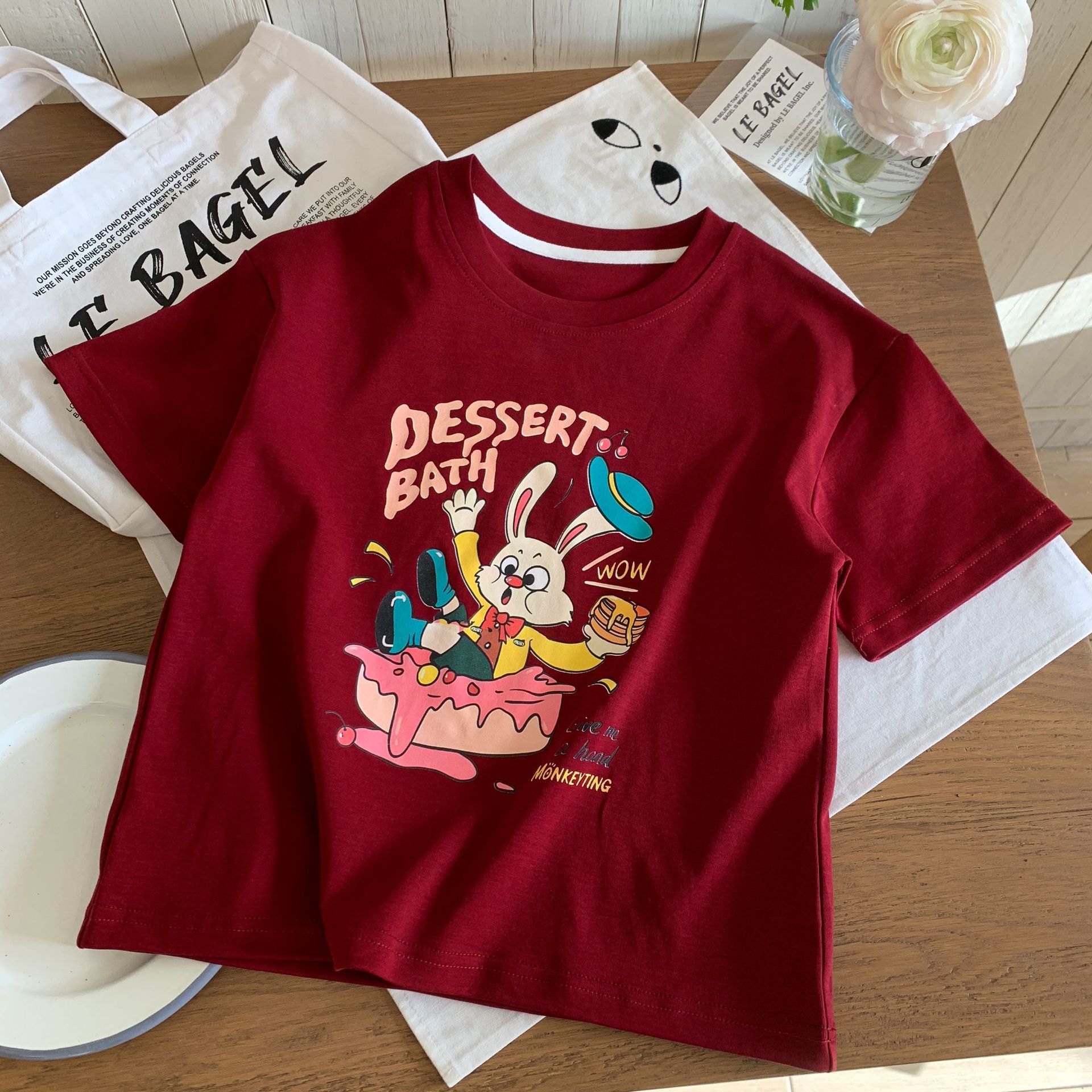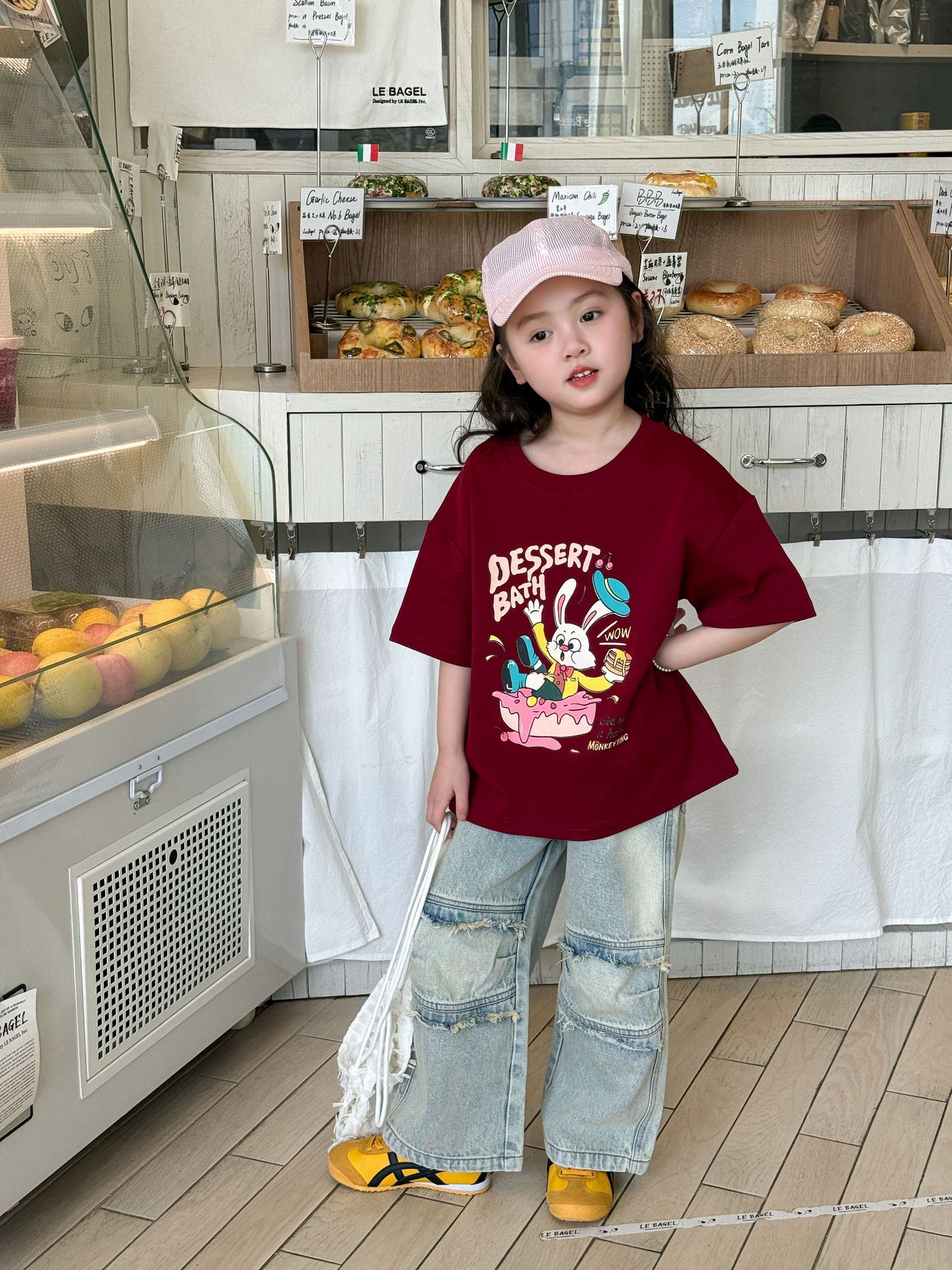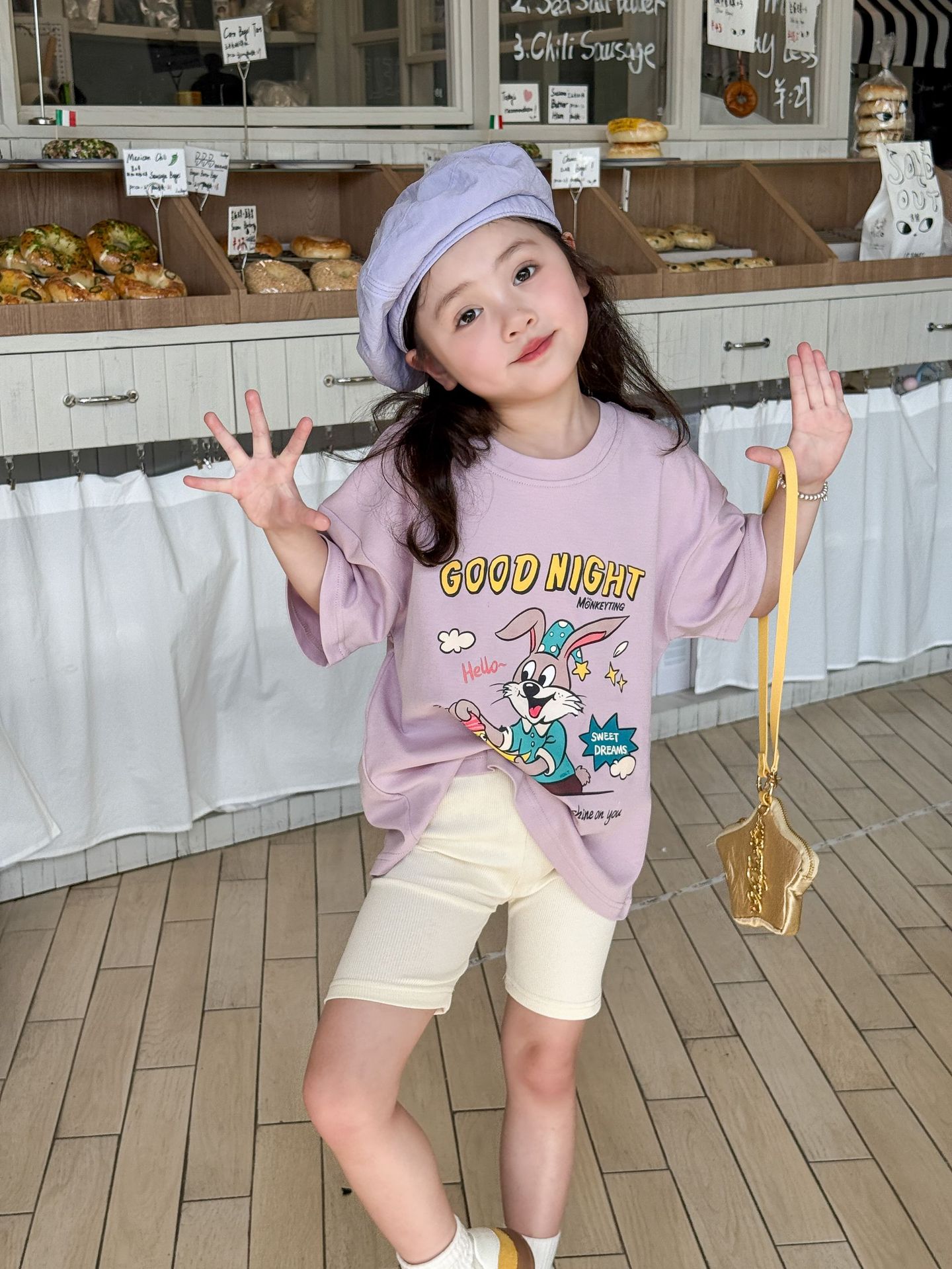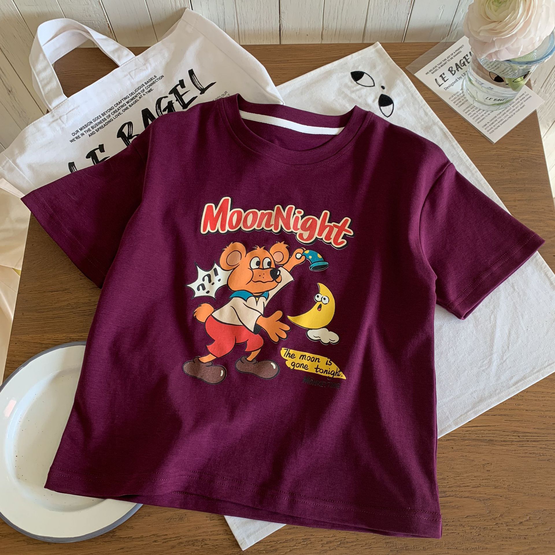 웨이무 아동복 여아 반팔 티셔츠 여름 2026 신상품 아동 한국 스타일 세련된 만화 상의 아기 옷스토어 가기