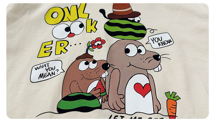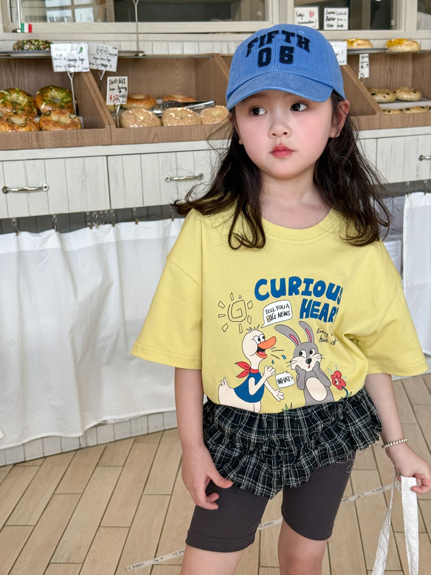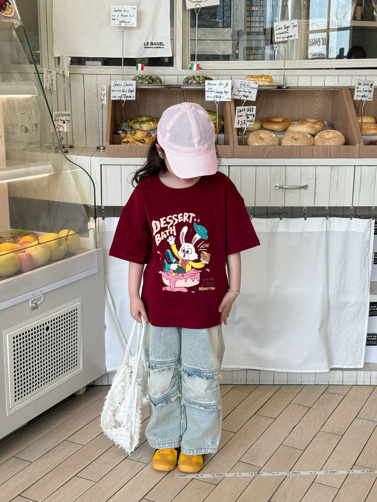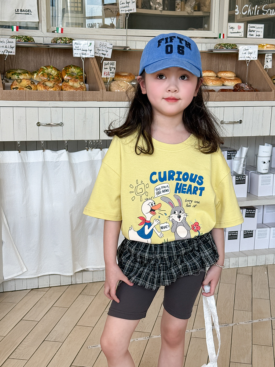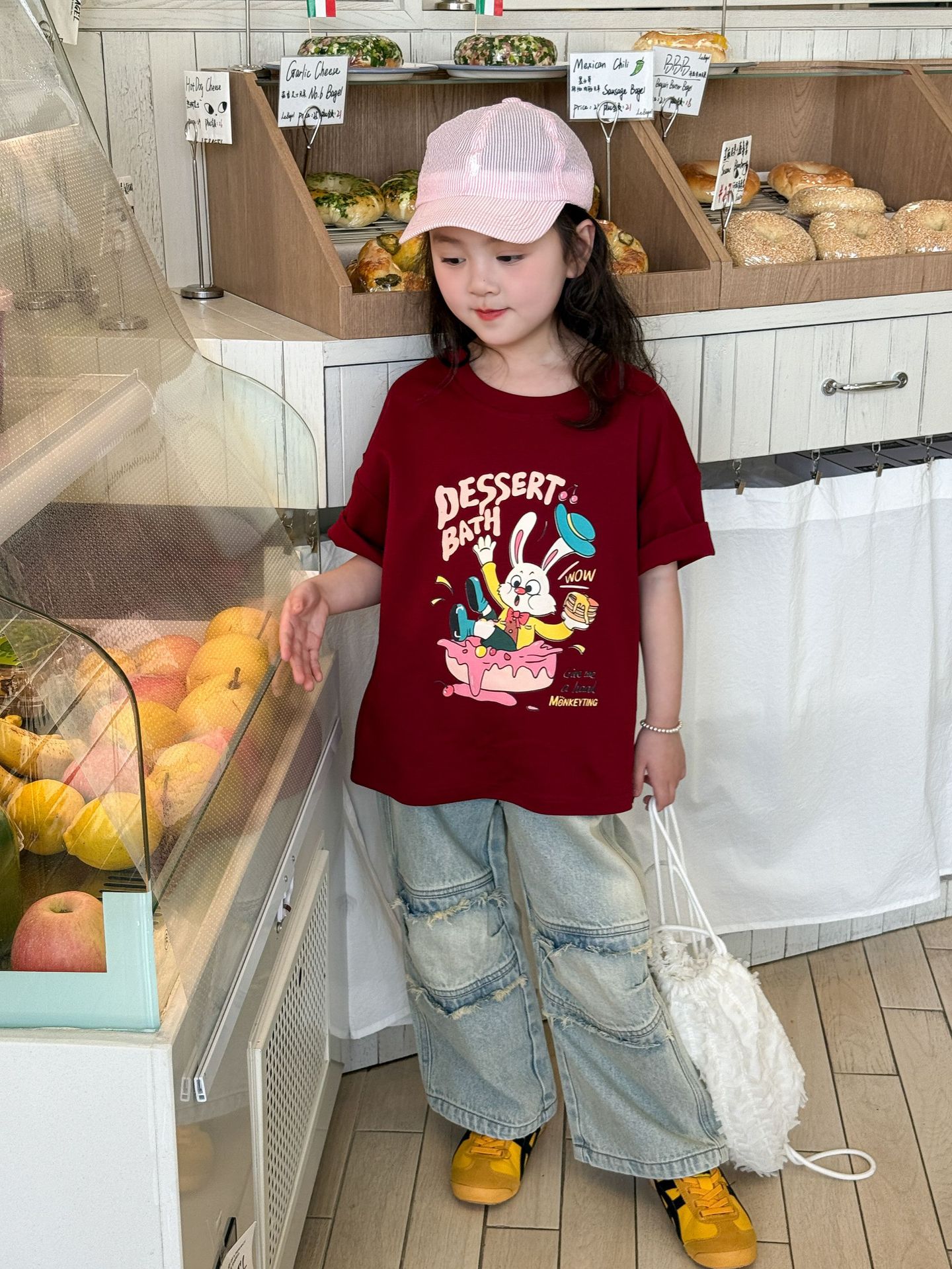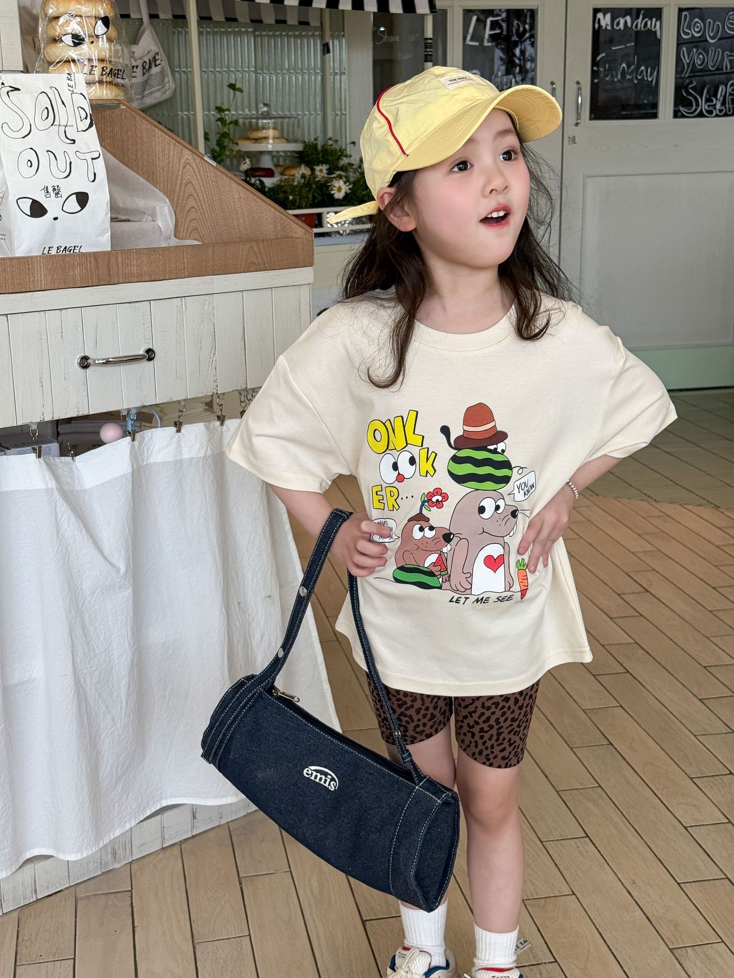 웨이무 아동복 여아 반팔 티셔츠 여름 2026 신상품 아동 한국 스타일 세련된 만화 상의 아기 옷스토어 가기