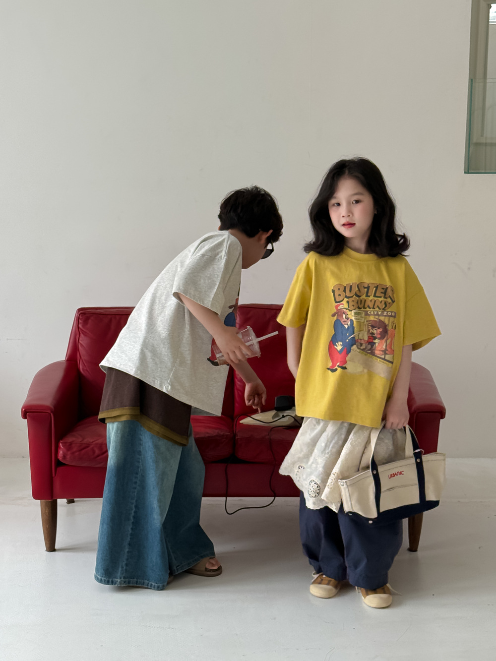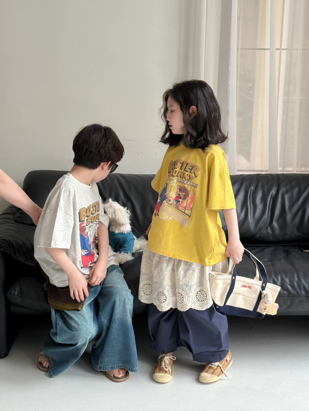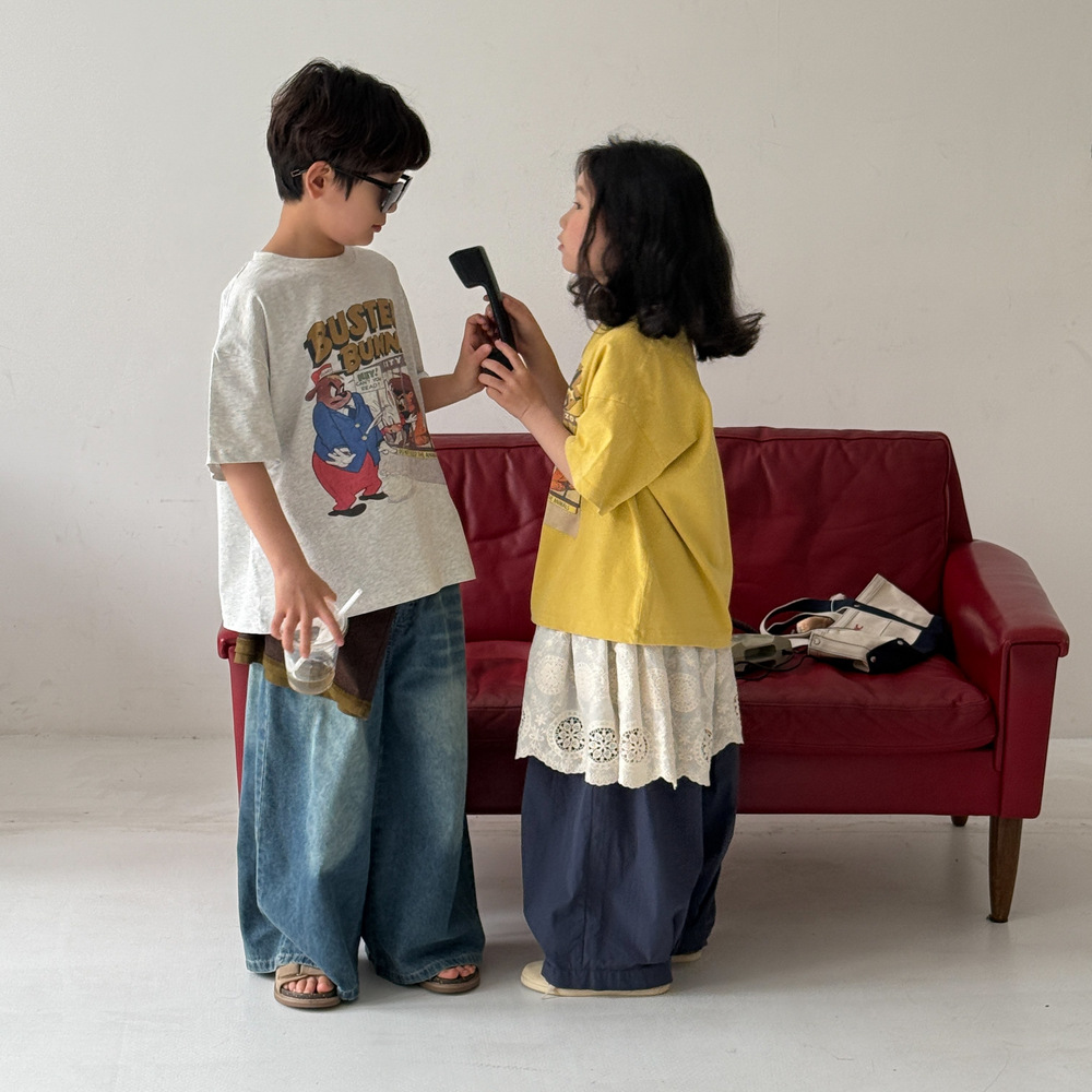 어린이 티셔츠 2025 여름 한국식 만화 편지 인쇄 짧은 소매 어린이 둥근 목 다목적 캐주얼 탑 소년 소녀