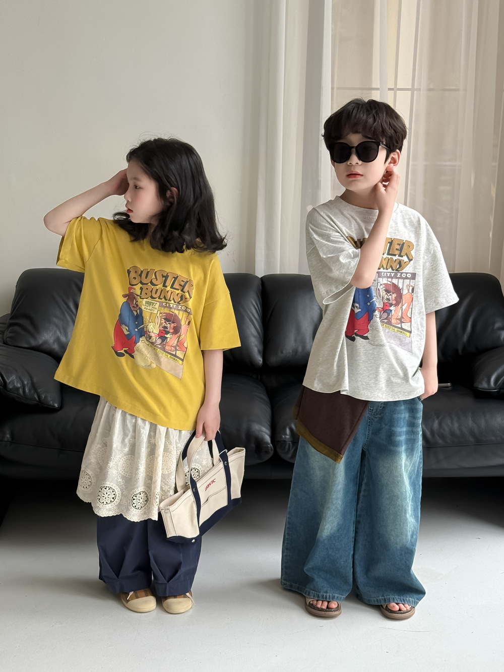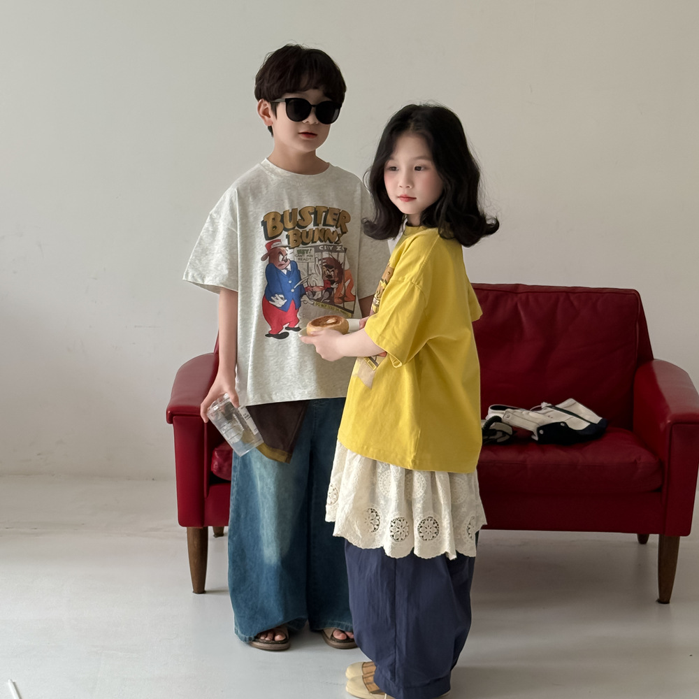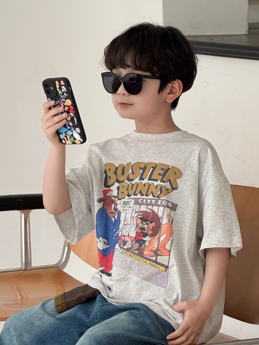 어린이 티셔츠 2025 여름 한국식 만화 편지 인쇄 짧은 소매 어린이 둥근 목 다목적 캐주얼 탑 소년 소녀스토어 가기