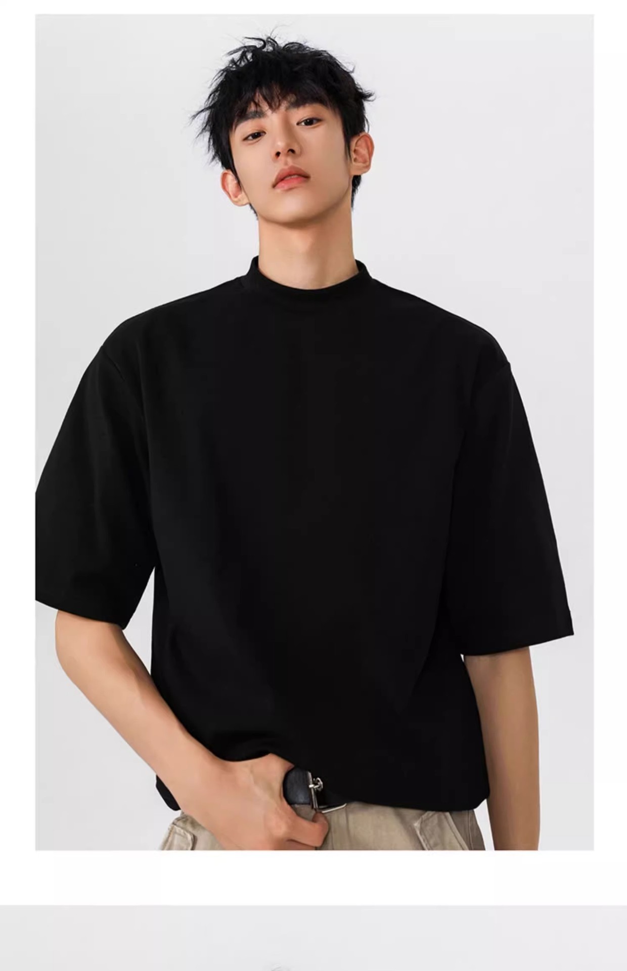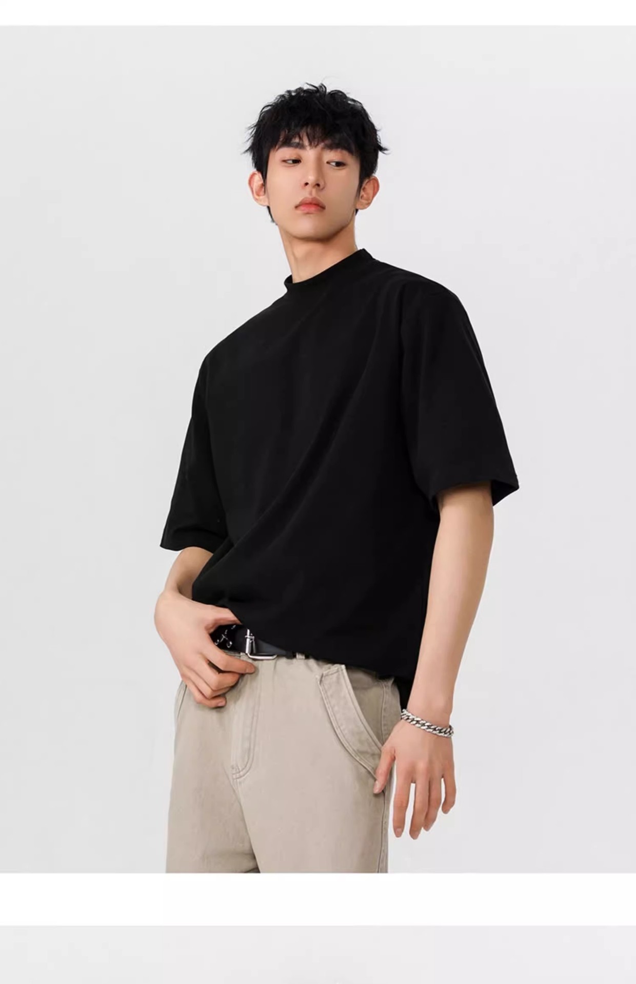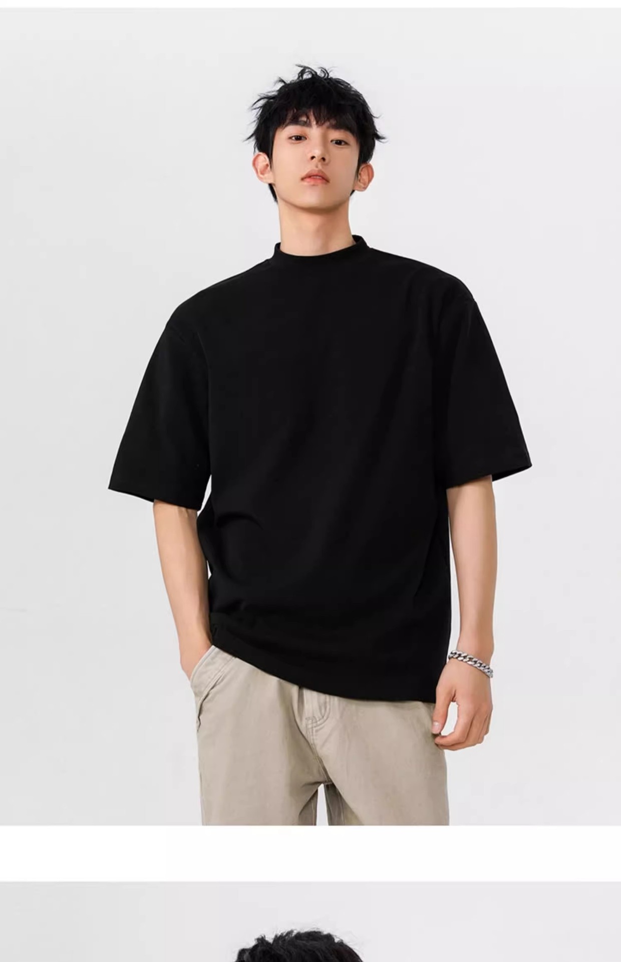하프 하이 칼라 퓨어 화이트 반팔 티셔츠 남자 여름 새 도착 느슨한 반소매 옷 트렌디 브랜드 헤비 베이스 셔츠스토어 가기