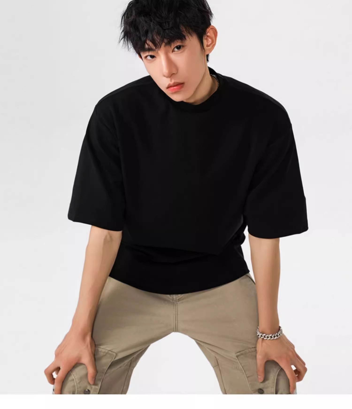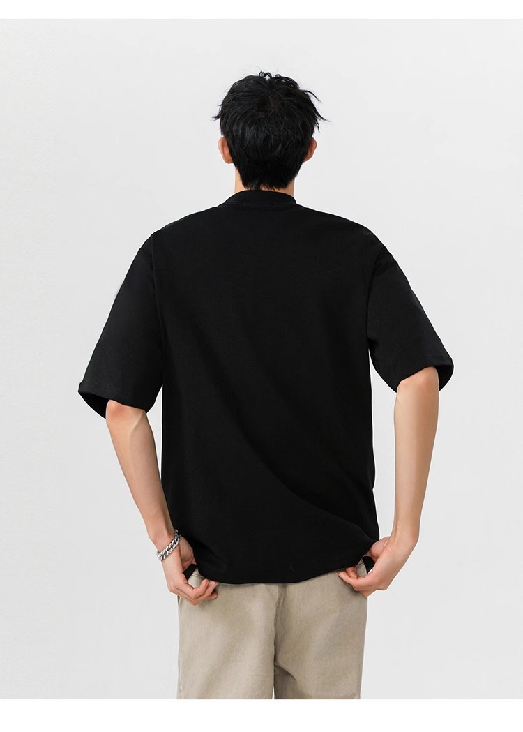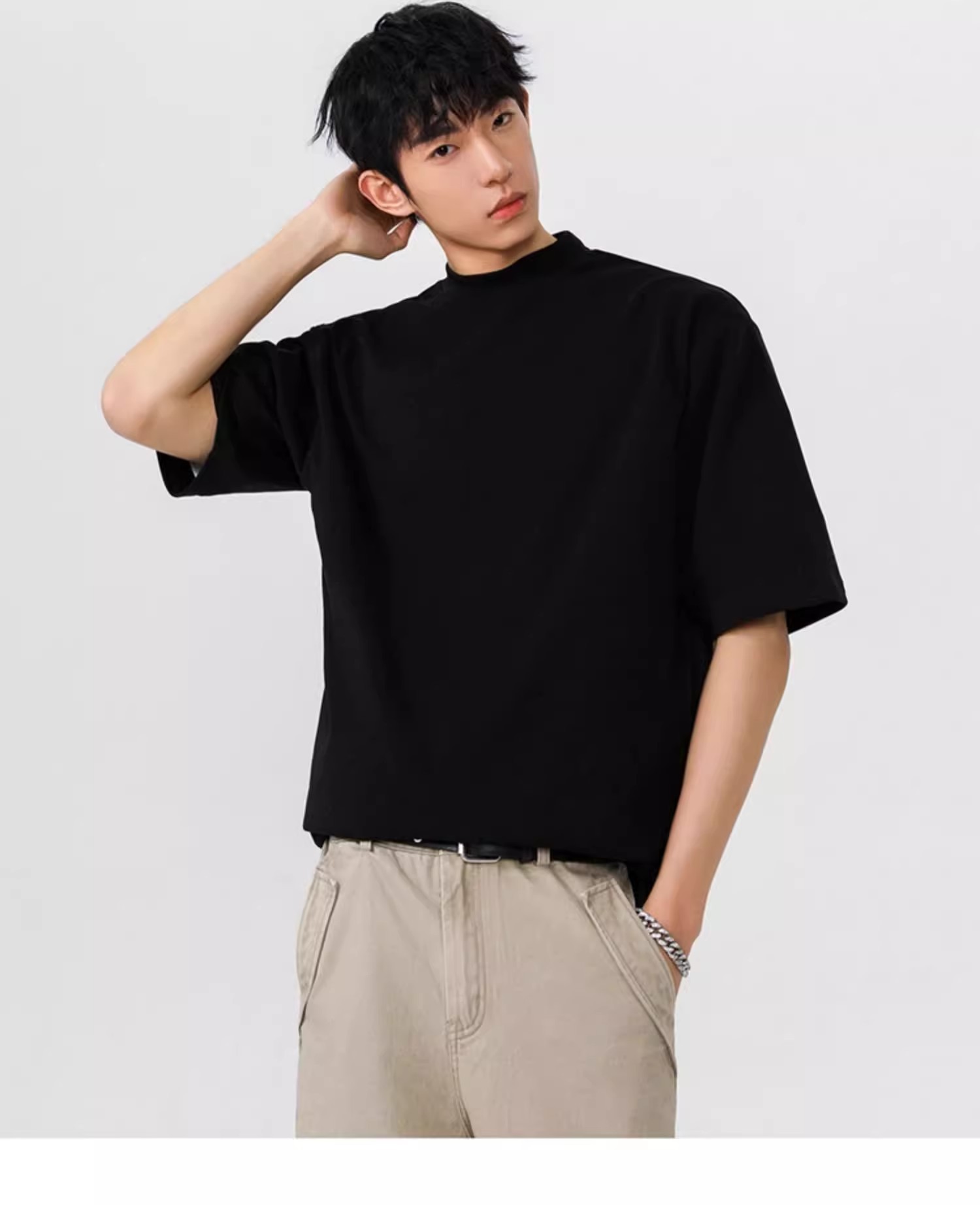 하프 하이 칼라 퓨어 화이트 반팔 티셔츠 남자 여름 새 도착 느슨한 반소매 옷 트렌디 브랜드 헤비 베이스 셔츠스토어 가기
