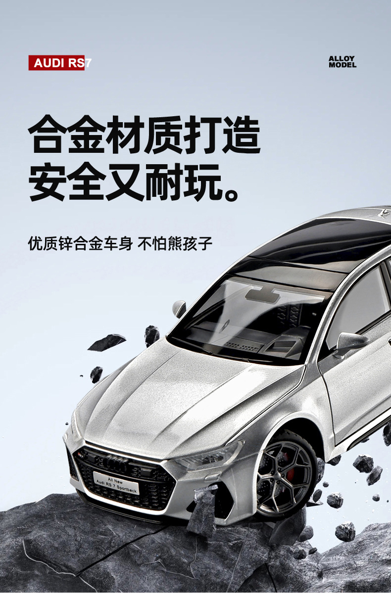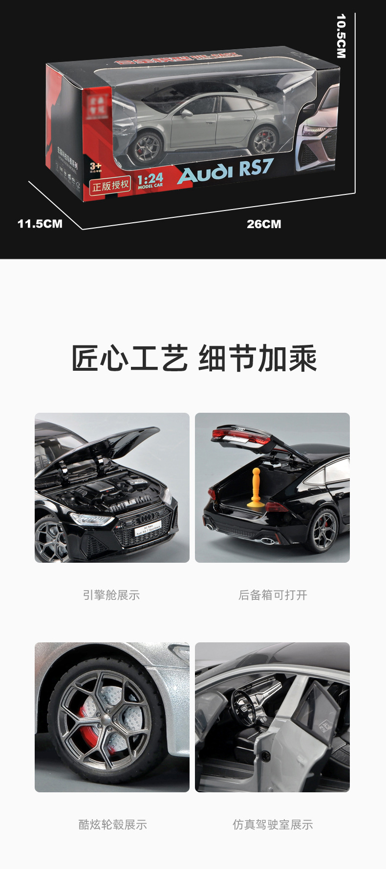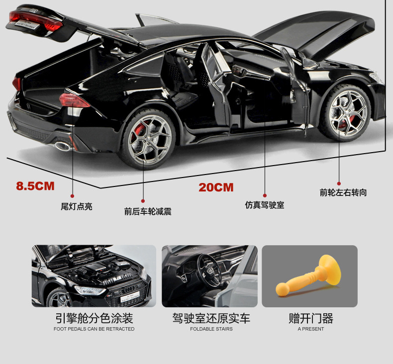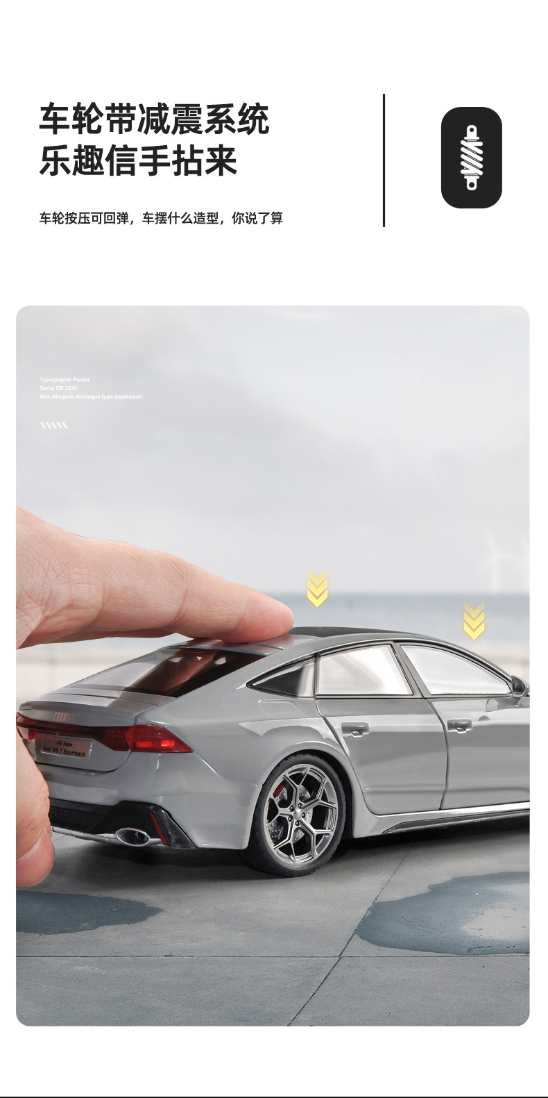 Hongsen 1:24 Audi RS7 합금 자동차는 실제 4 륜 충격 흡수 장치를 모방합니다. 6 개의 도어 자동차 모델 장식품 소년 장난감