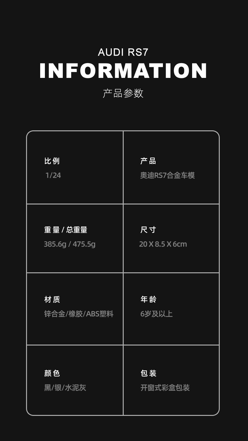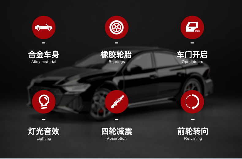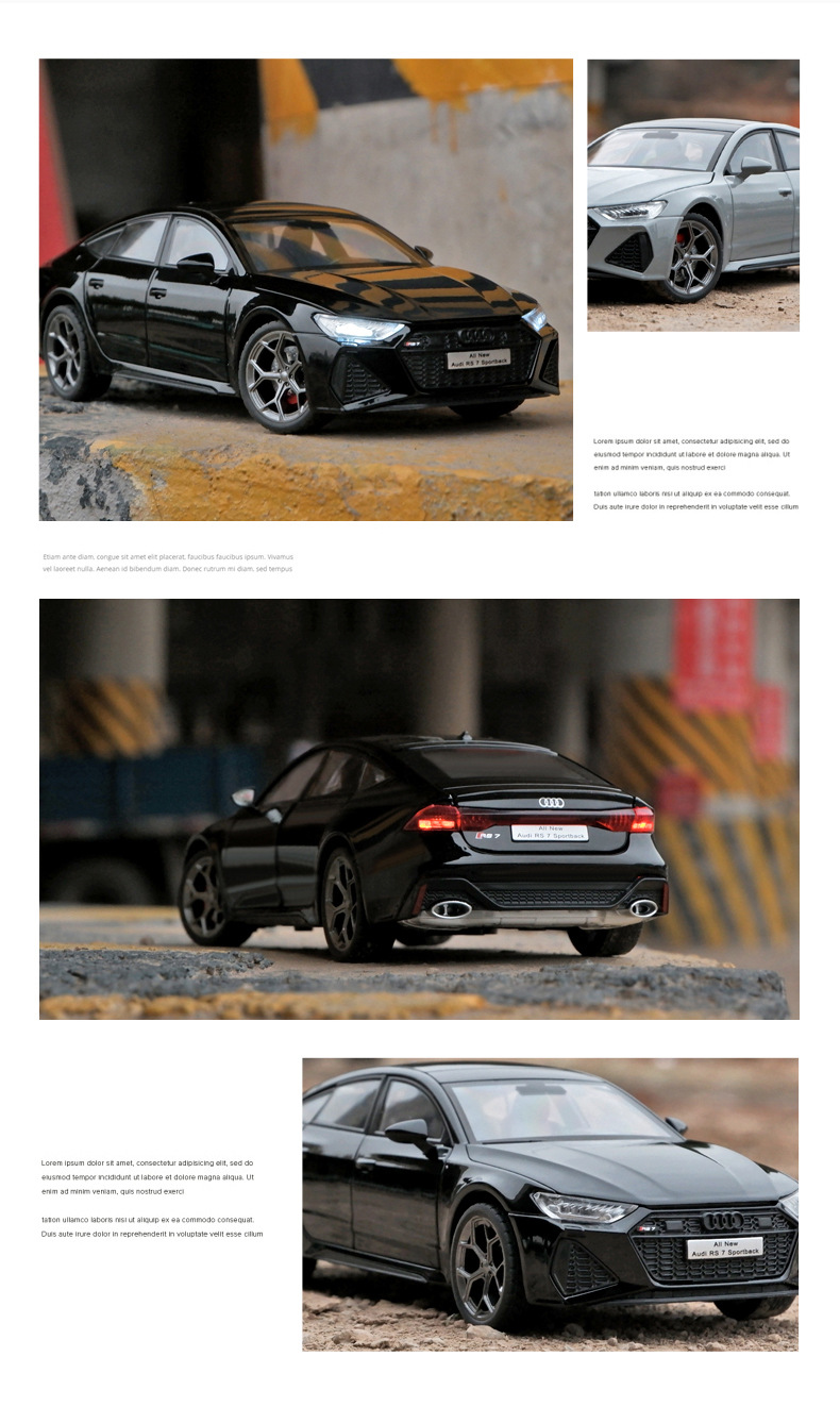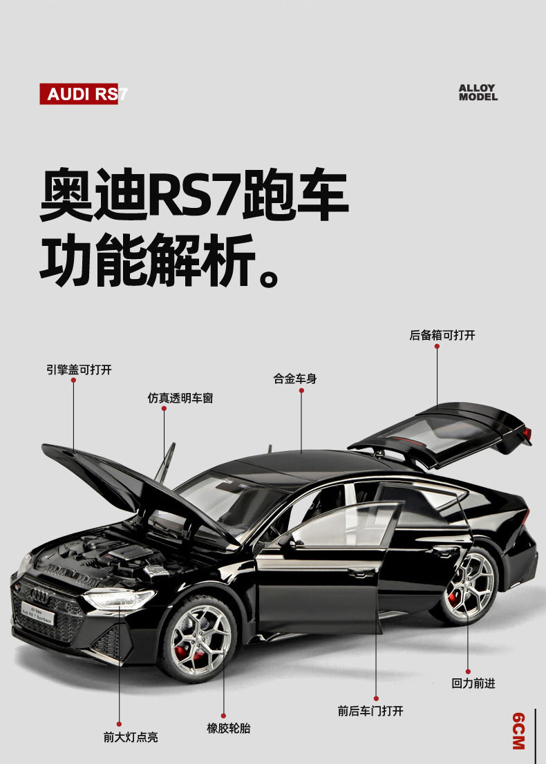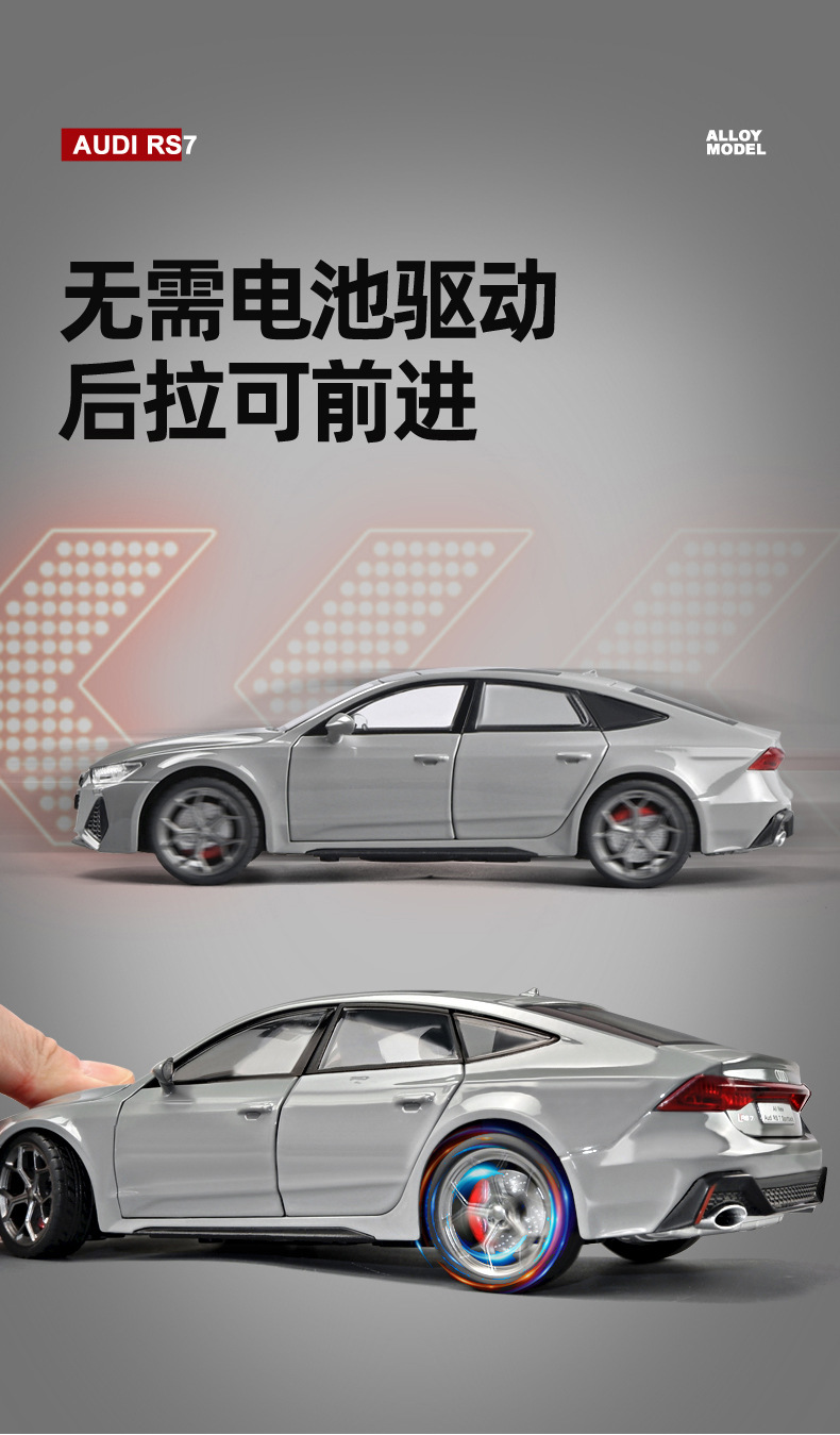 Hongsen 1:24 Audi RS7 합금 자동차는 실제 4 륜 충격 흡수 장치를 모방합니다. 6 개의 도어 자동차 모델 장식품 소년 장난감