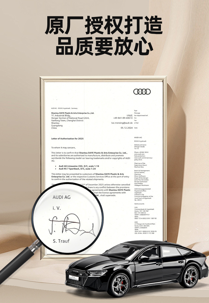 Hongsen 1:24 Audi RS7 합금 자동차는 실제 4 륜 충격 흡수 장치를 모방합니다. 6 개의 도어 자동차 모델 장식품 소년 장난감스토어 가기