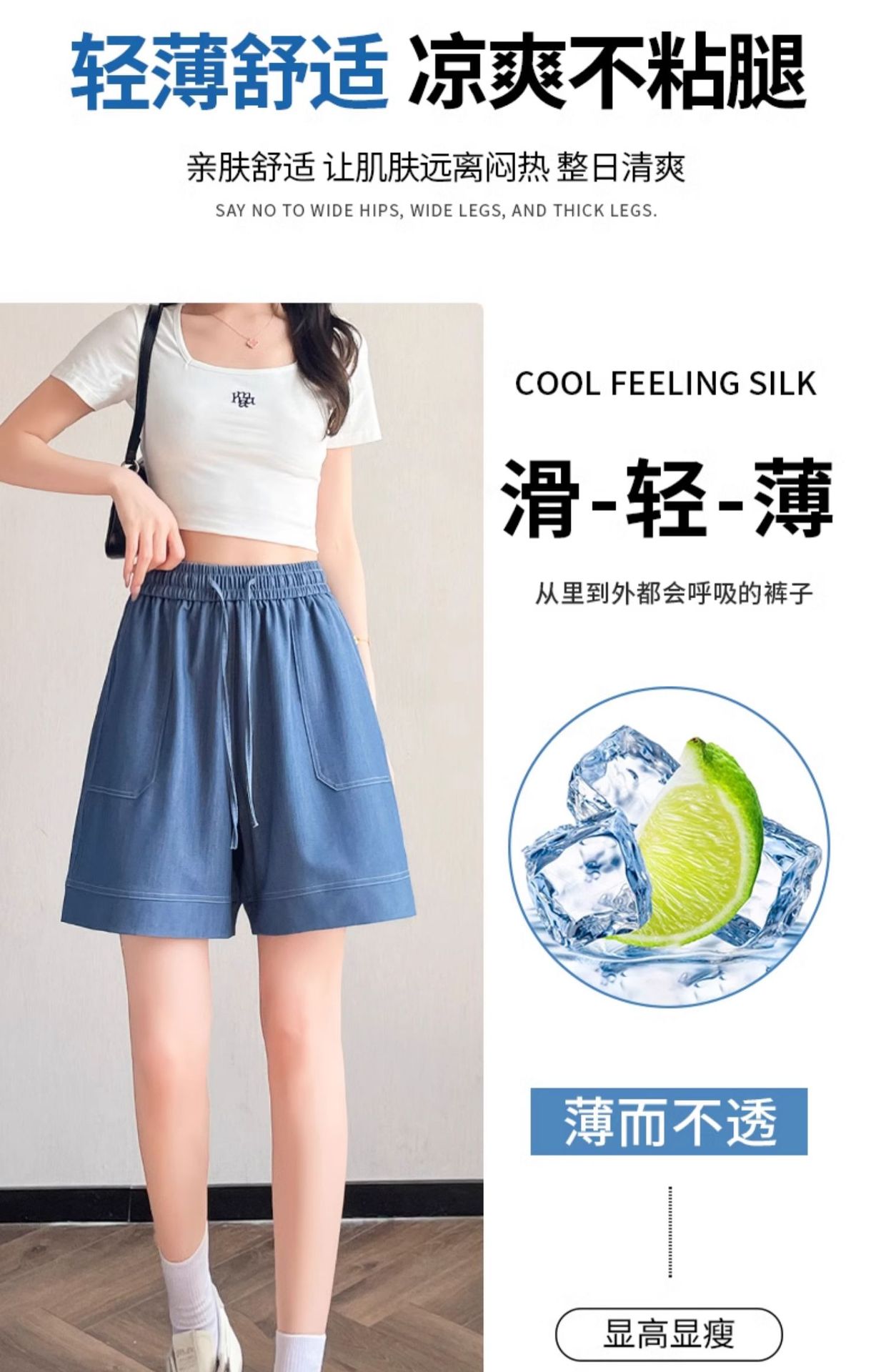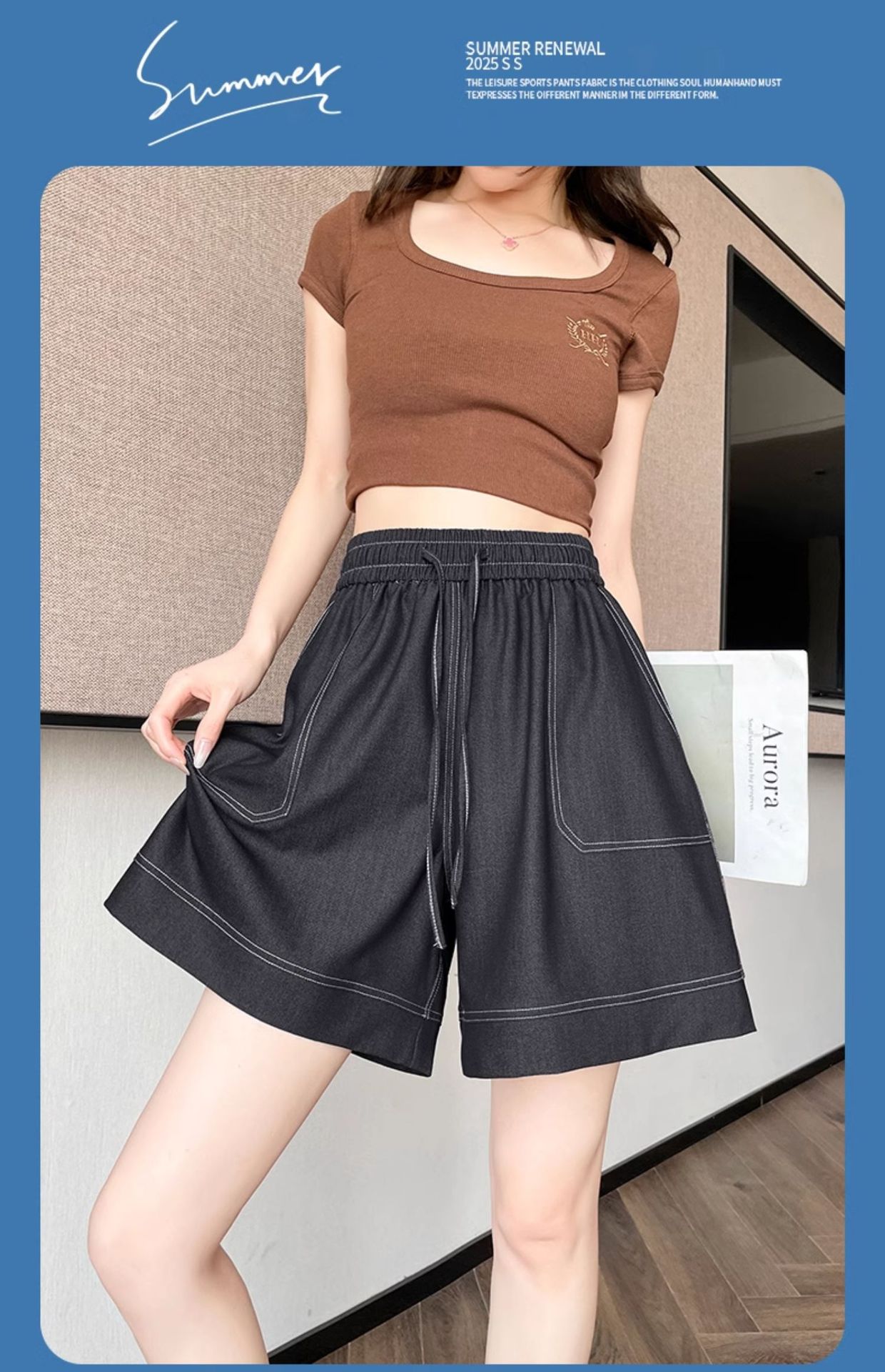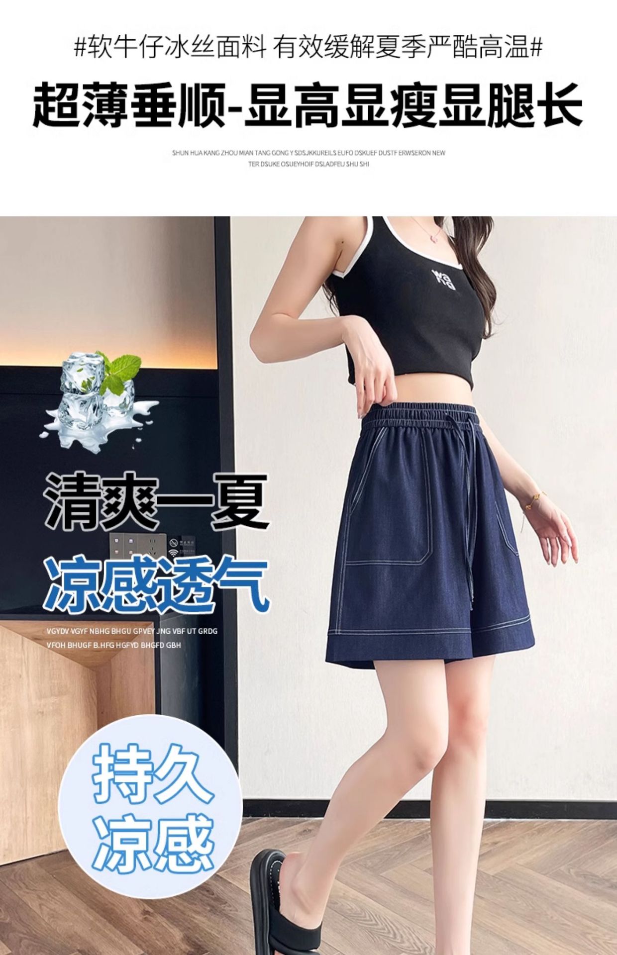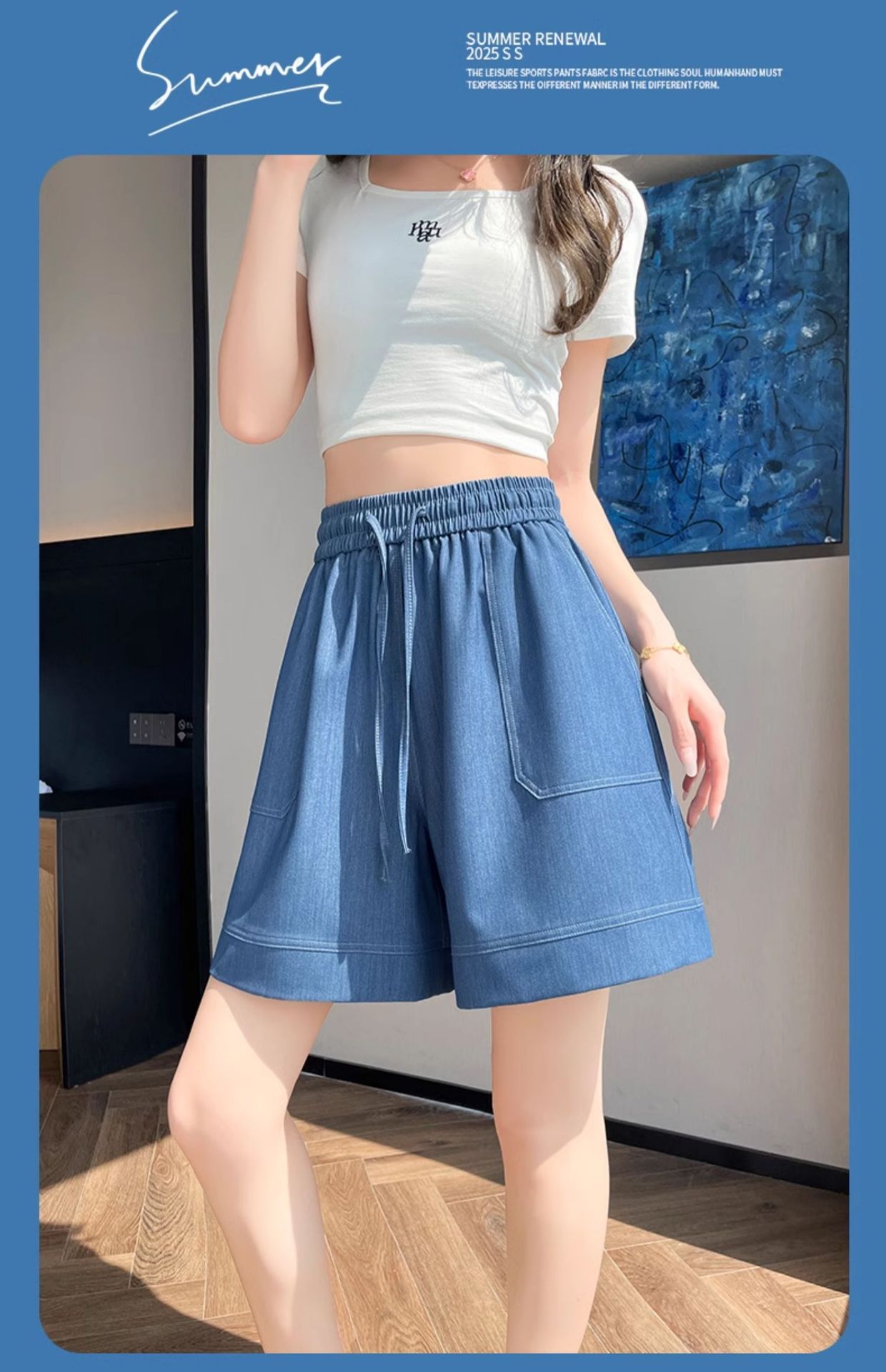 여름 텐셀 데님 반바지 여성의 2025 새로운 폭발 아이스 실크 바지 여름 얇은 느슨한 넓은 다리 바지스토어 가기