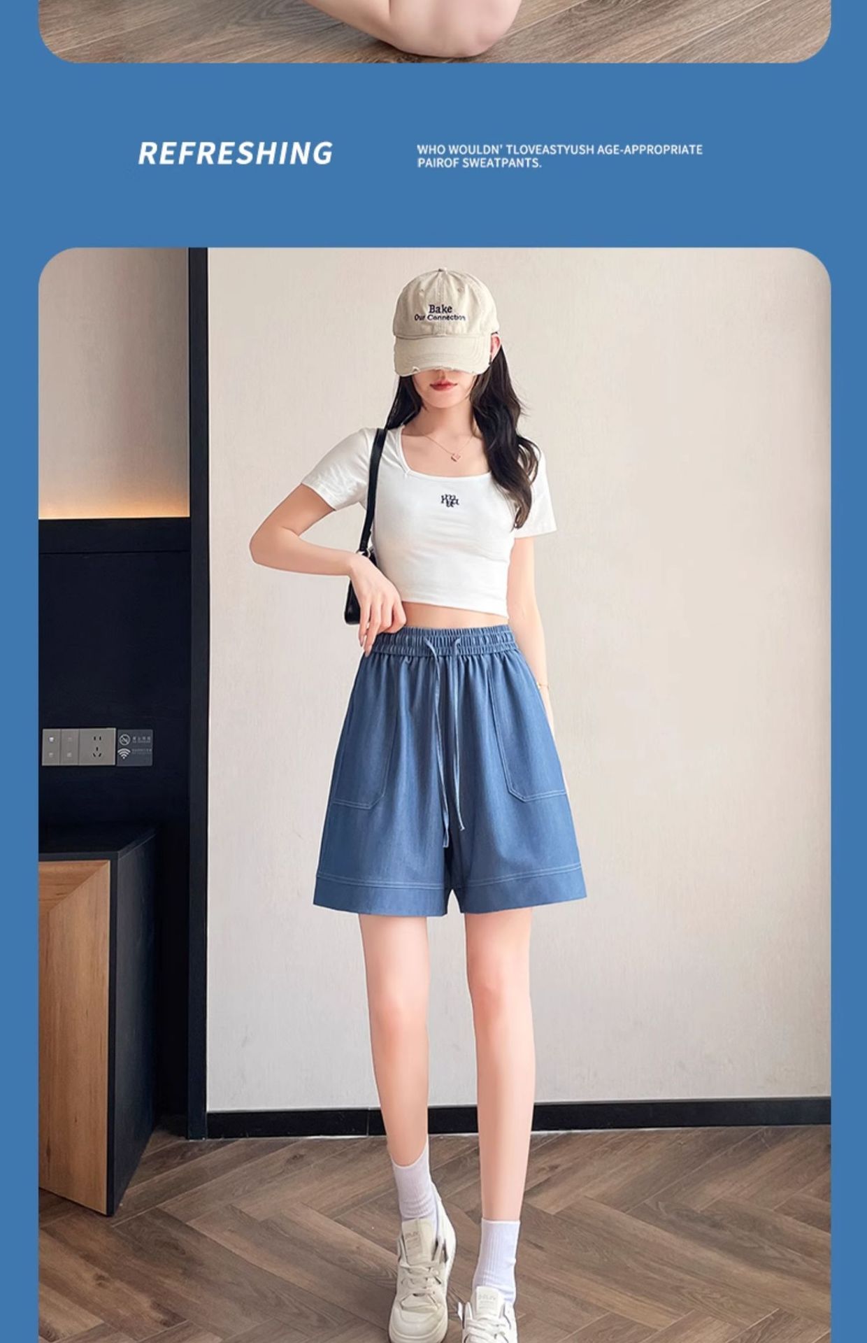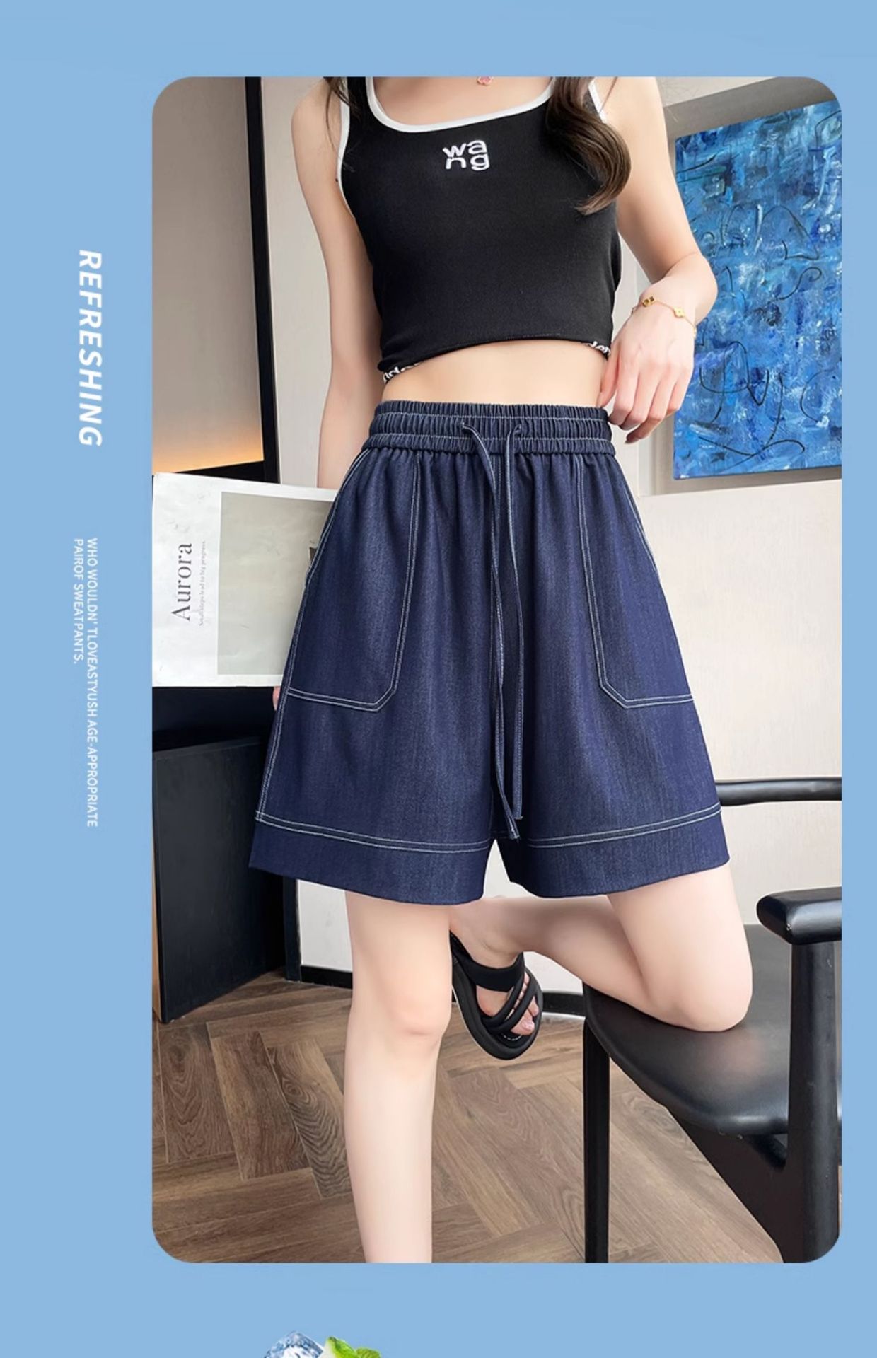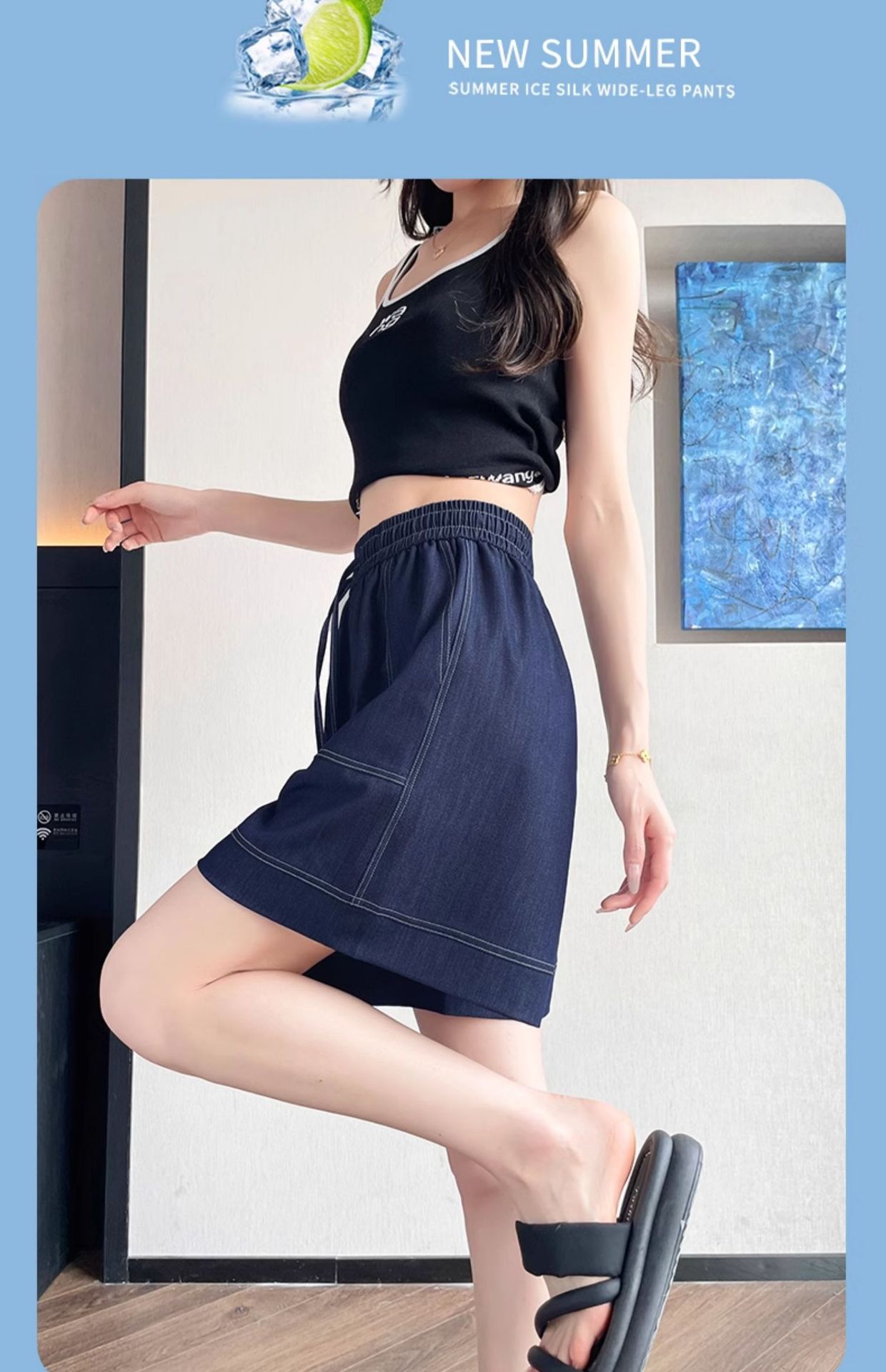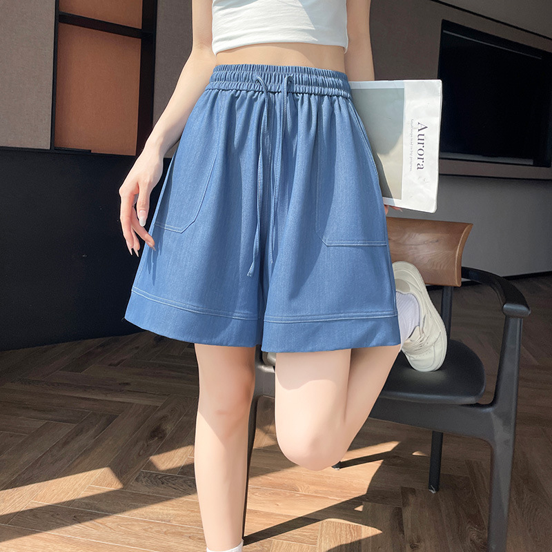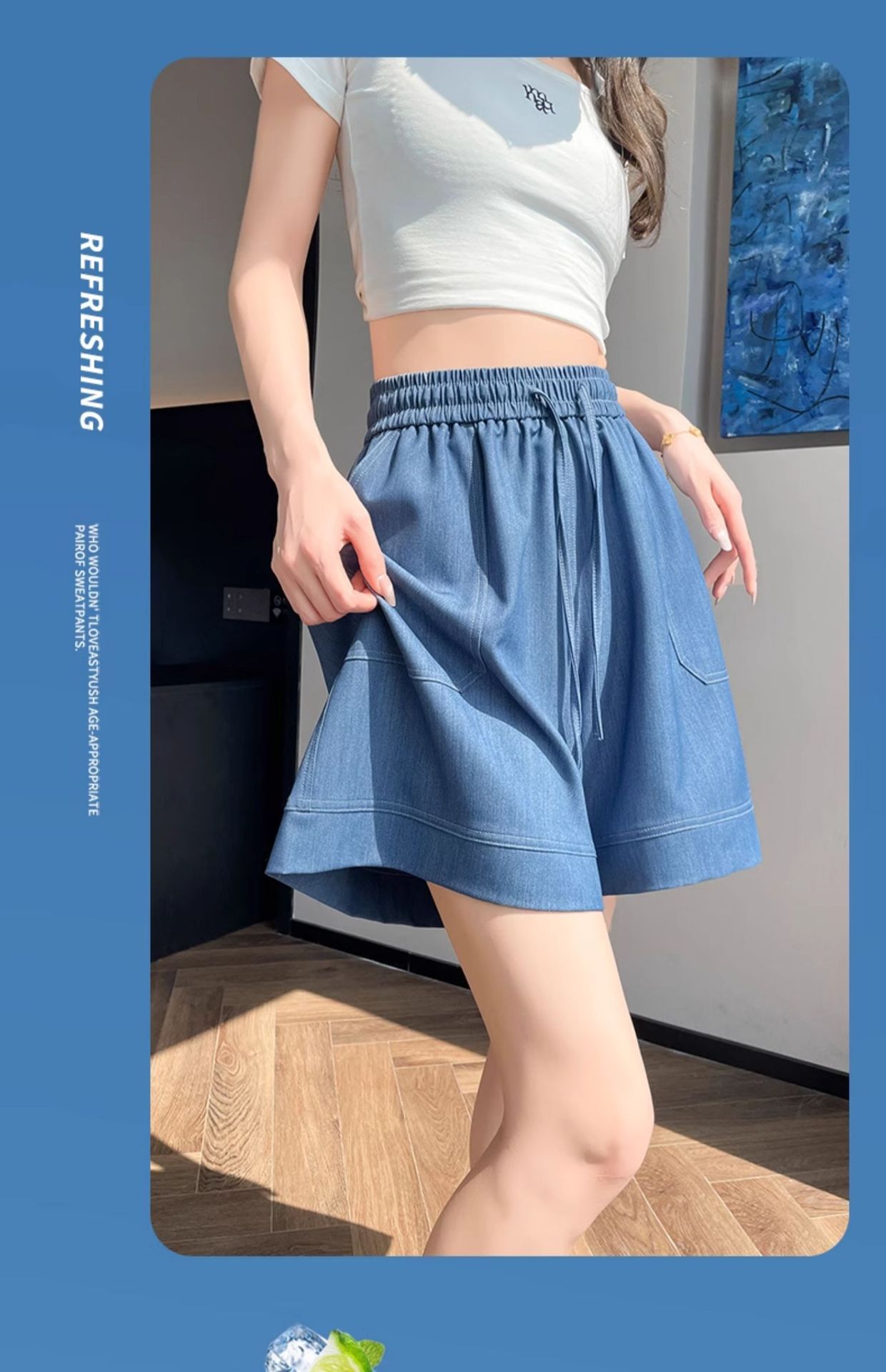 여름 텐셀 데님 반바지 여성의 2025 새로운 폭발 아이스 실크 바지 여름 얇은 느슨한 넓은 다리 바지스토어 가기