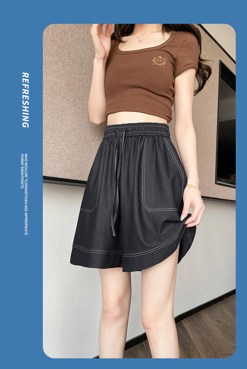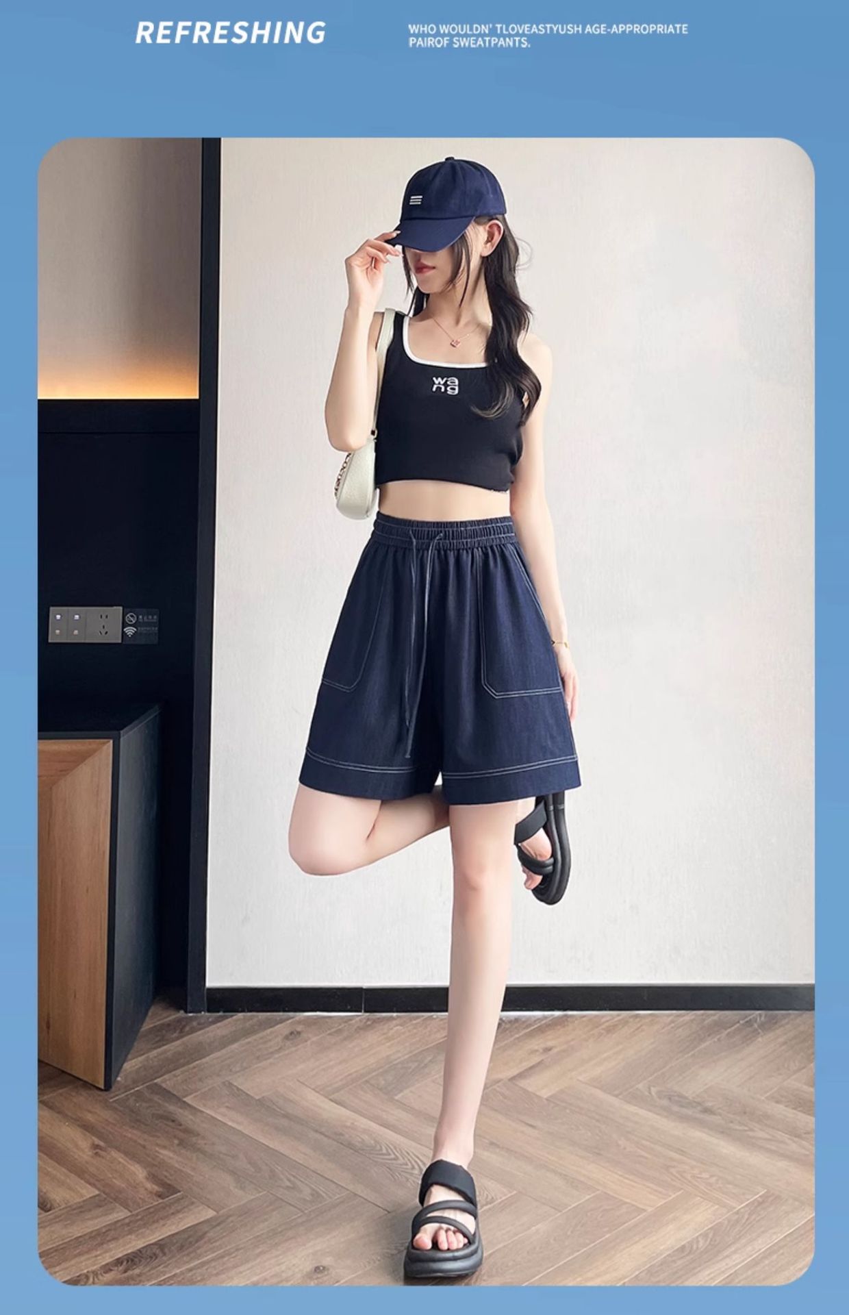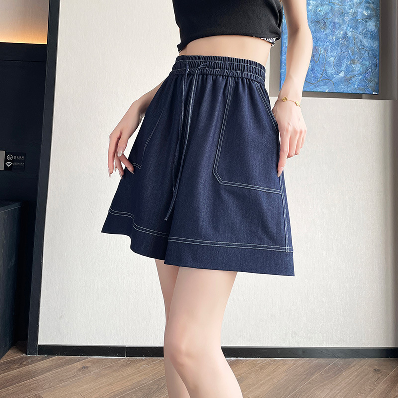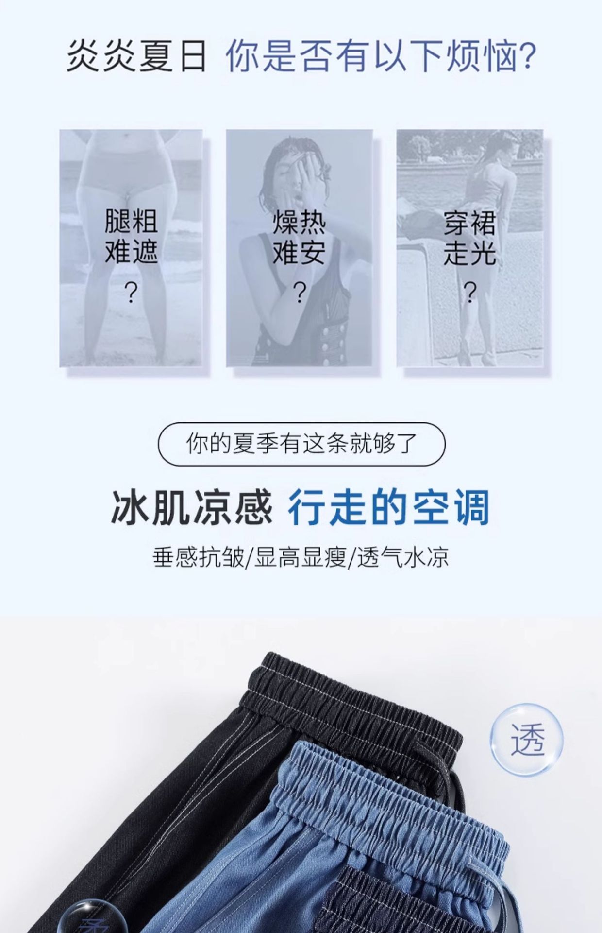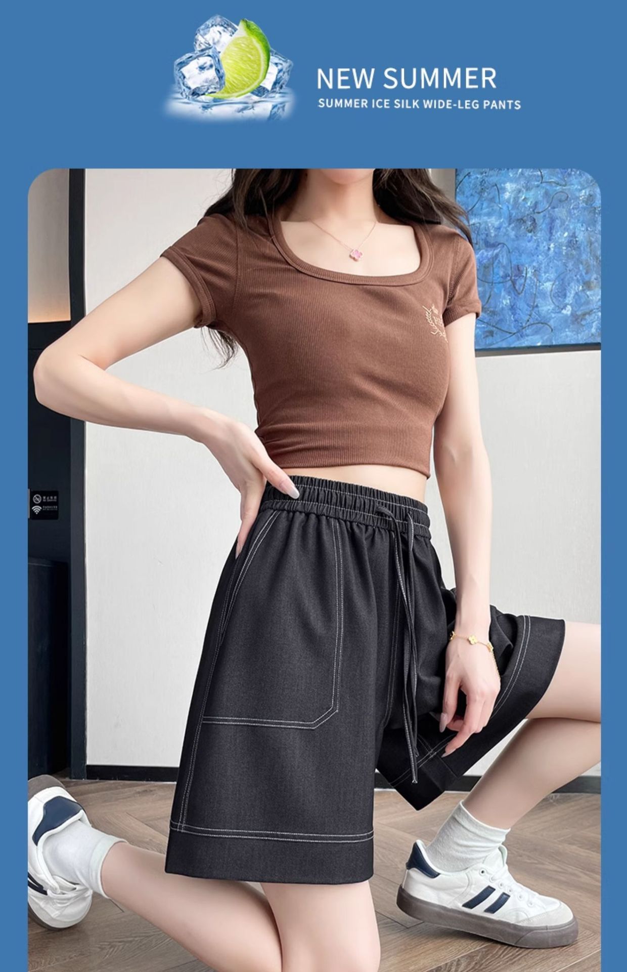 여름 텐셀 데님 반바지 여성의 2025 새로운 폭발 아이스 실크 바지 여름 얇은 느슨한 넓은 다리 바지스토어 가기